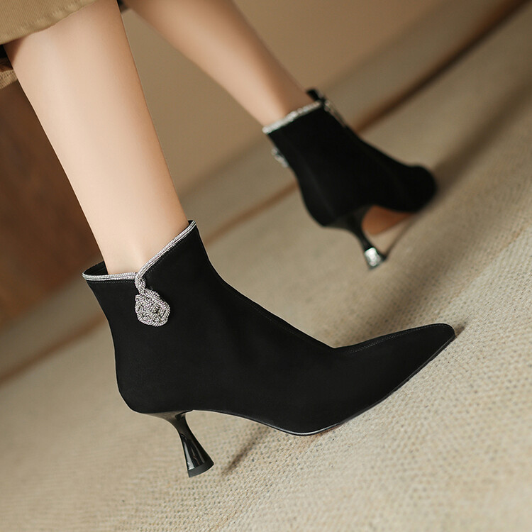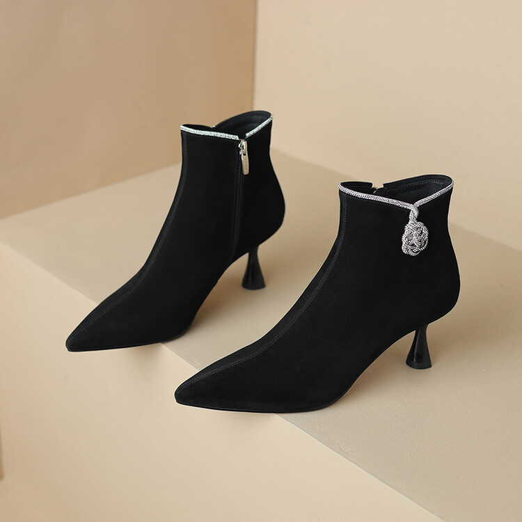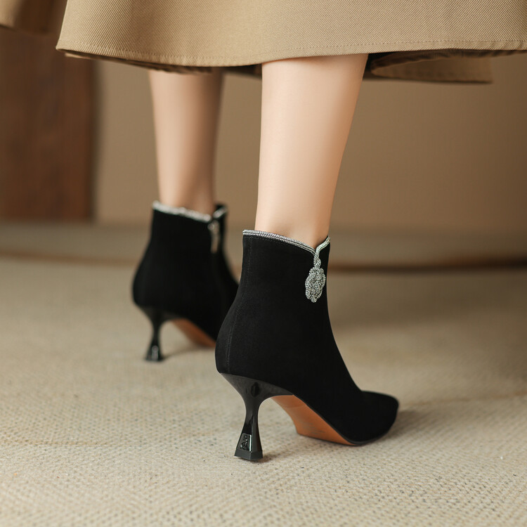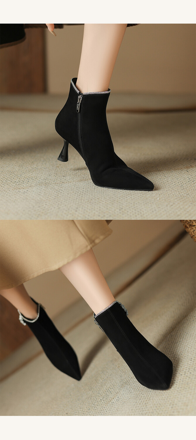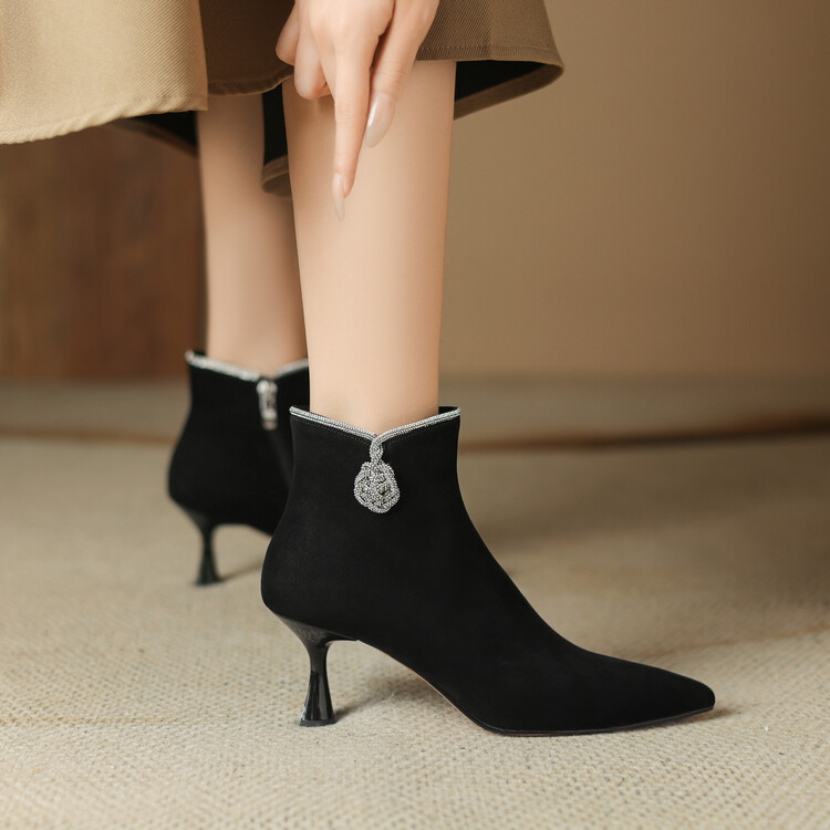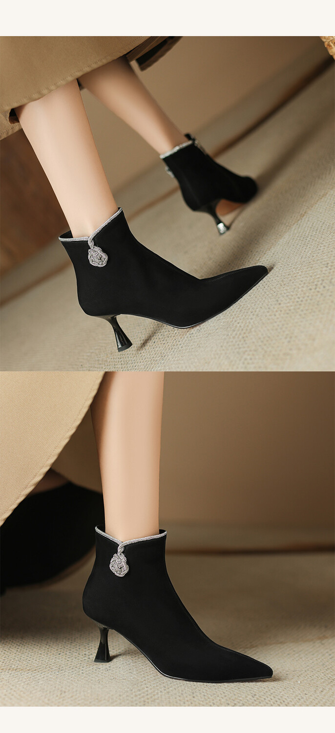 气质通勤短靴,尖头细跟高跟黑色裸靴HCYYHD-5029
