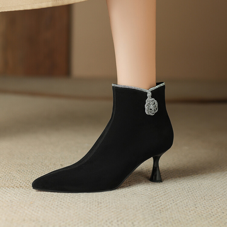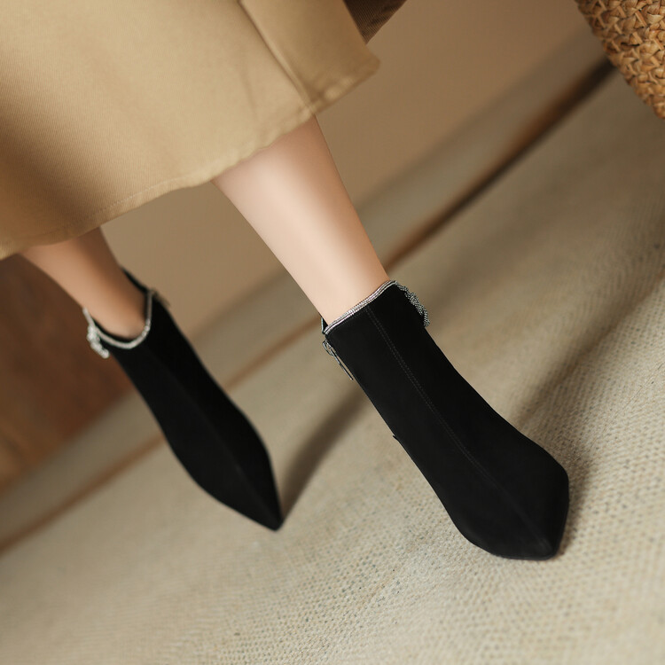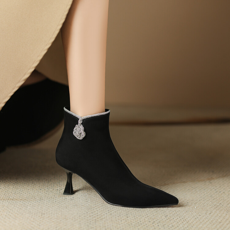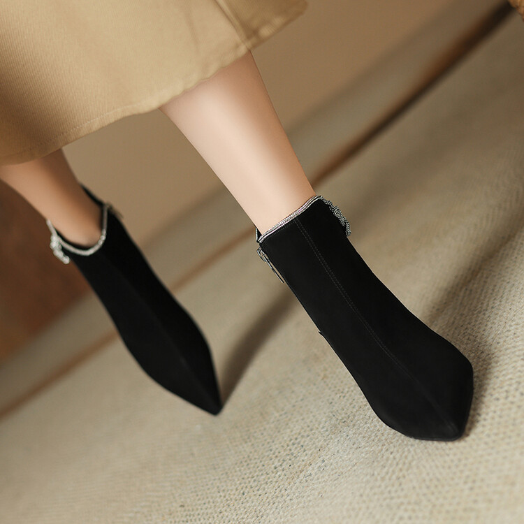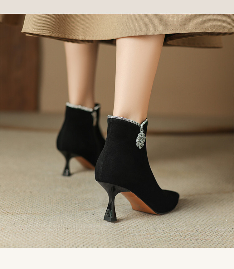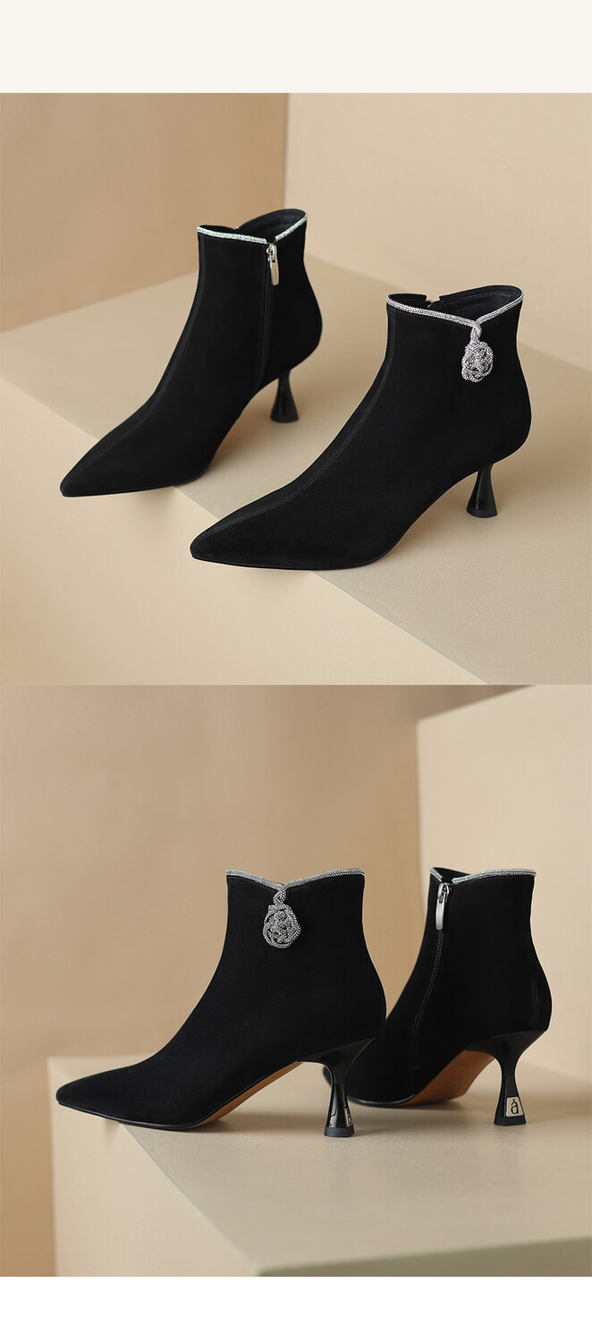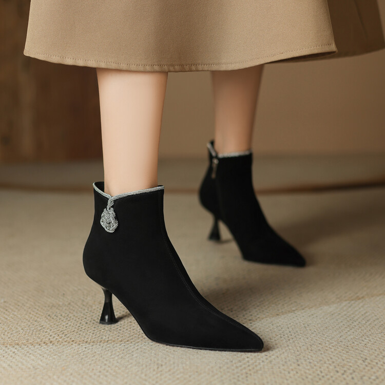 气质通勤短靴,尖头细跟高跟黑色裸靴HCYYHD-5029