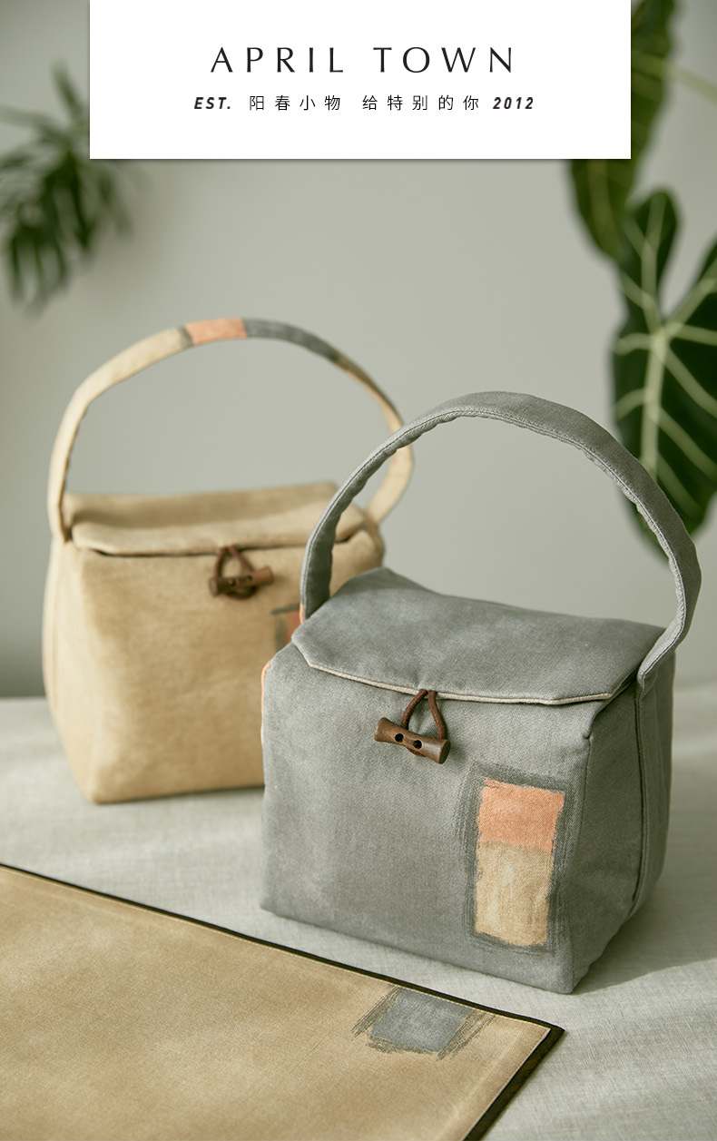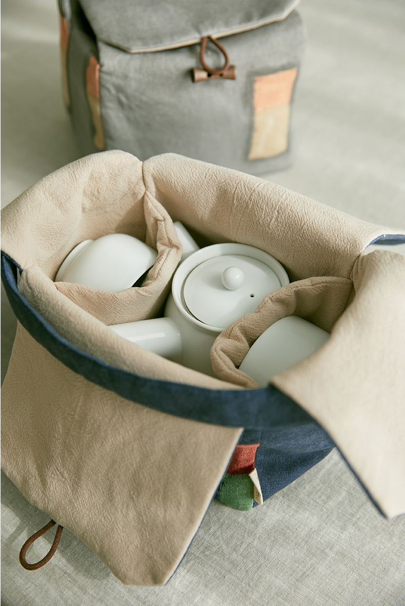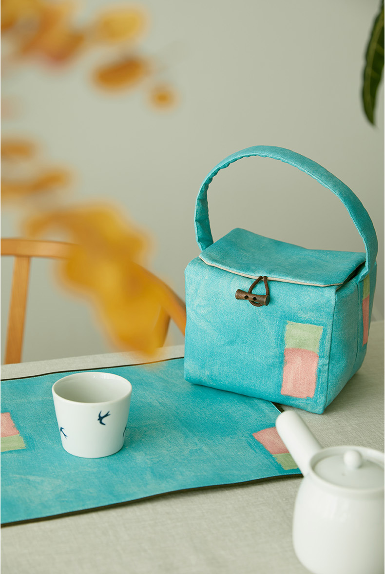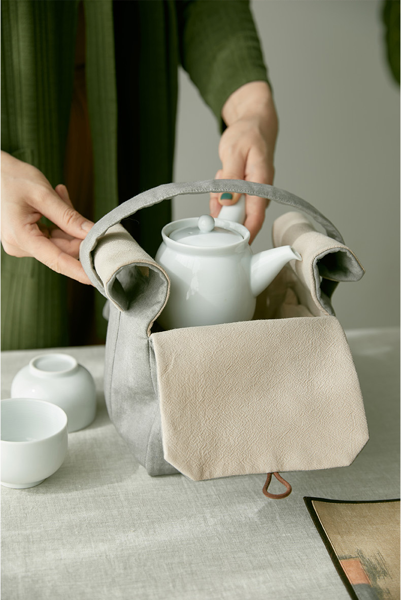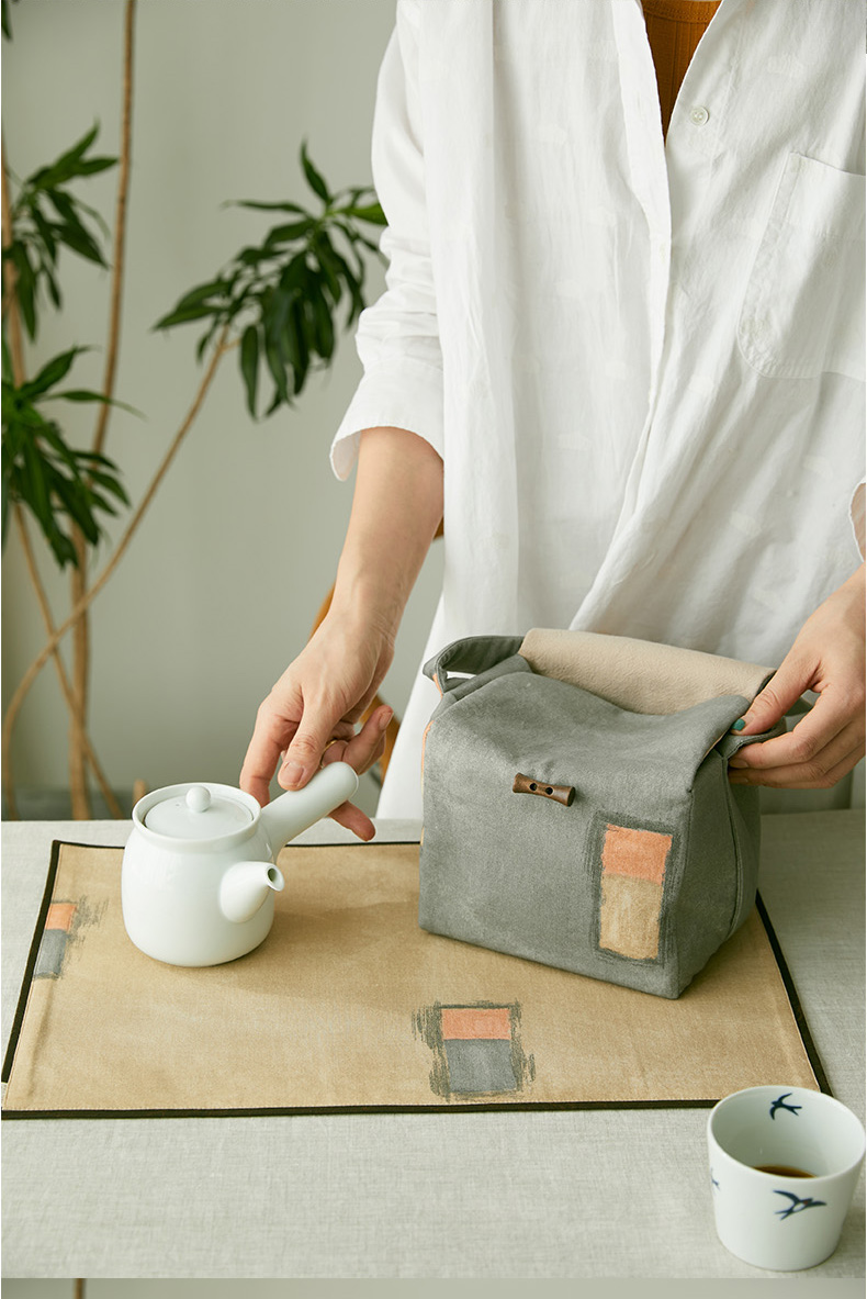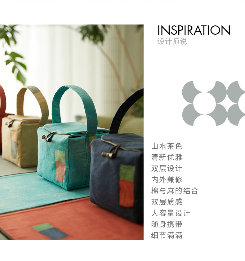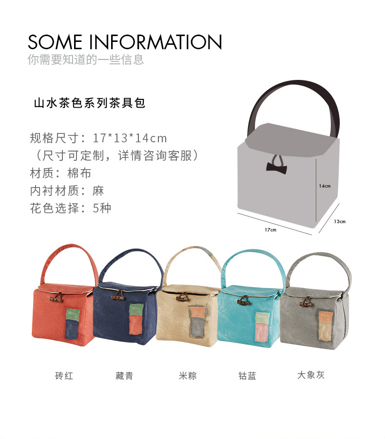 山水茶色旅行户外茶具收纳包棉麻布艺
