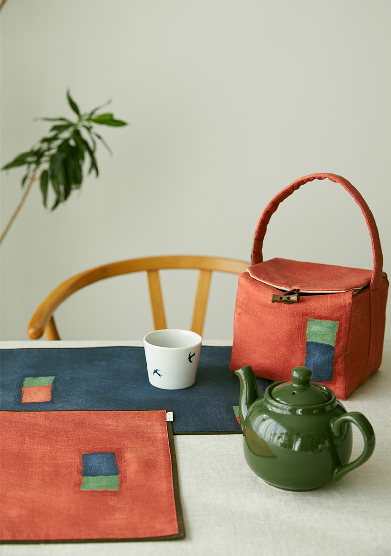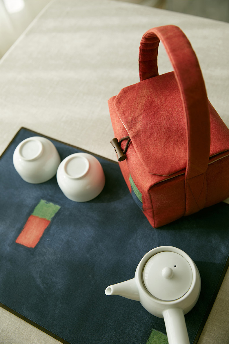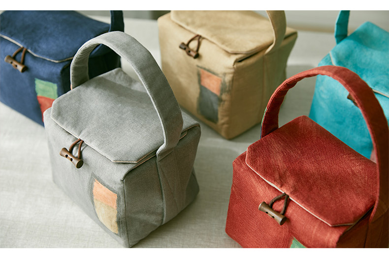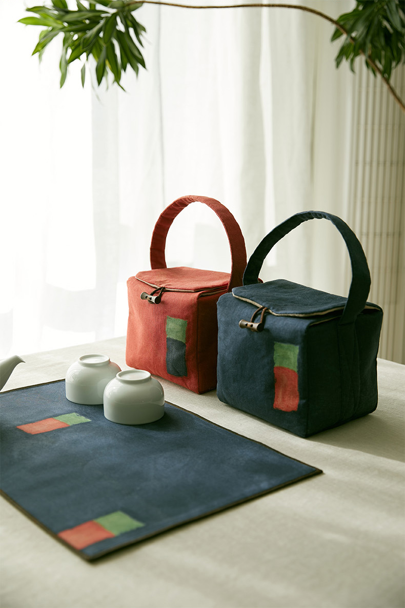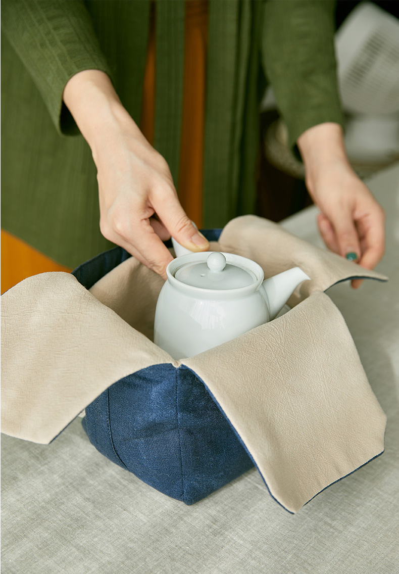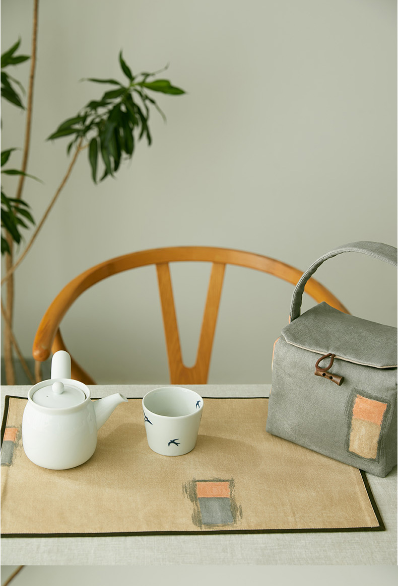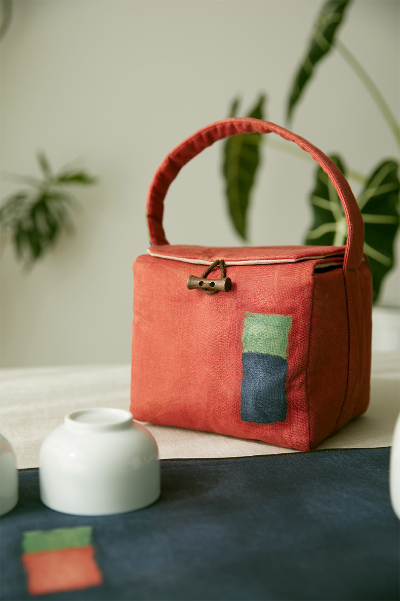山水茶色旅行户外茶具收纳包棉麻布艺