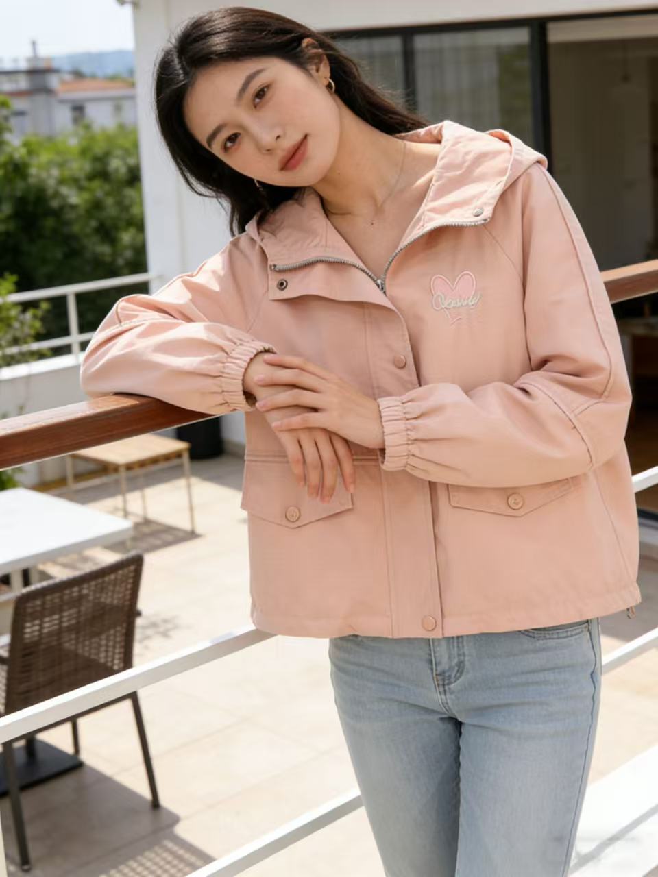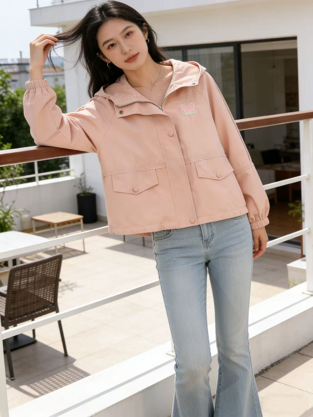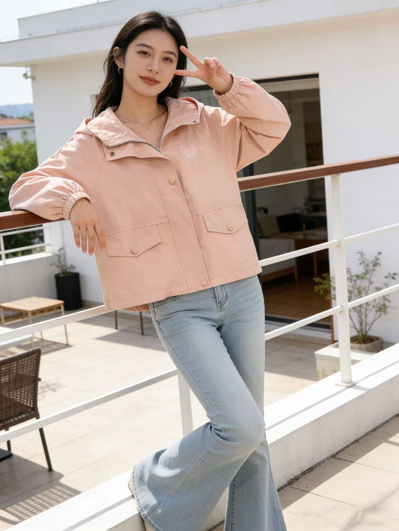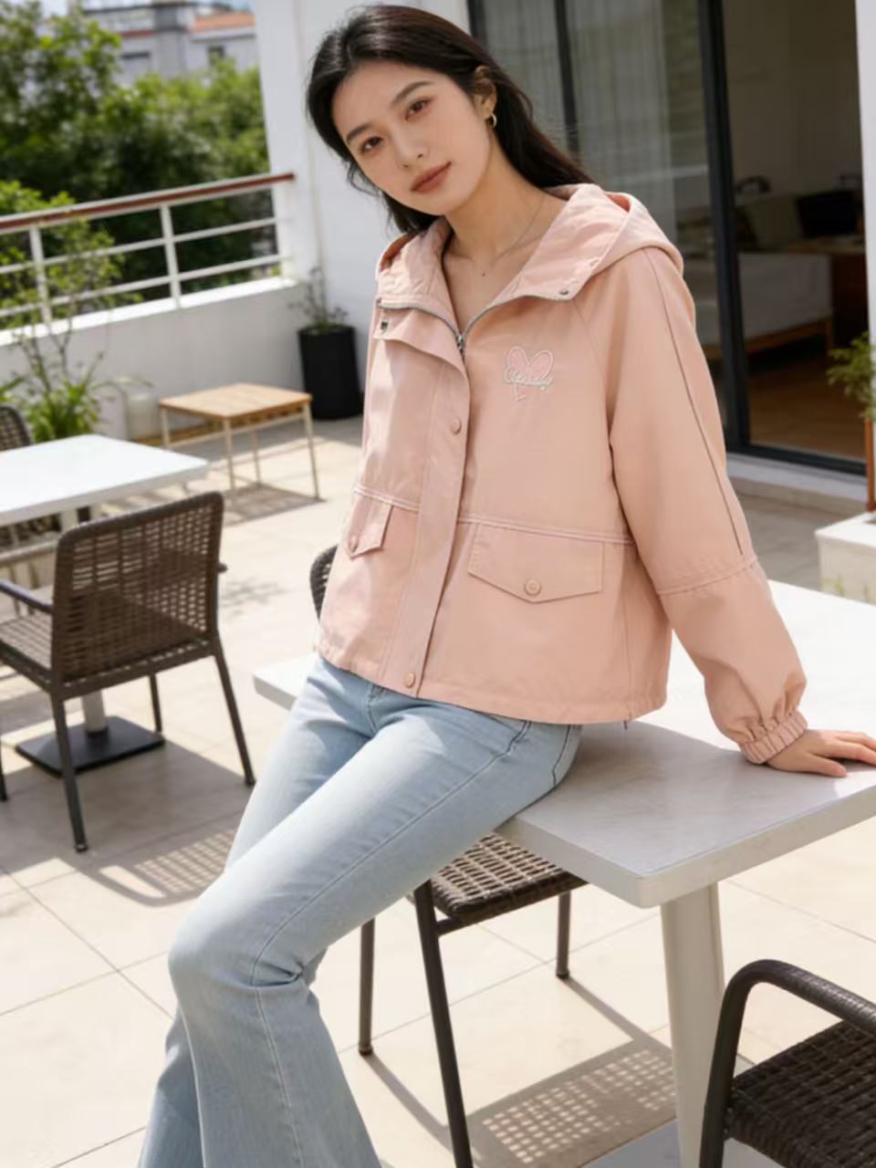 活动爆款【自营】衣周期~409连帽爱心刺绣风衣外套-喜出