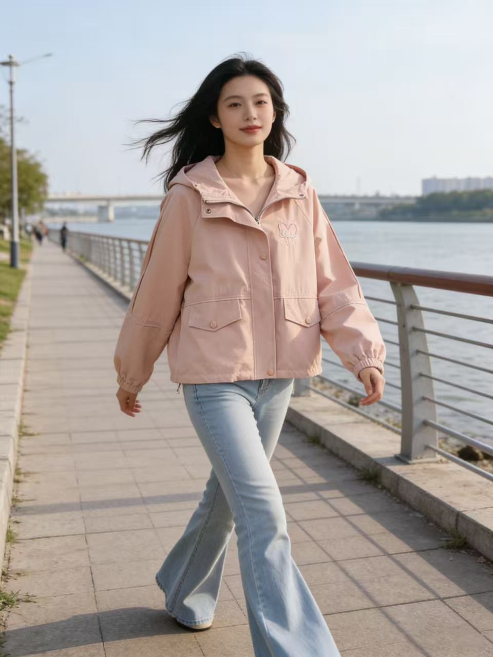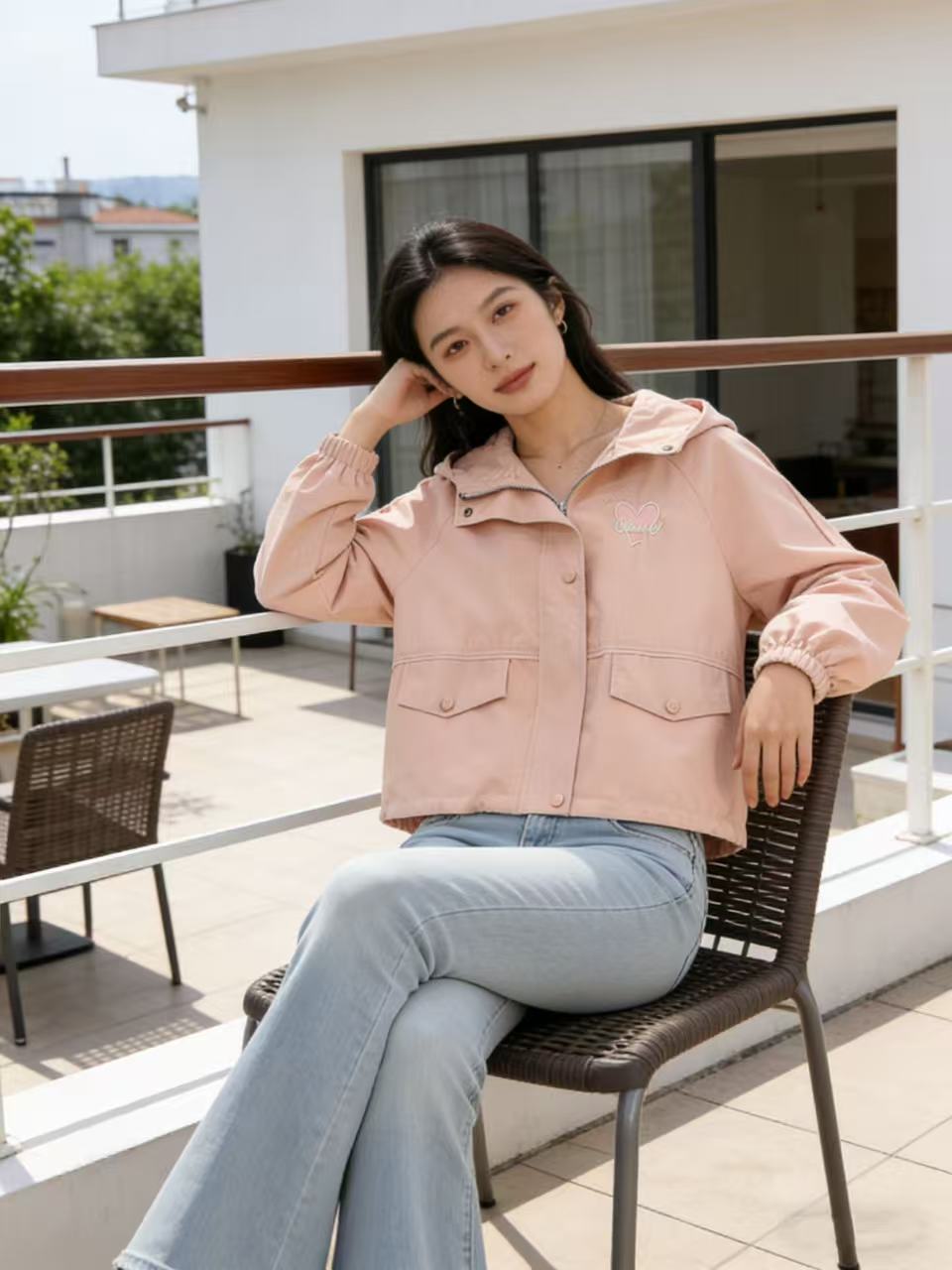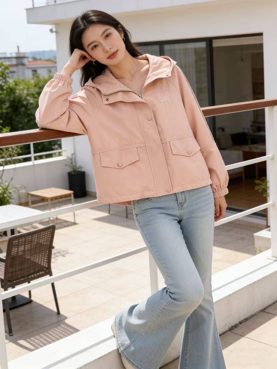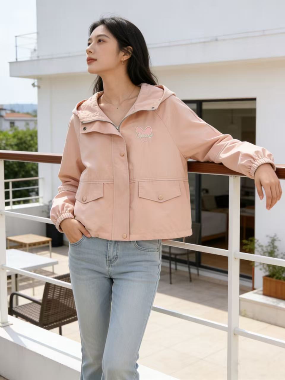 活动爆款【自营】衣周期~409连帽爱心刺绣风衣外套-喜出