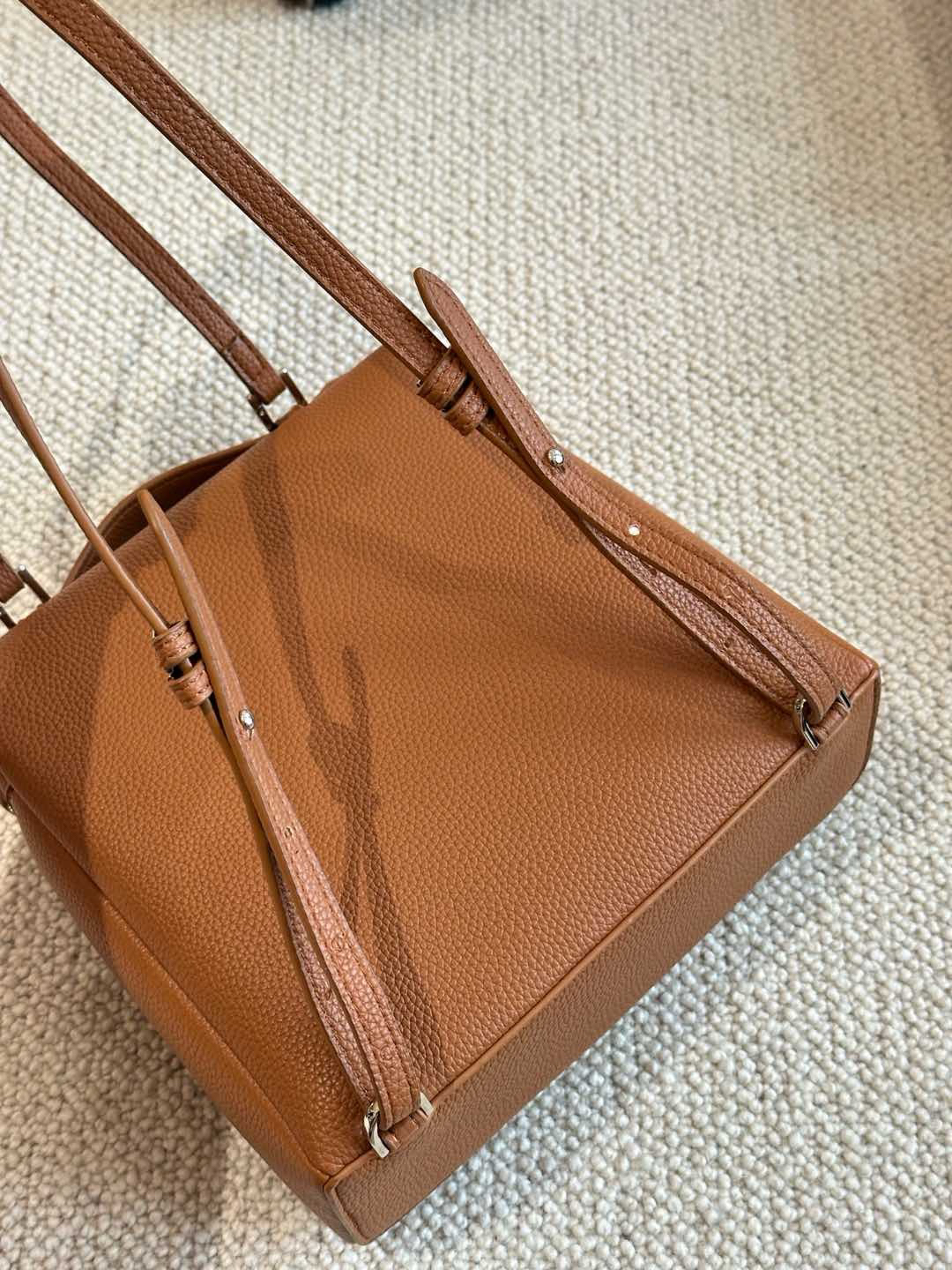 颜值与实力并存,进口tog荔枝纹小牛皮,全身上下无一处logo,基本上除了五金没有任何标识,简约大气好看!梯形包型,无论是通勤还是休闲搭配都非常好看,商务也是非常大气的!相对其他尺寸来说,入手率是最高的!这种尺寸刚好满足你们所有需求!