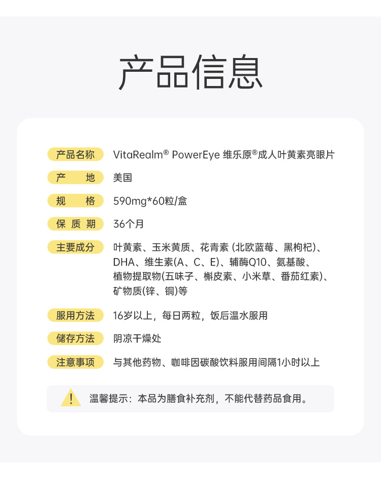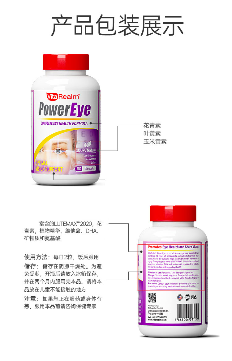 【VitaRealm】新加坡维乐原 成人叶黄素60粒