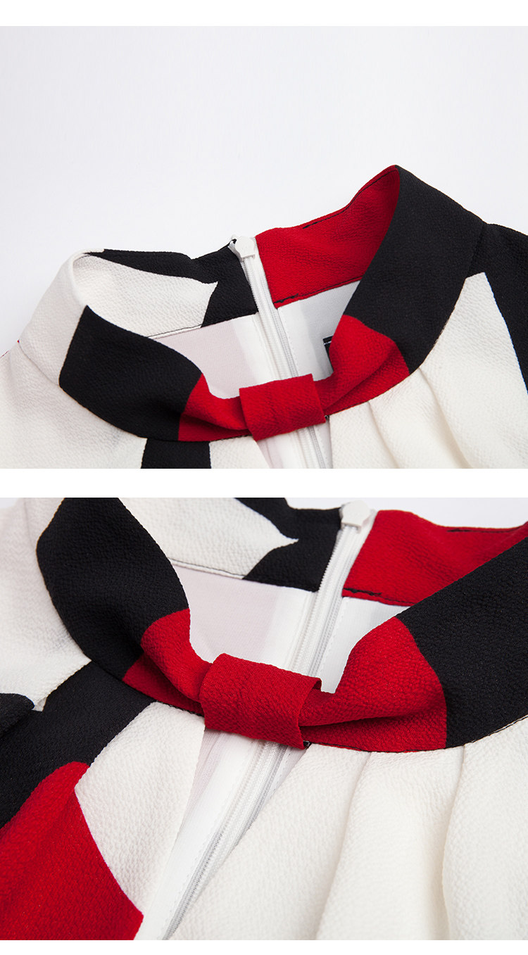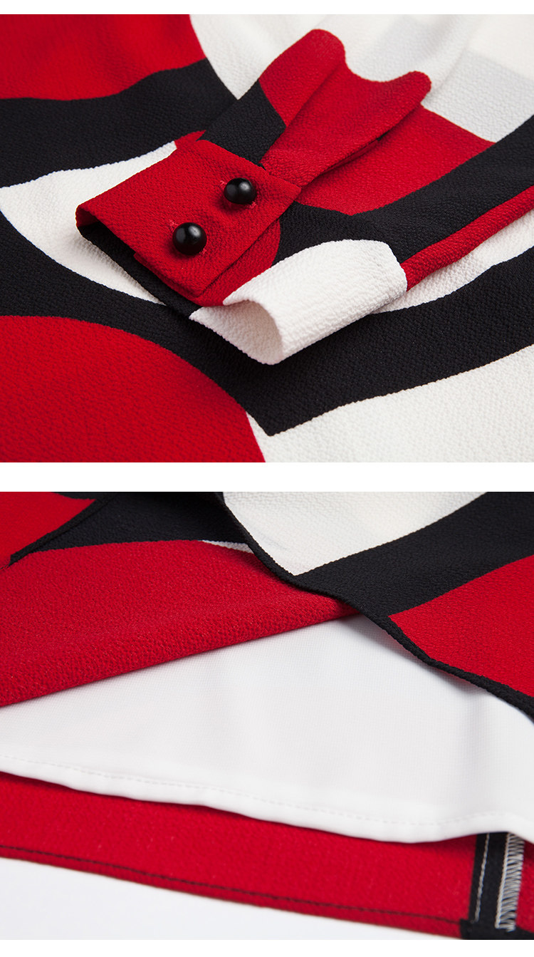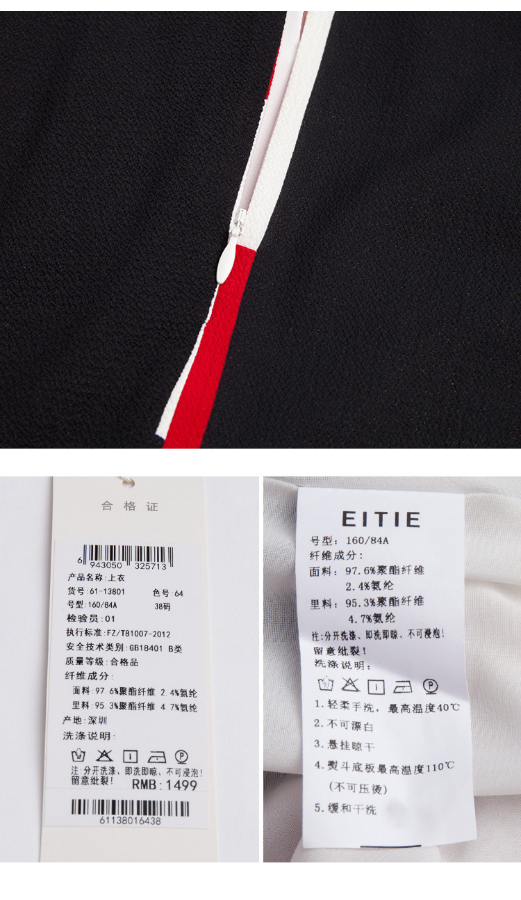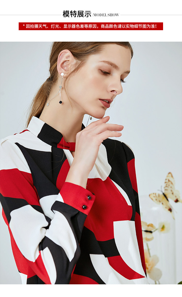 EITIE爱特爱春季新款通勤半高领镂空撞色印花长袖女上衣6113801