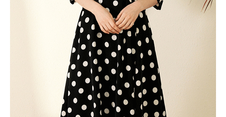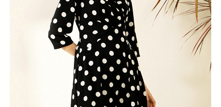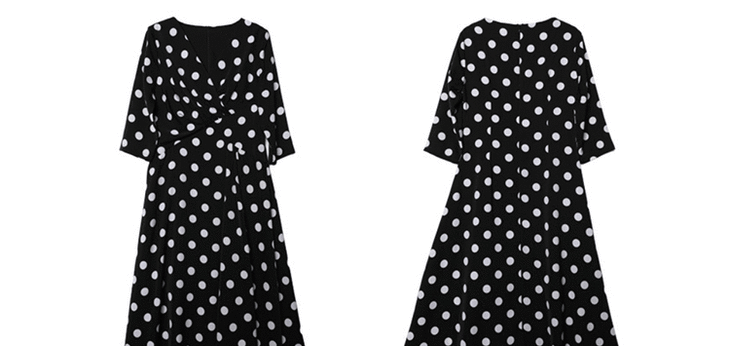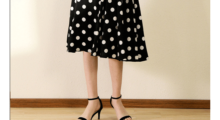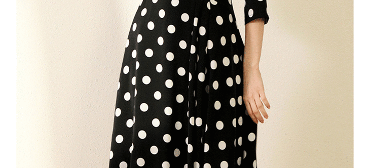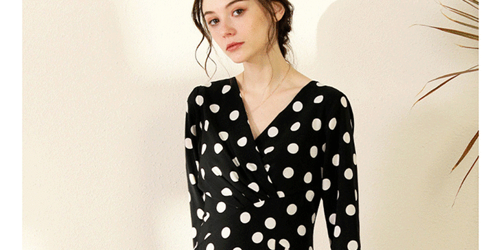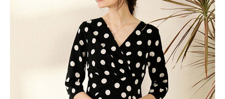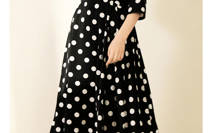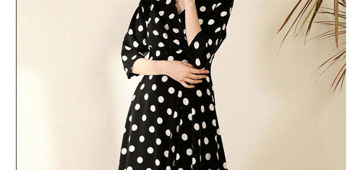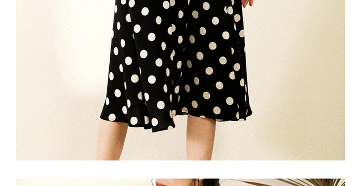 丁摩 真丝连衣裙女收腰显瘦时尚波点V领桑蚕丝连衣裙长裙20-130DL699