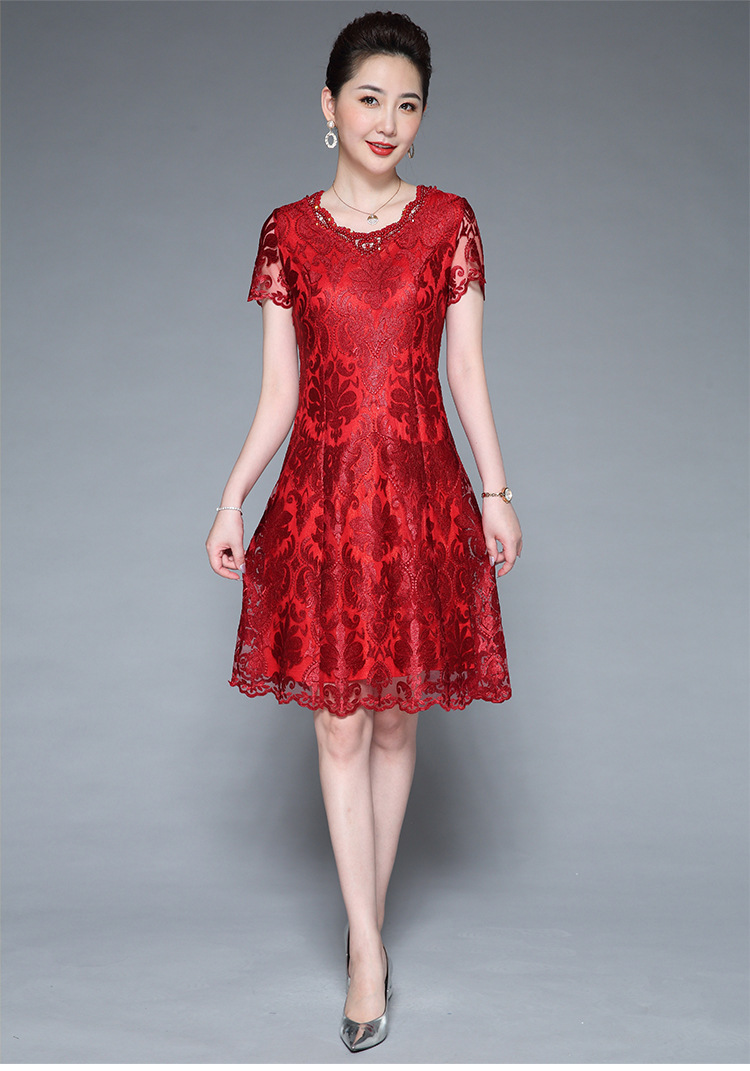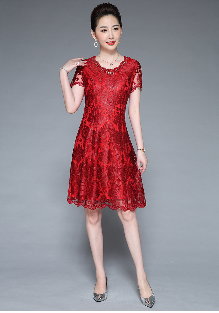 DYSL-Q5446网纱绣花大码妈妈装高贵气质婚宴喜婆婆连衣裙