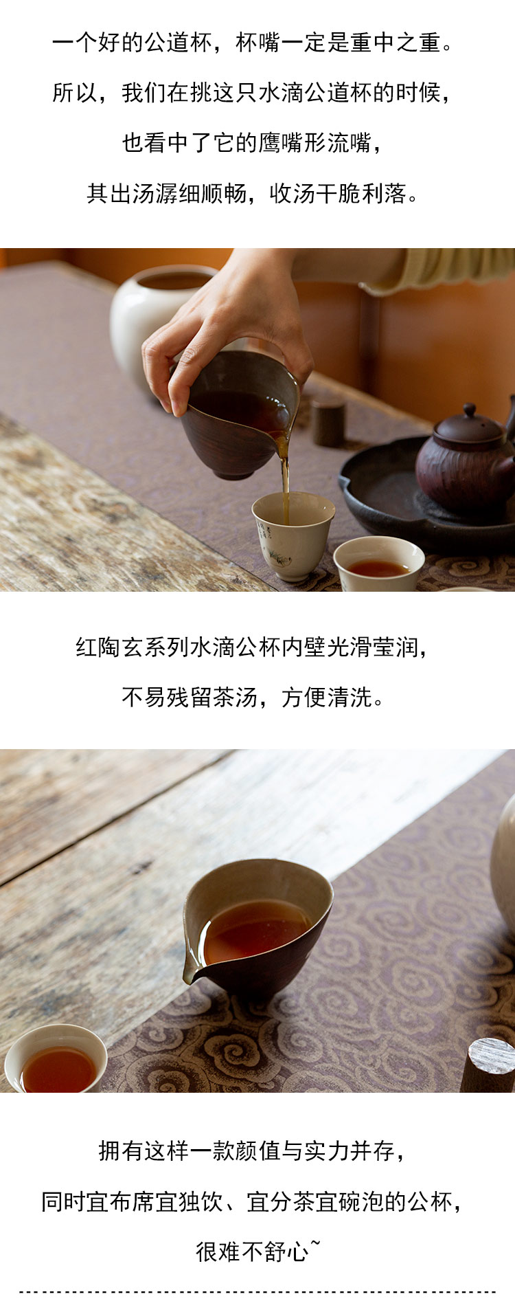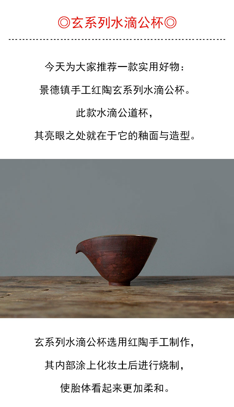 茶香记 景德镇手工 红陶 玄系列水滴公杯 双色搭配 器型经典