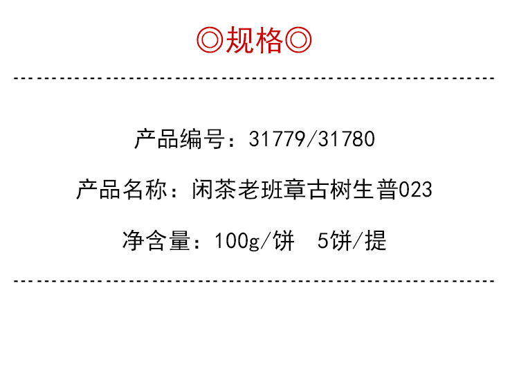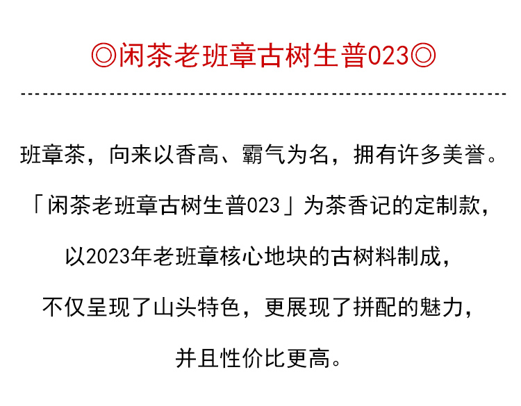 茶香记 闲茶老班章古树生普023 普洱茶 老班章核心底款 名山古树拼配 霸道浓醇