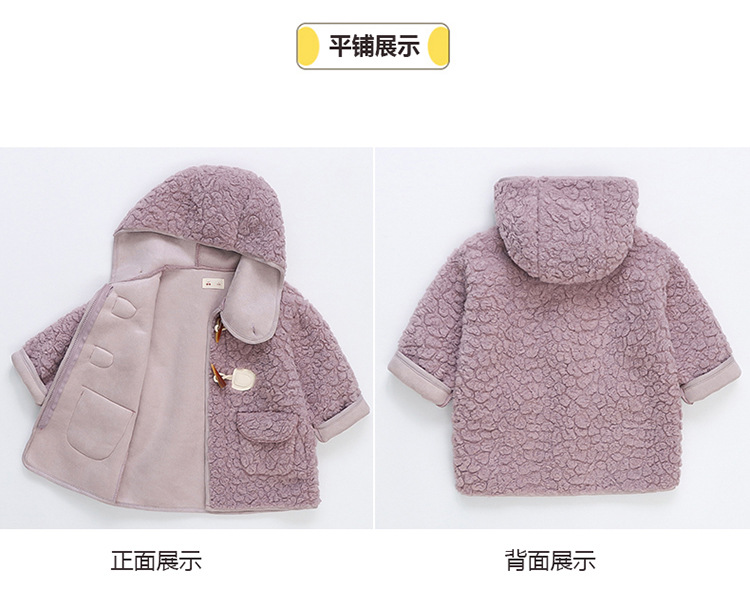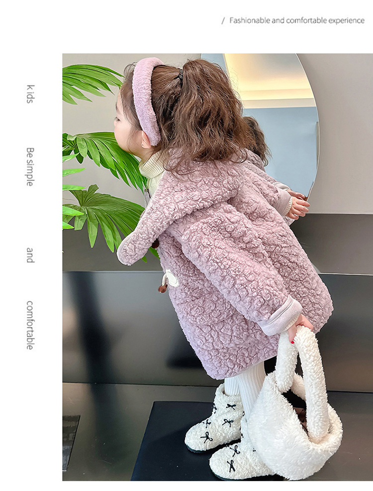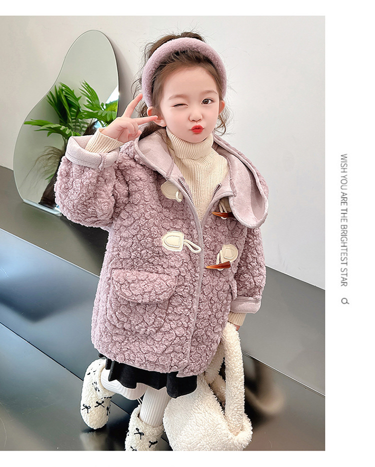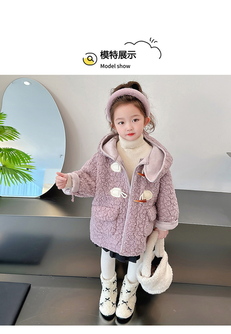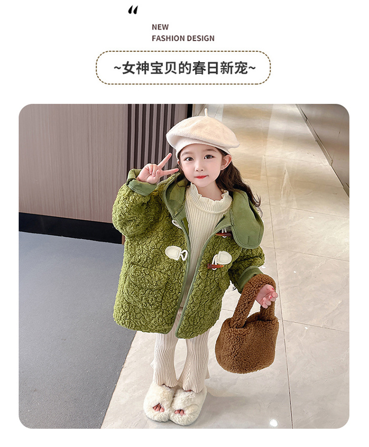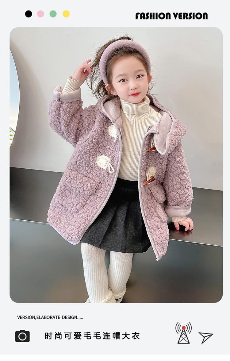 【时尚可爱毛毛连帽大衣,连帽领口,百搭舒适】女童羊羔绒外套 秋冬新款 洋气儿童加绒上衣秋装 宝宝加厚童装-QQ