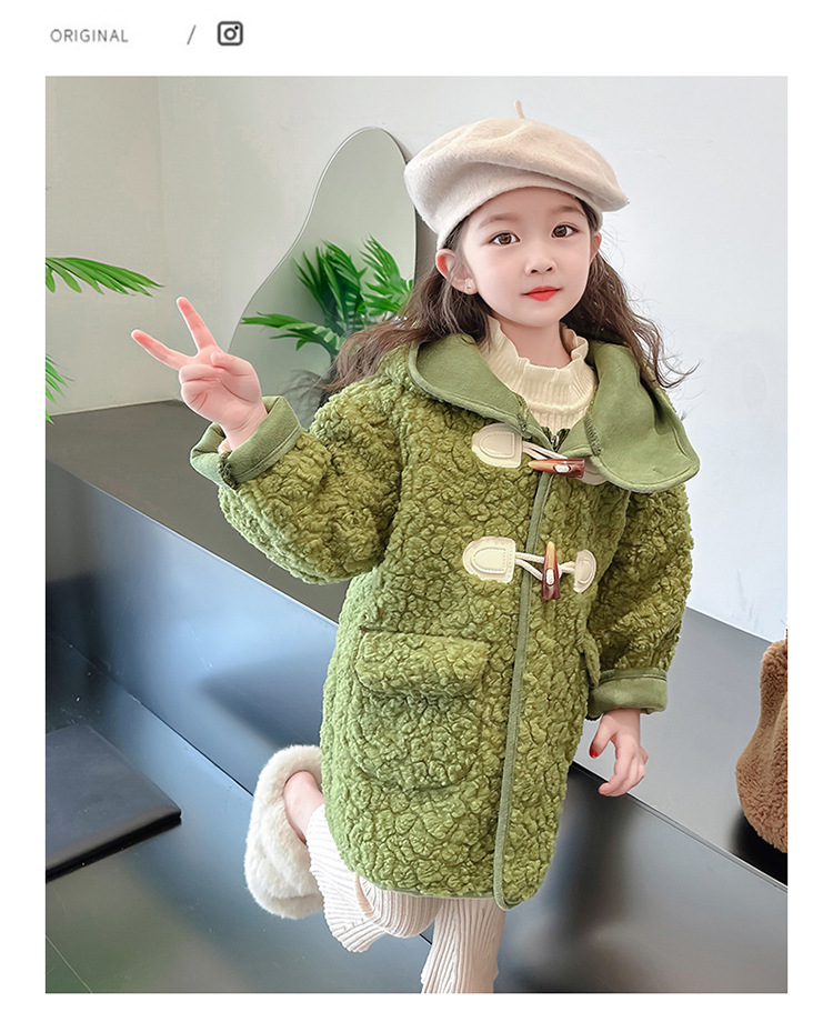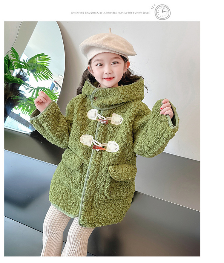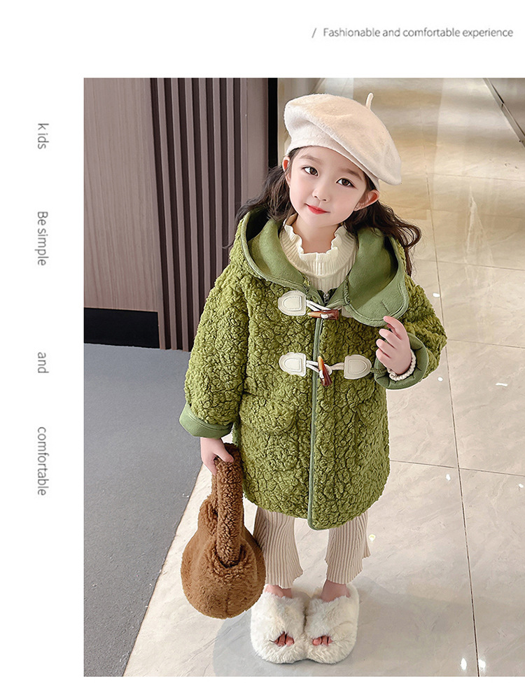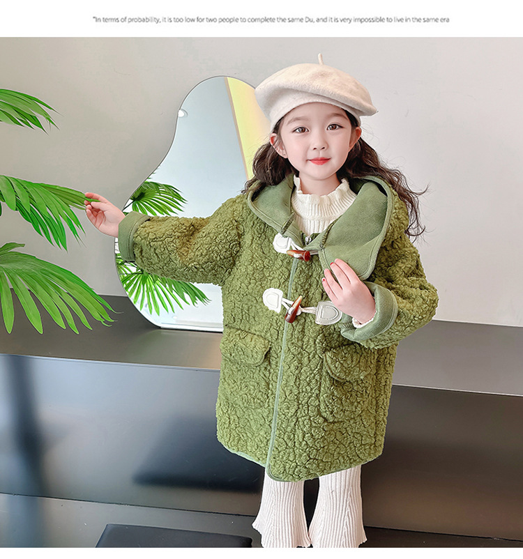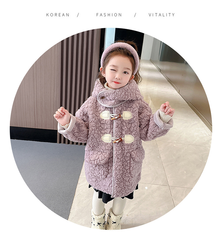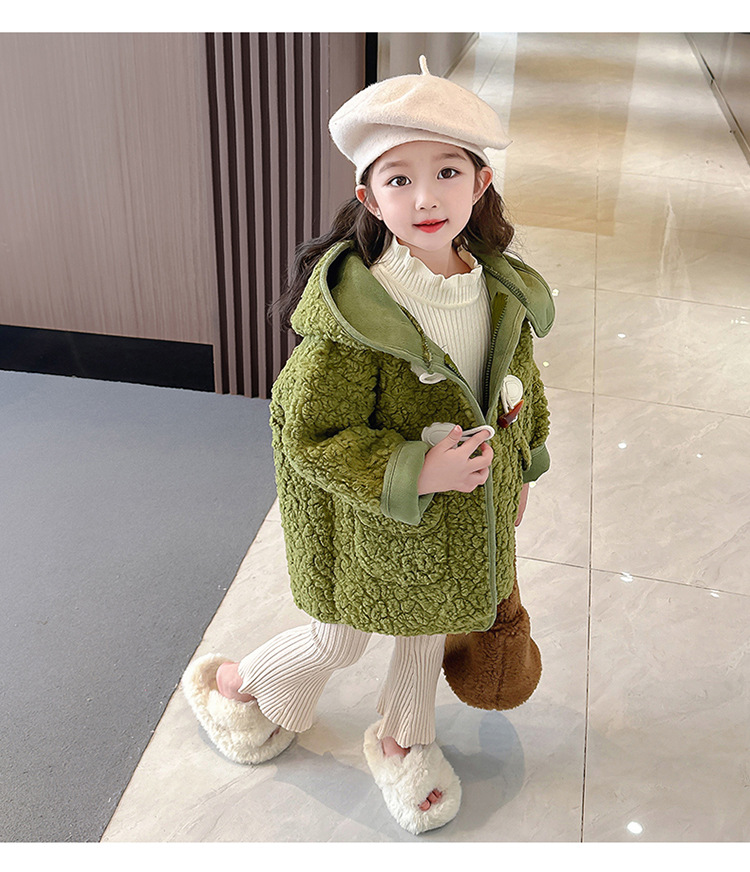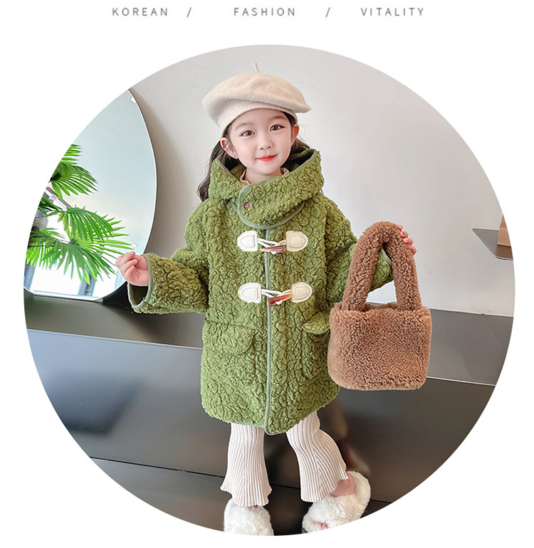 【时尚可爱毛毛连帽大衣,连帽领口,百搭舒适】女童羊羔绒外套 秋冬新款 洋气儿童加绒上衣秋装 宝宝加厚童装-QQ