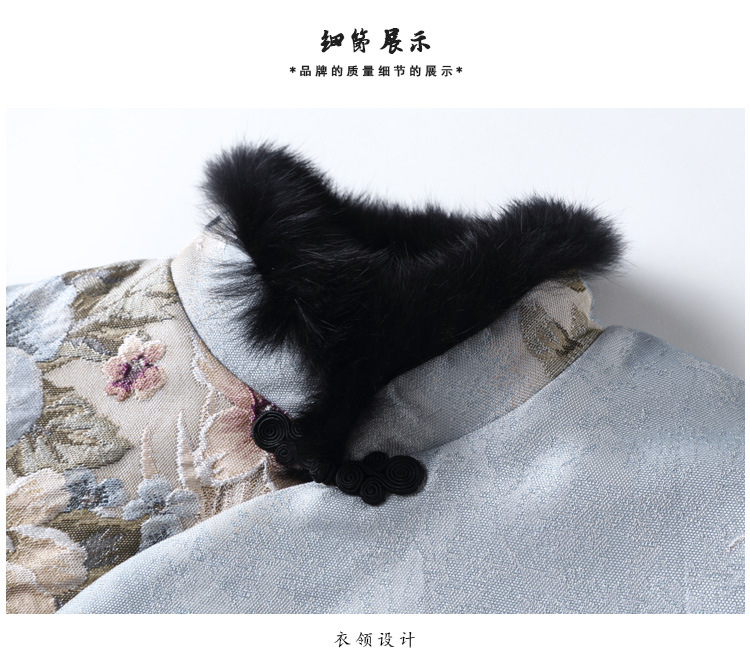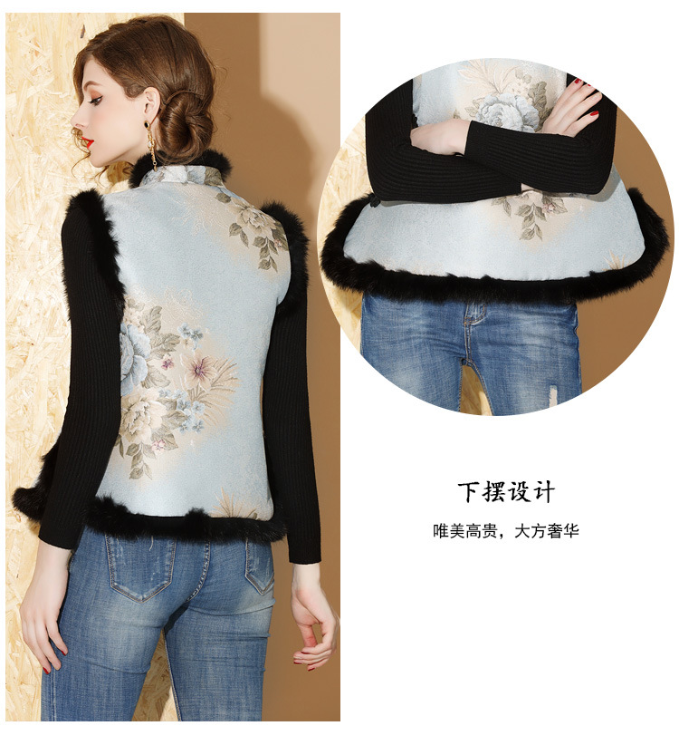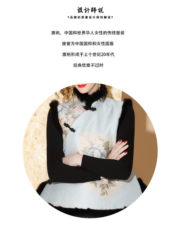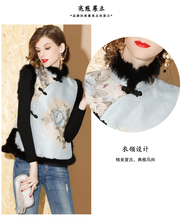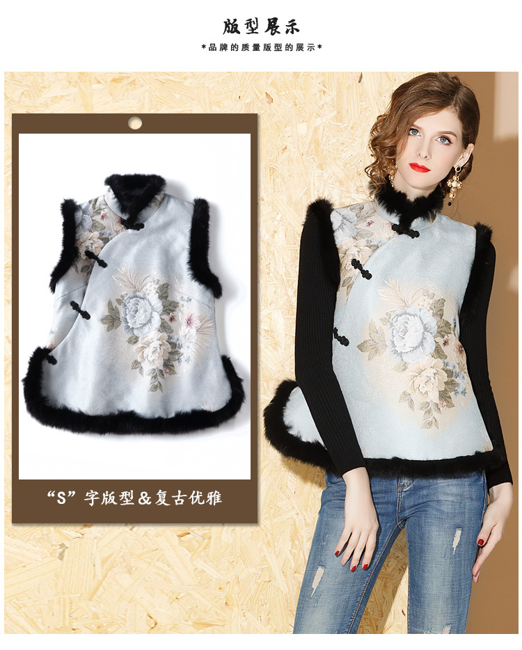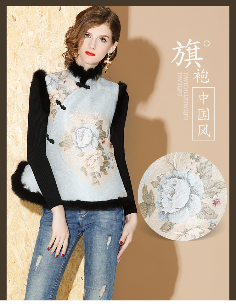 上海旗袍厂AYK-QF-180901冬季女装中国风提花毛边拼接唐装夹棉上衣女立领复古修身马甲