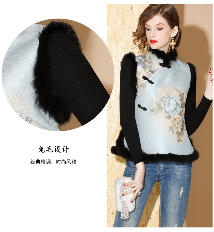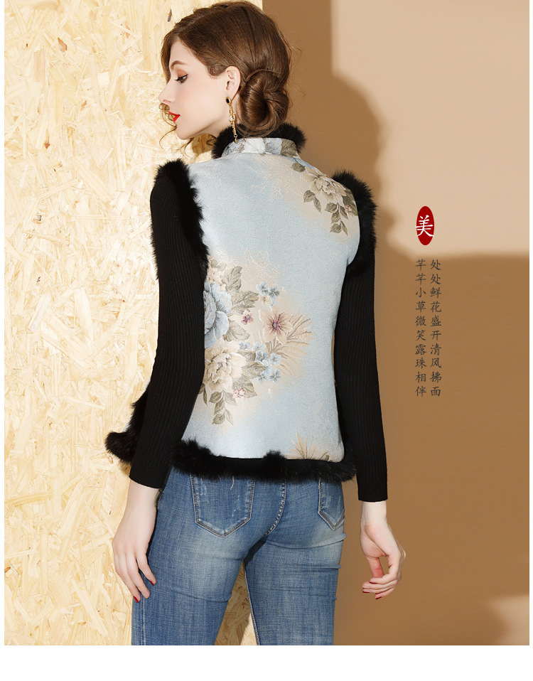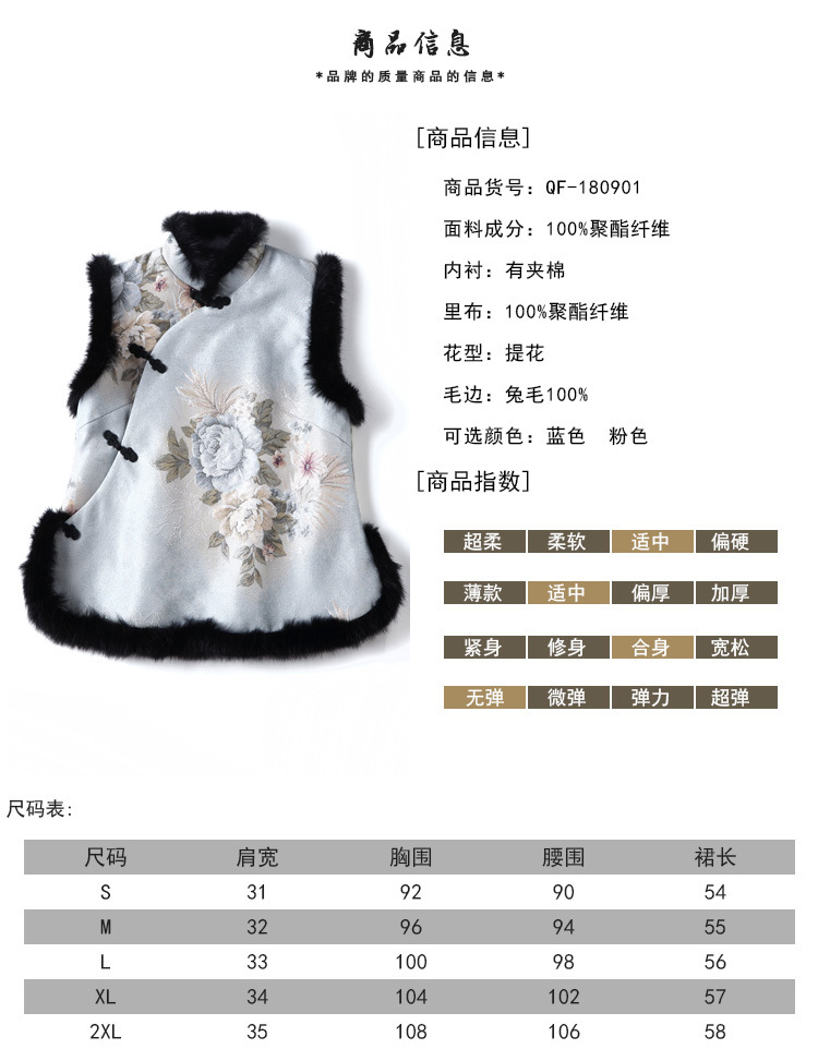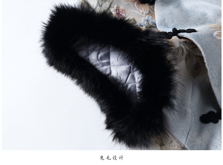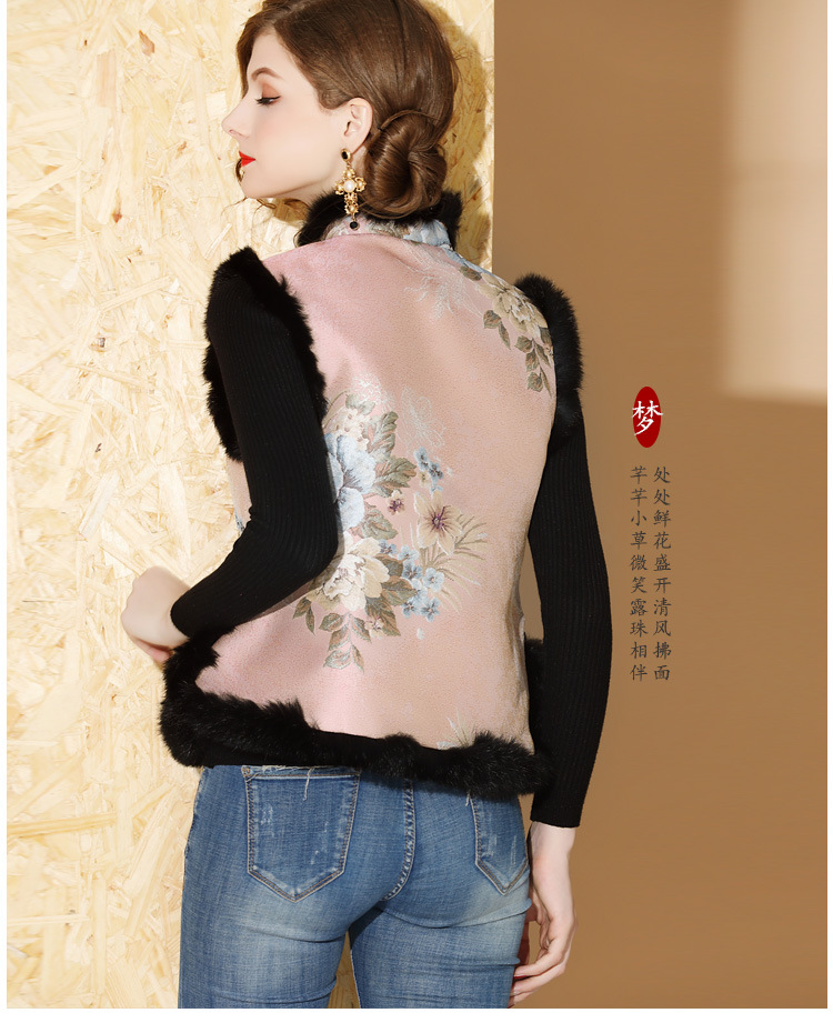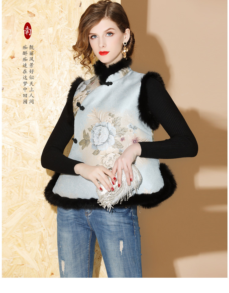 上海旗袍厂AYK-QF-180901冬季女装中国风提花毛边拼接唐装夹棉上衣女立领复古修身马甲