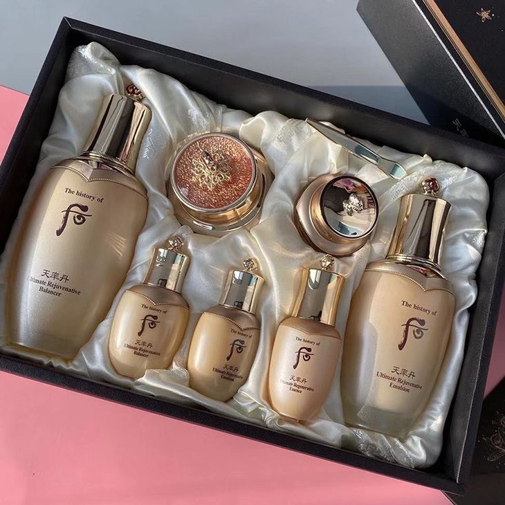 WHOO天率丹三件套(水乳+面霜+小样4件) 👍天率丹为高端抗衰老系列,真的是抗衰老界的杠把子💯 。在天气丹基础上添加了还幼精华🌿 成分,是天气丹1⃣ 0⃣️倍浓缩。全面再生修复、抗皱紧致、提升肌肤弹性、改善暗黄肤色光泽肌肤☺️ 、滋润保湿。水乳质地比较浓稠,轻柔按摩吸收快👋 。 【套装包括】水150ml+乳110ml+面霜25ml+眼霜10ml+水乳各25ml+精华8ml