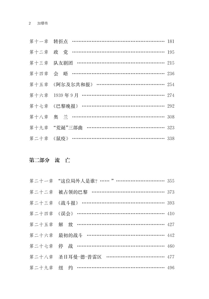 我以为人们也许是含着烟斗,坐在富丽堂皇的办公室里,用鹅毛笔写传记的。然而,为了搜集本书的材料,我得实地调查研究,寻找证人,并说服一部分人,让他们保持多年的缄默,以及他的敌人或者无动于衷者,至少给予一个客观完整的见证。我得去发掘那些往往被人们珍藏着的原始资料,那些旧纸片、小册子、报纸剪报。当我重新找到一个断了的,然而很重要的线索时,或者当我使迟疑不决的见证人面对资料作出完全承认时,我的内心往往充满愉悦。我经常担心的是,那些大量已发表、流传广泛,然而完全错误的资料,如混乱的年代表、来往信件和手稿日期的不一。对加缪大量的研究都是以这些材料为基础进行的,因而每当我在大学附近某书店里看到这类研究作品时我就感到难过。显然,所有对阿尔贝·加缪感兴趣的人多少都受到了这些材料的影响。