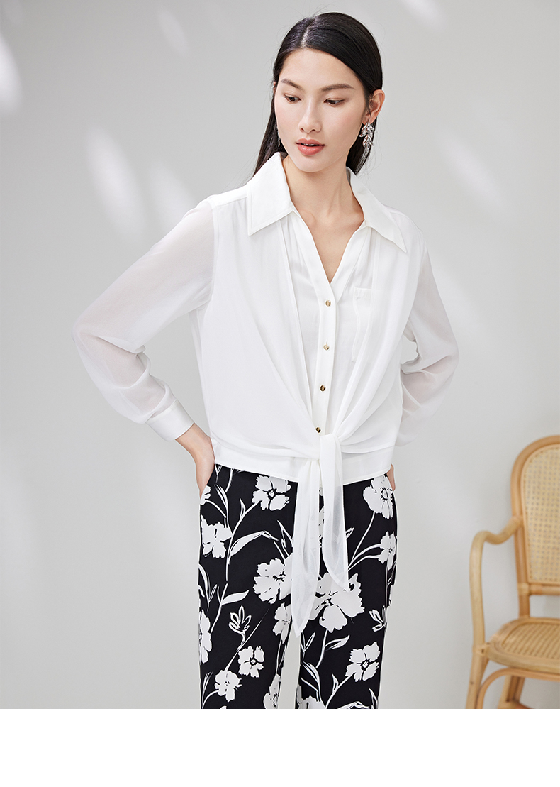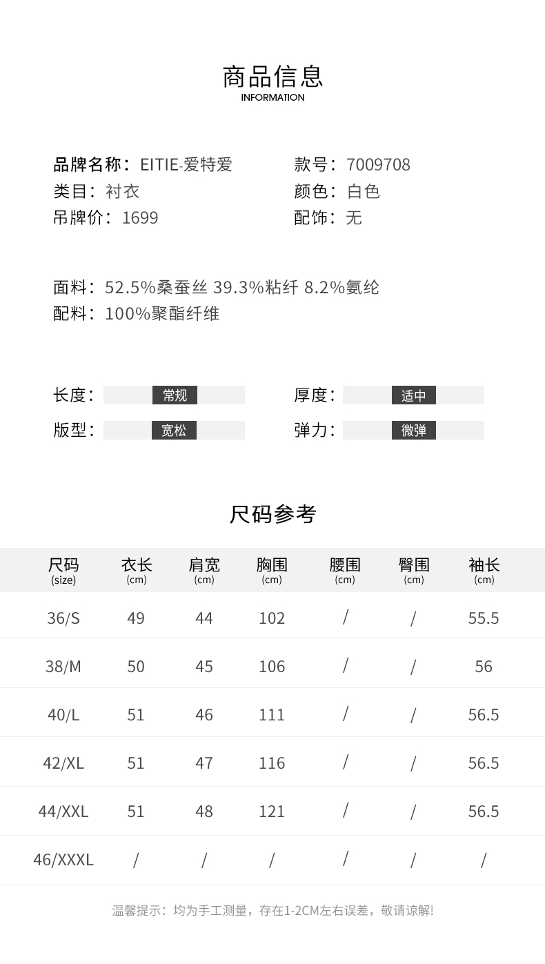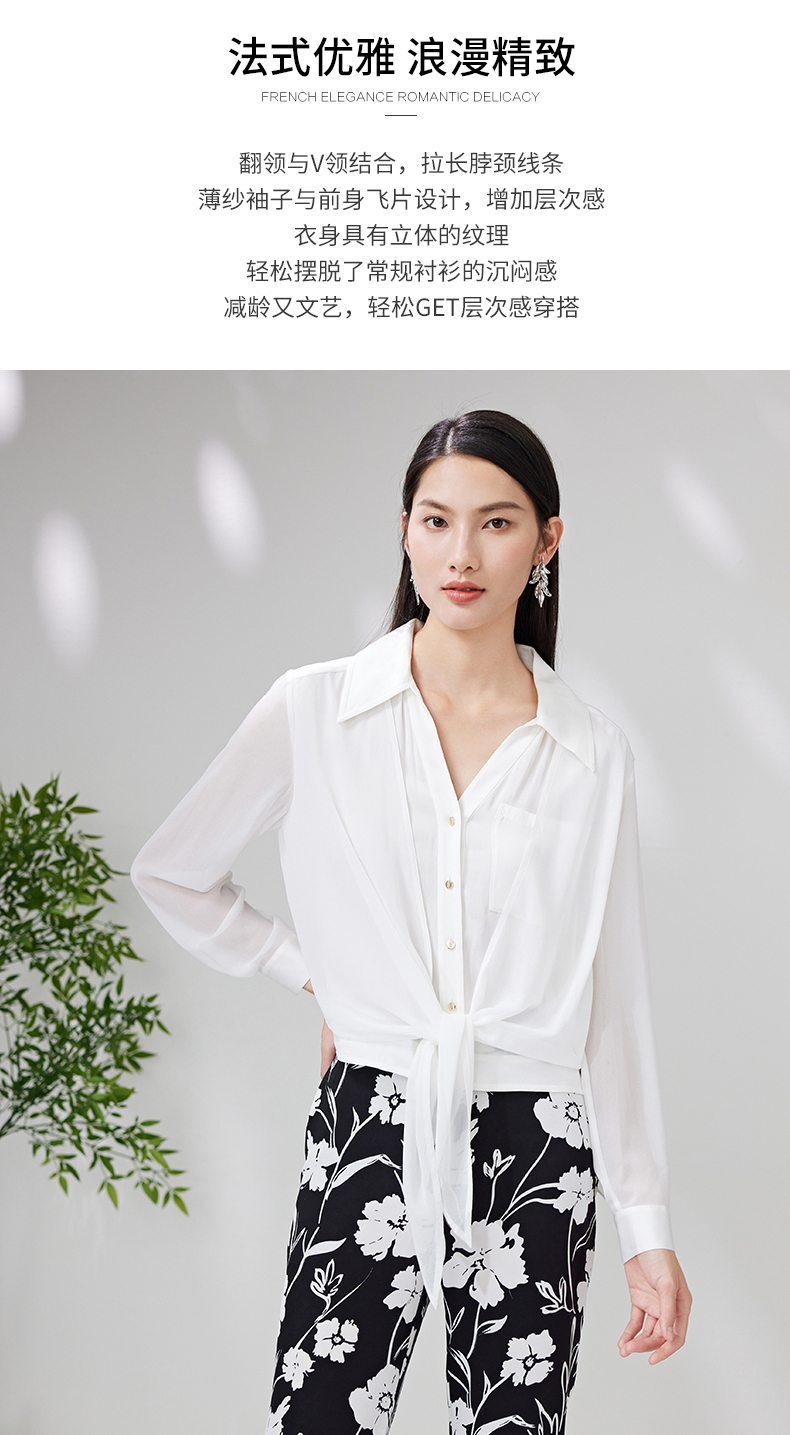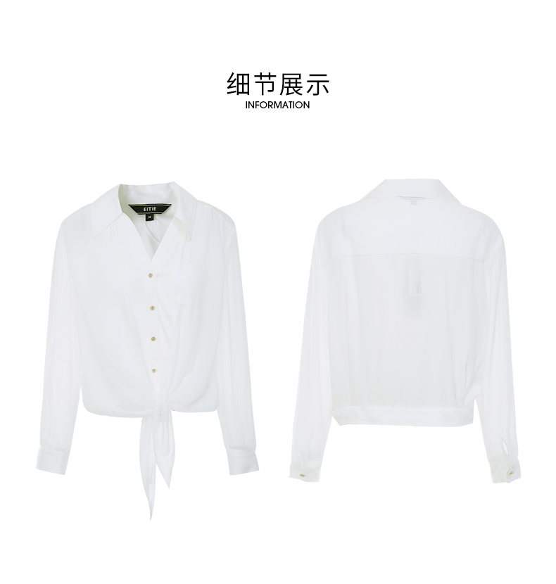 EITIE爱特爱夏季气质V领纯色长袖防晒打底百搭衬衫女7009708