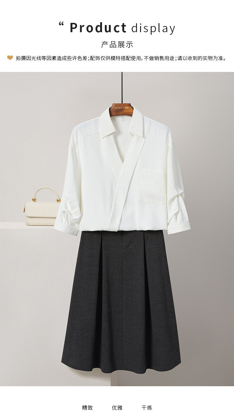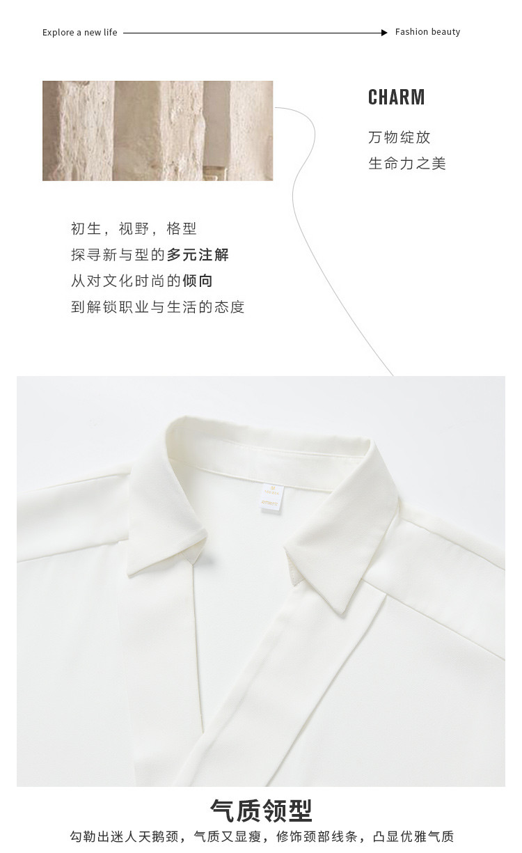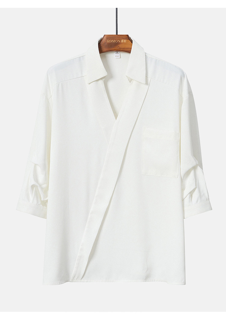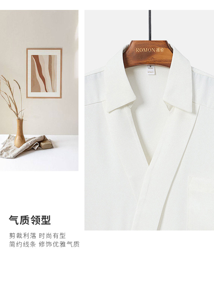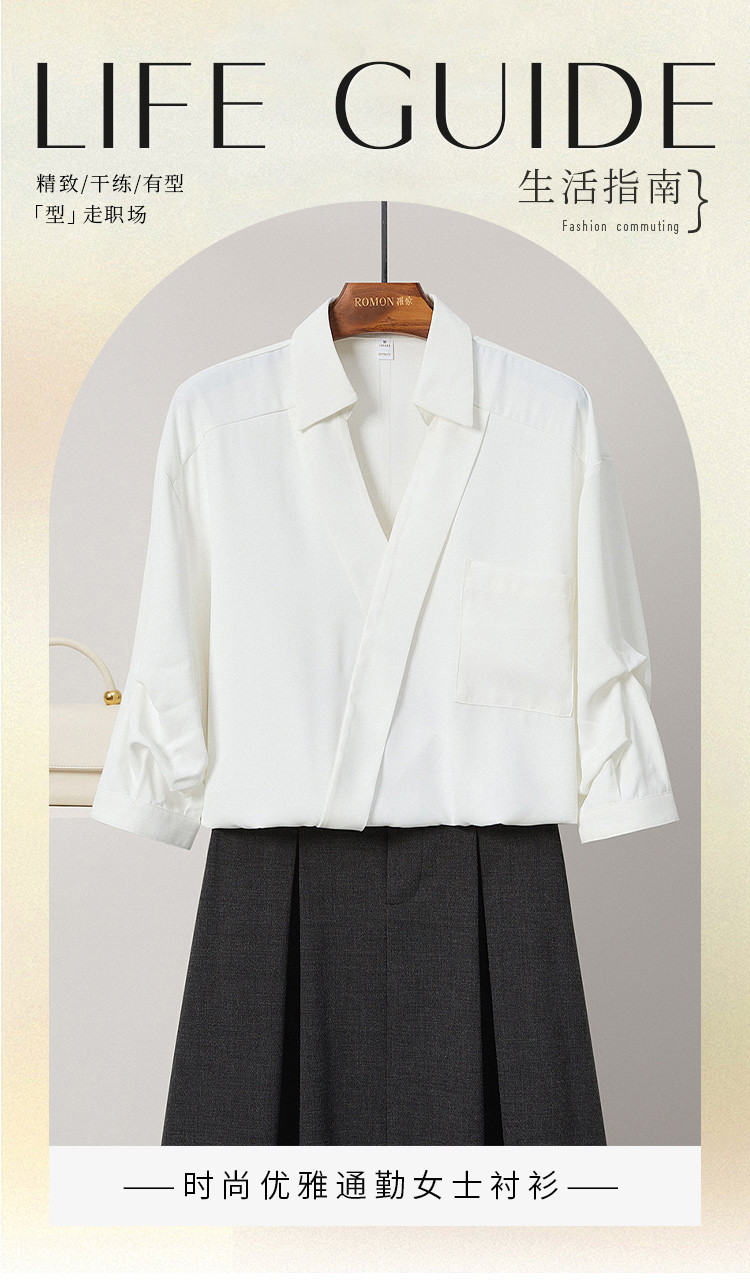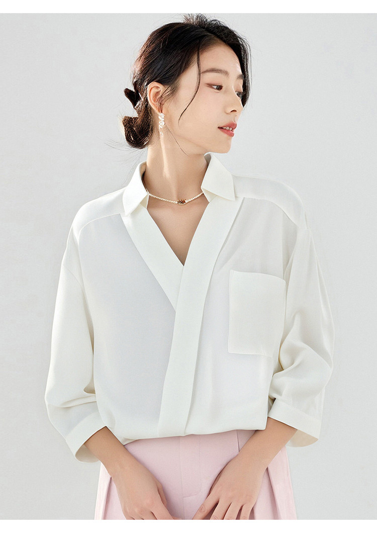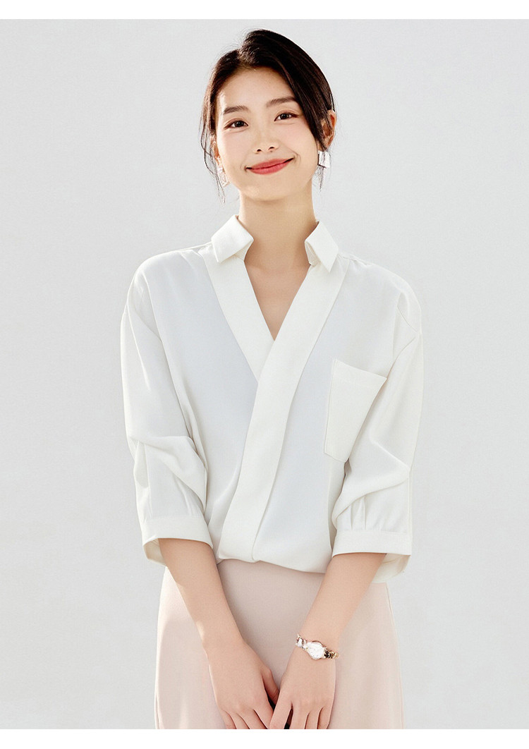 罗蒙夏季七分袖衬衫女士休闲百搭时尚V领前胸口袋设计感短袖衬衣女上衣