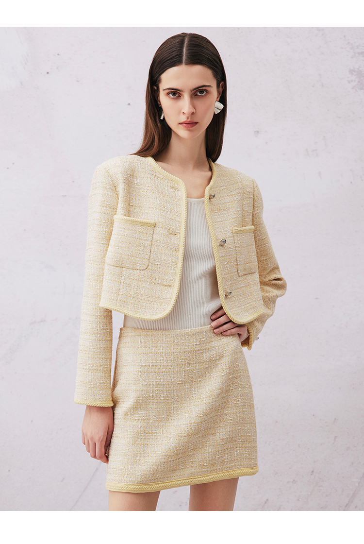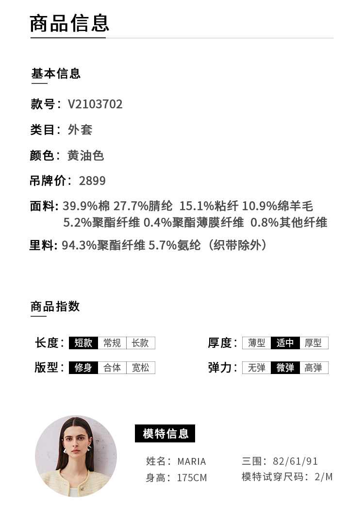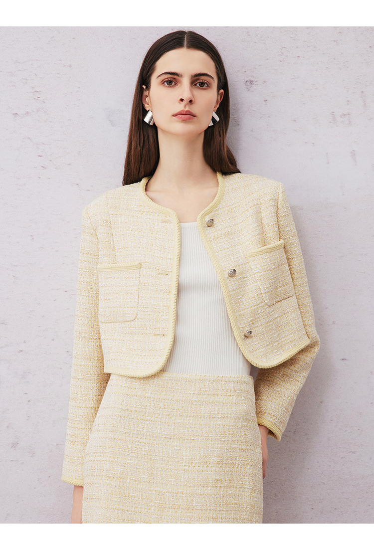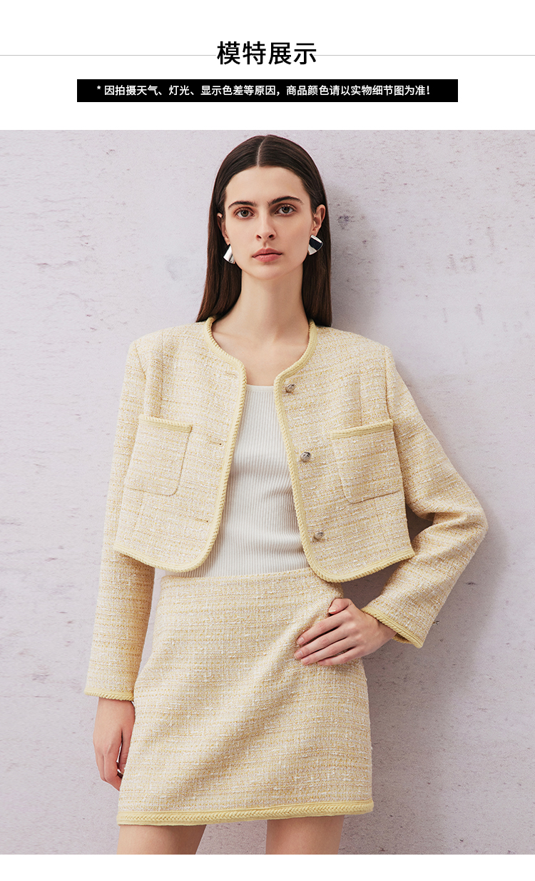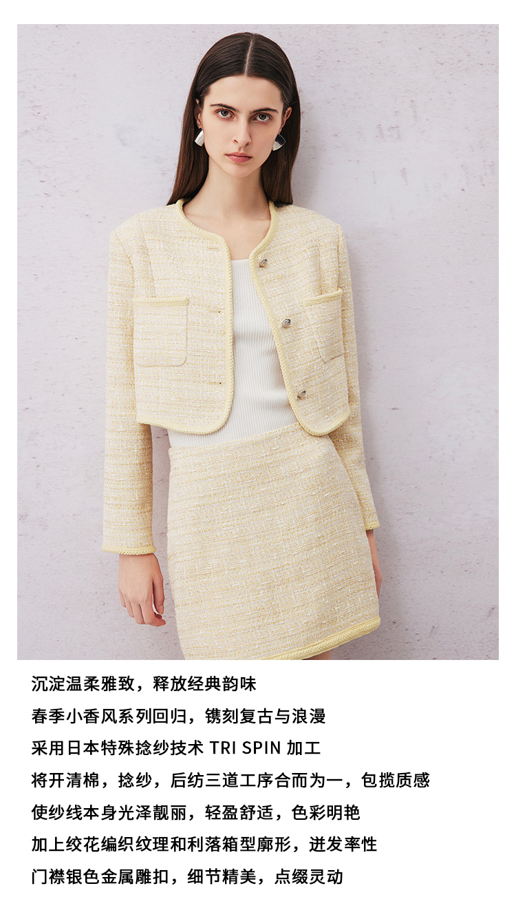 VIMAGE纬漫纪春季新款气质高级感小香风显瘦短外套V2103702