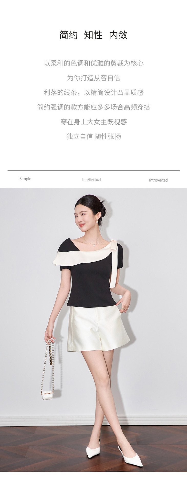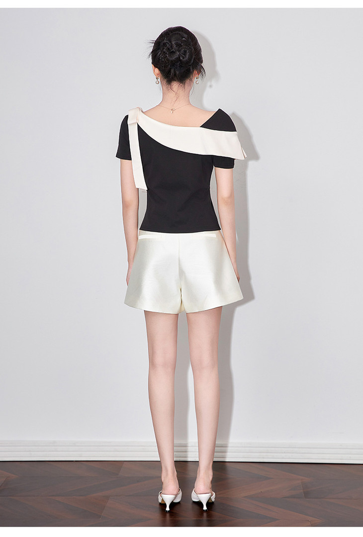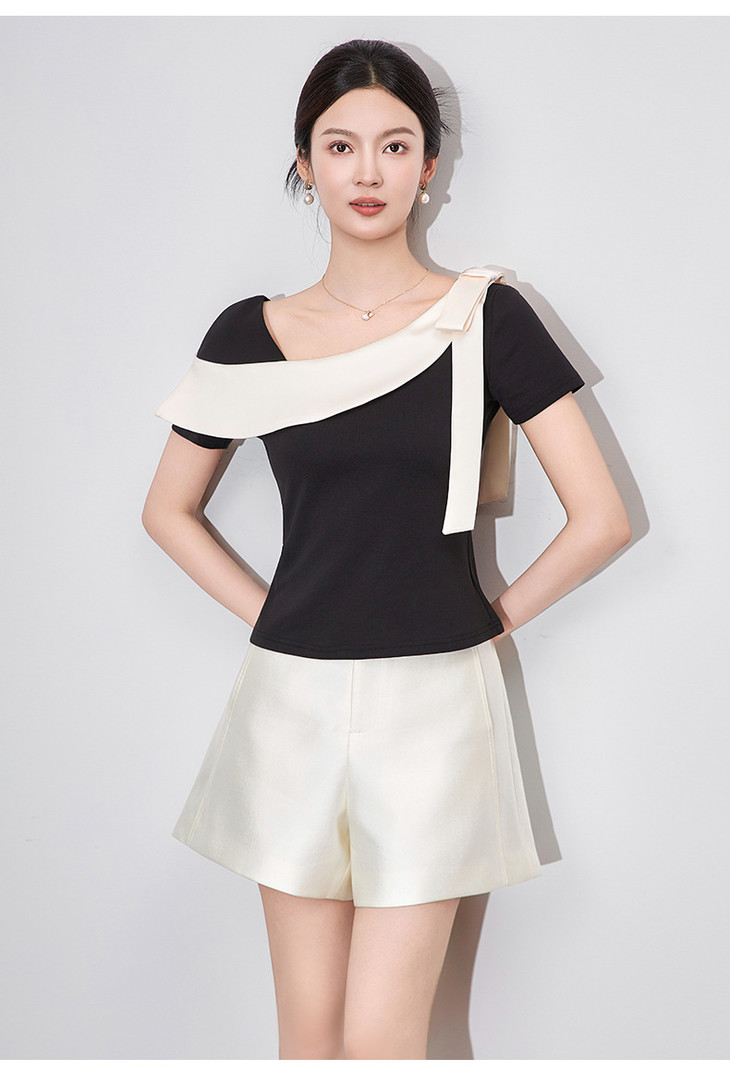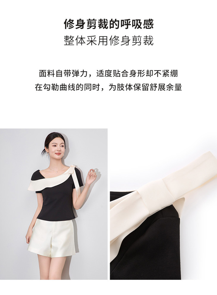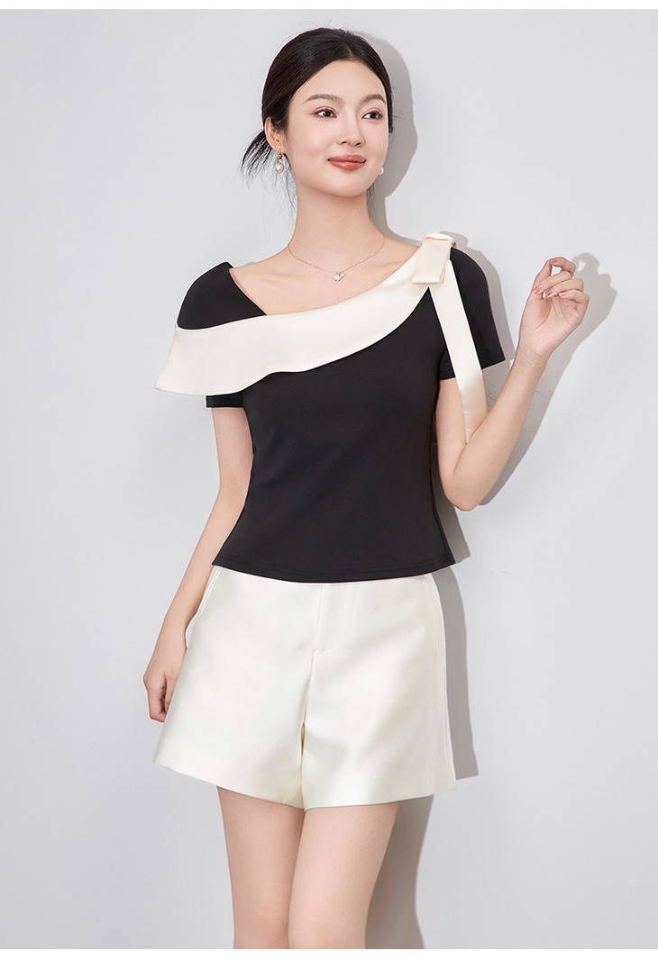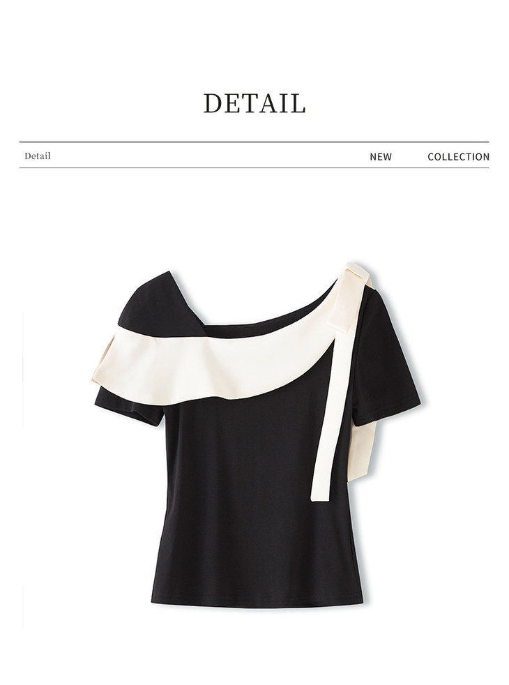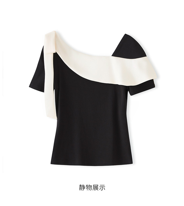 通勤温柔气质撞色,拼接不规则T恤WLZD-2510403