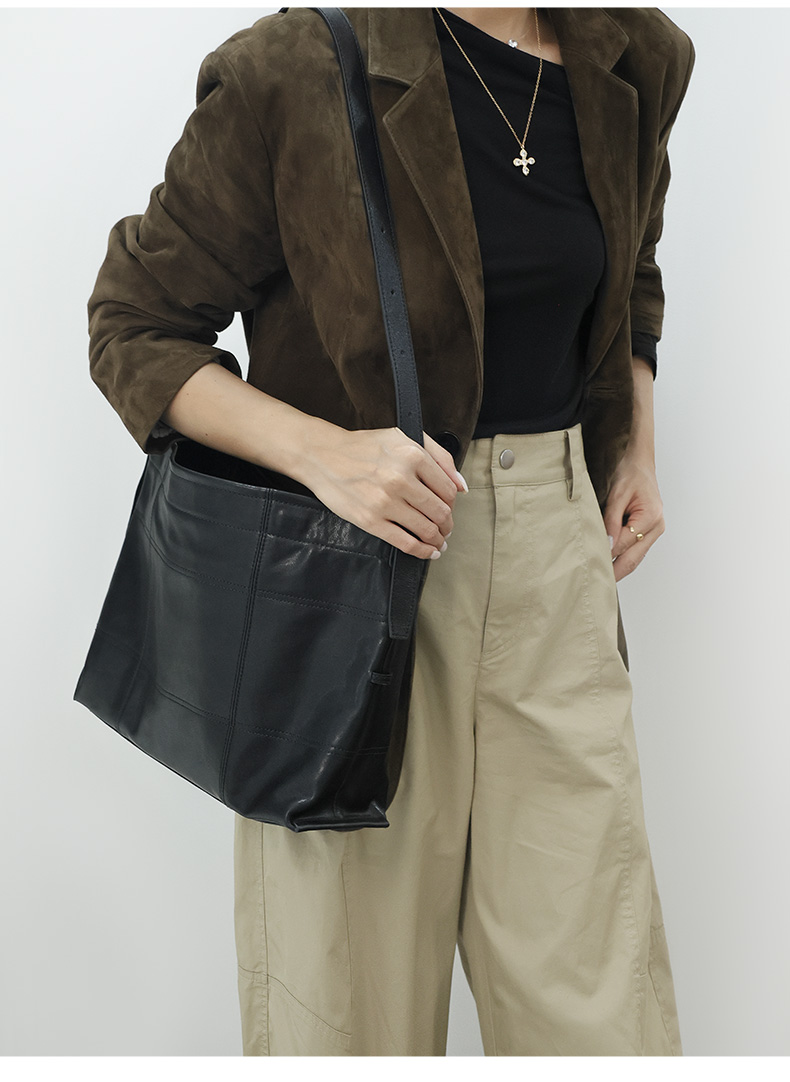 登白DENGBAI 头层植鞣牛皮斜挎包斜挎大容量托特包头层植鞣牛皮DB9903