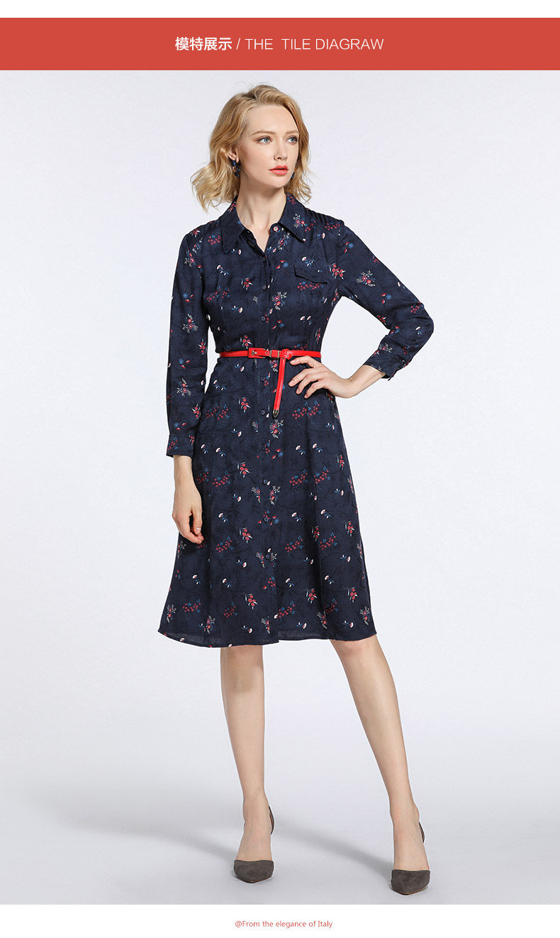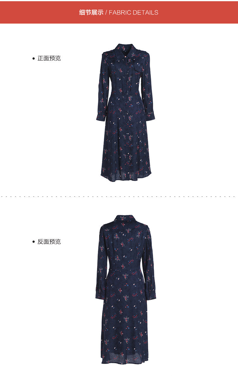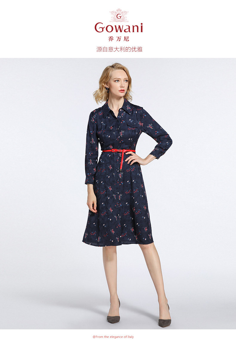 乔万尼春季长袖简约气质修身衬衫碎花连衣裙EB3E210