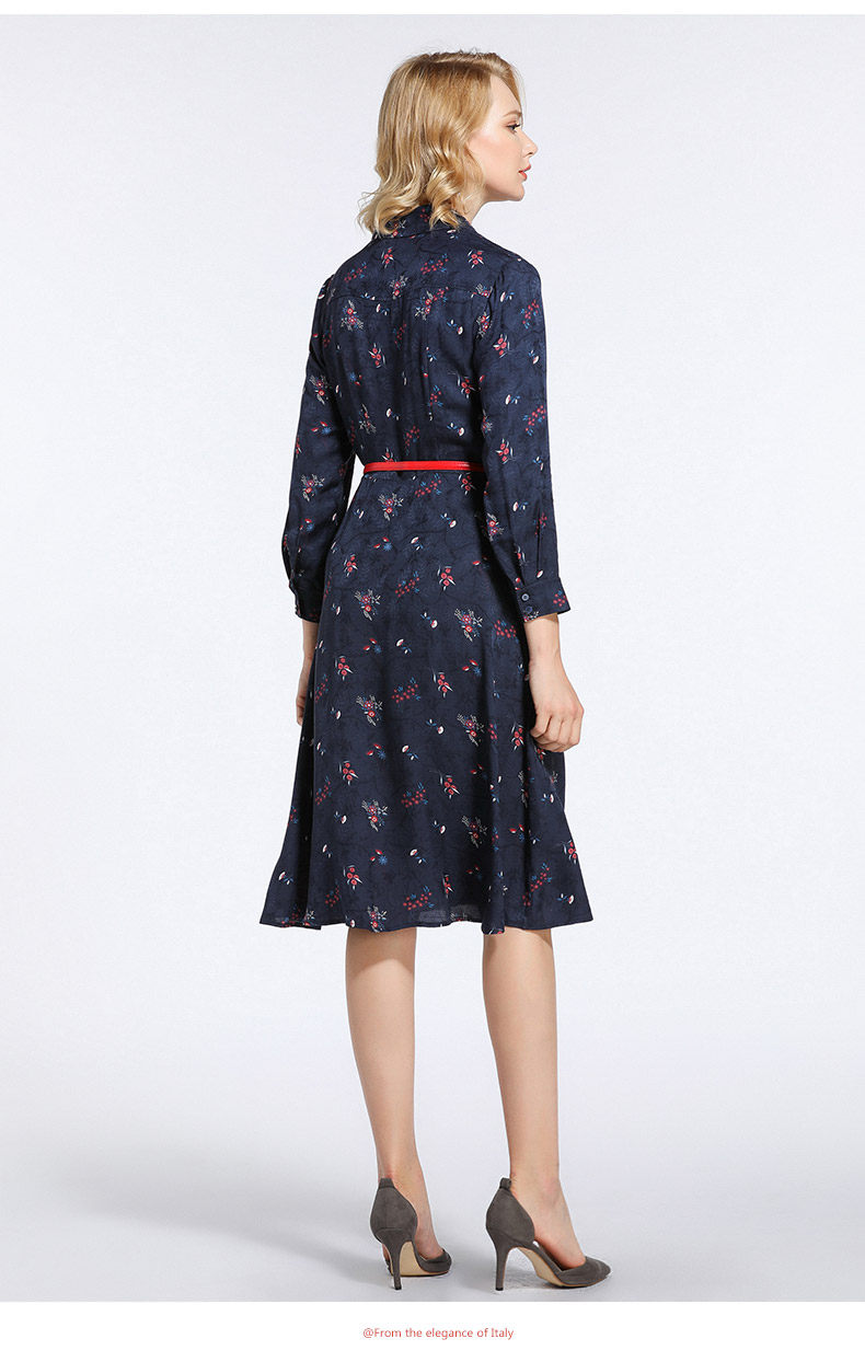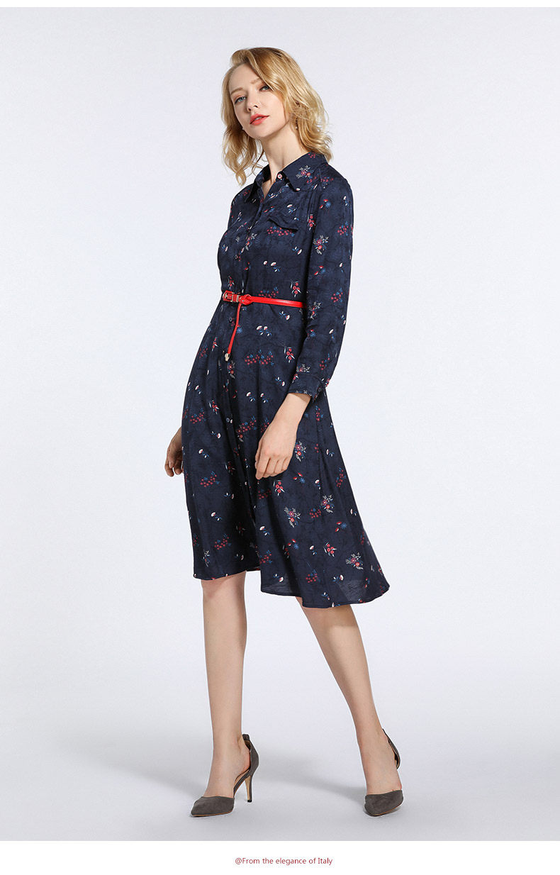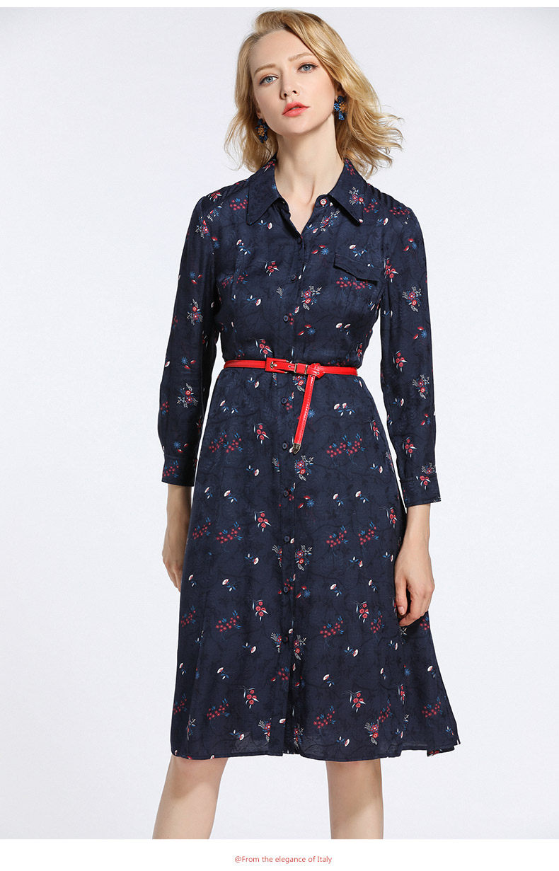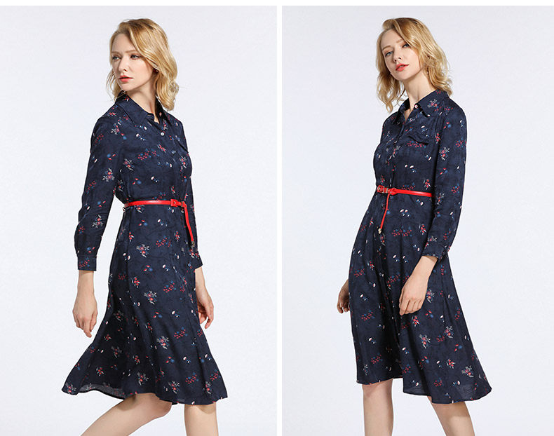 乔万尼春季长袖简约气质修身衬衫碎花连衣裙EB3E210
