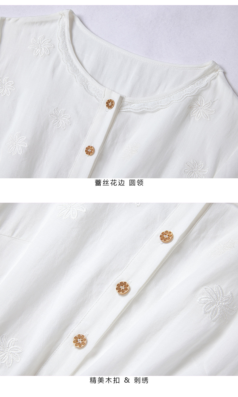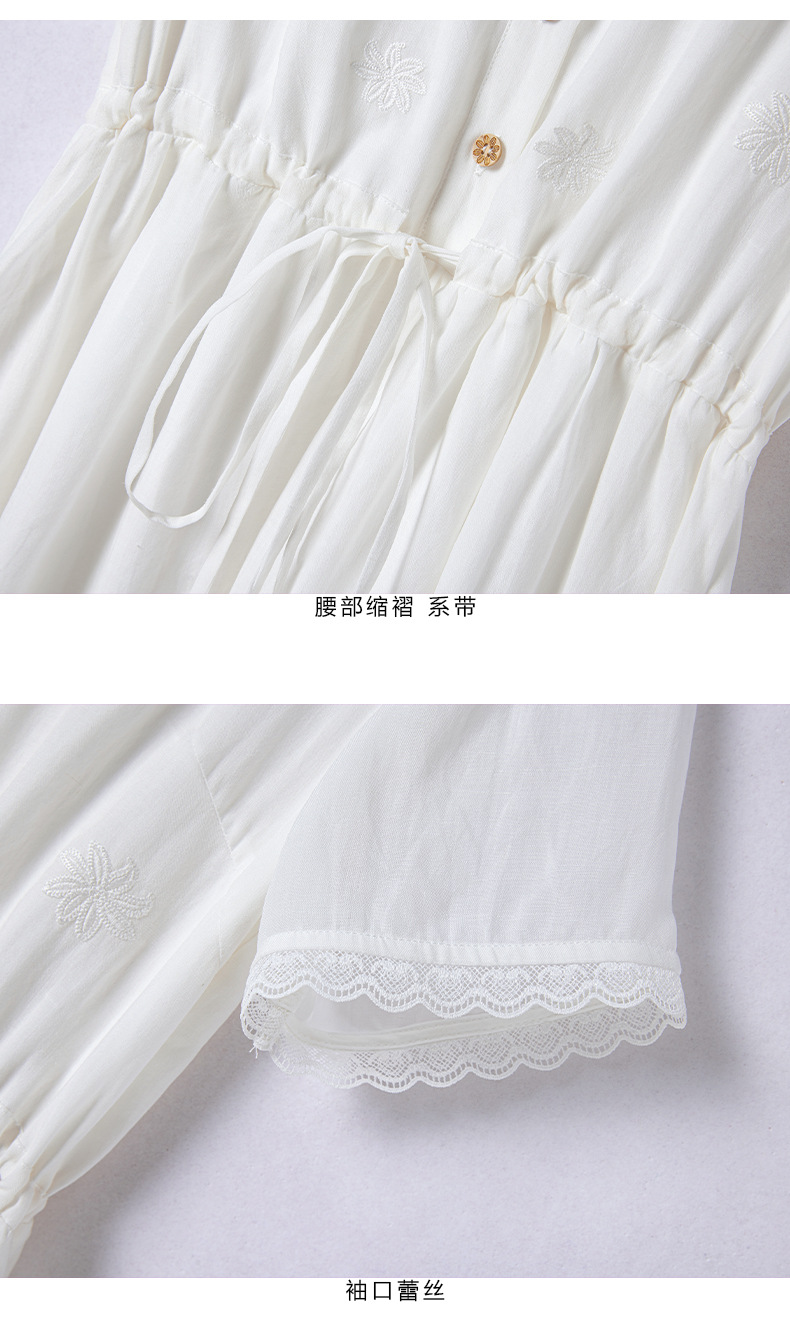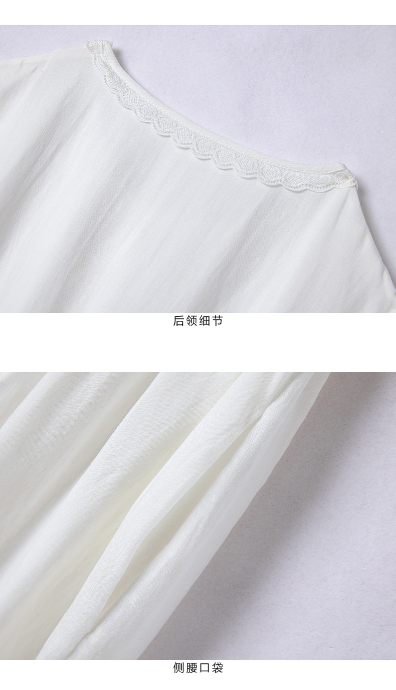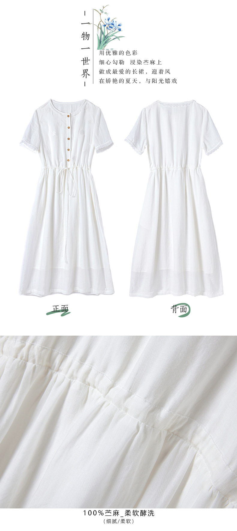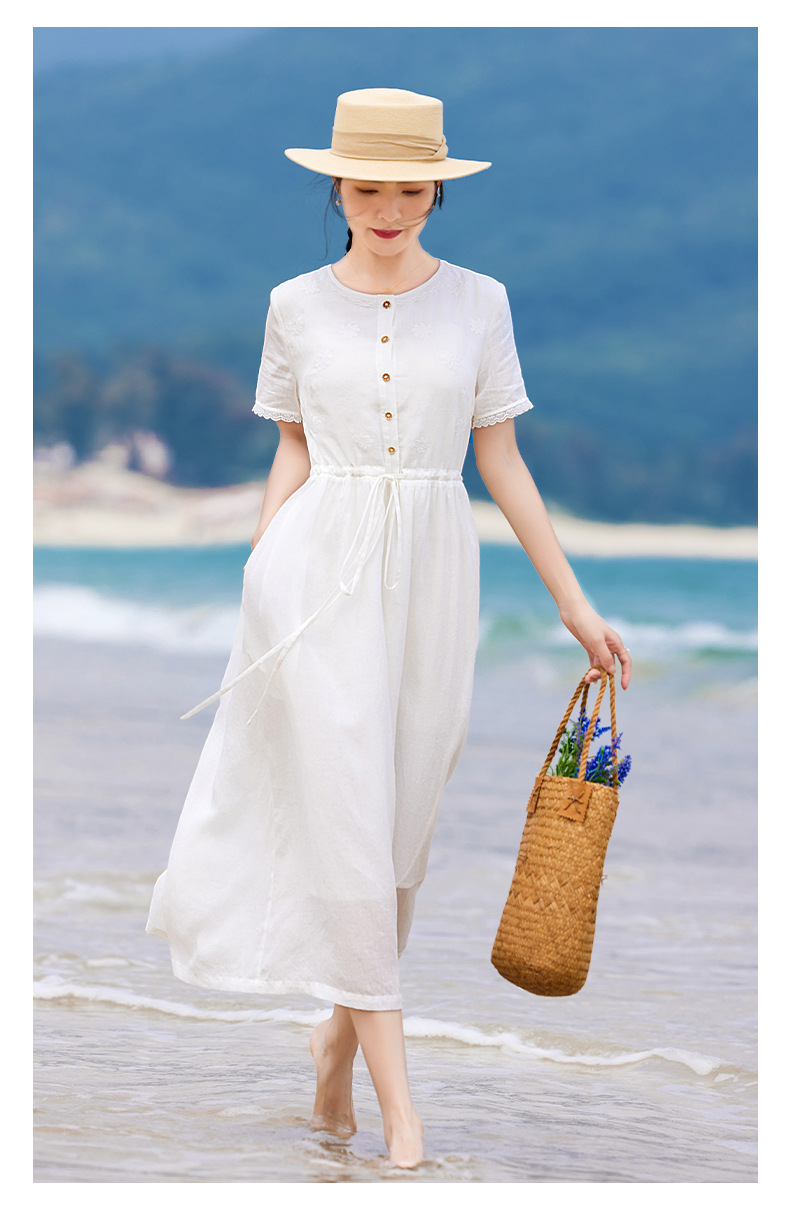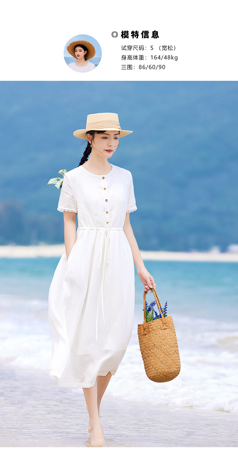 丁摩 白色苎麻法式减龄连衣裙文艺木耳花边短袖飘逸大摆裙