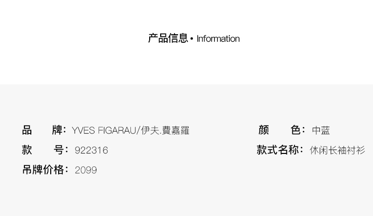 YvesFigarau伊夫·费嘉罗秋冬新款简约舒适保暖休闲长袖衬衫922316
