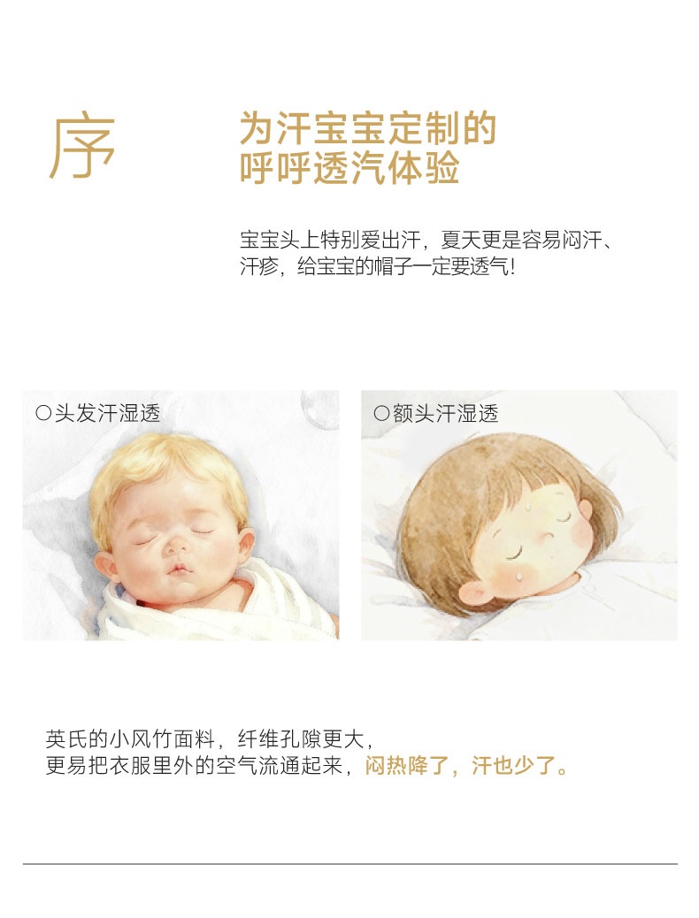 英氏【婴儿胎帽】2026新款新生儿贴面帽透气亲肤婴儿帽子