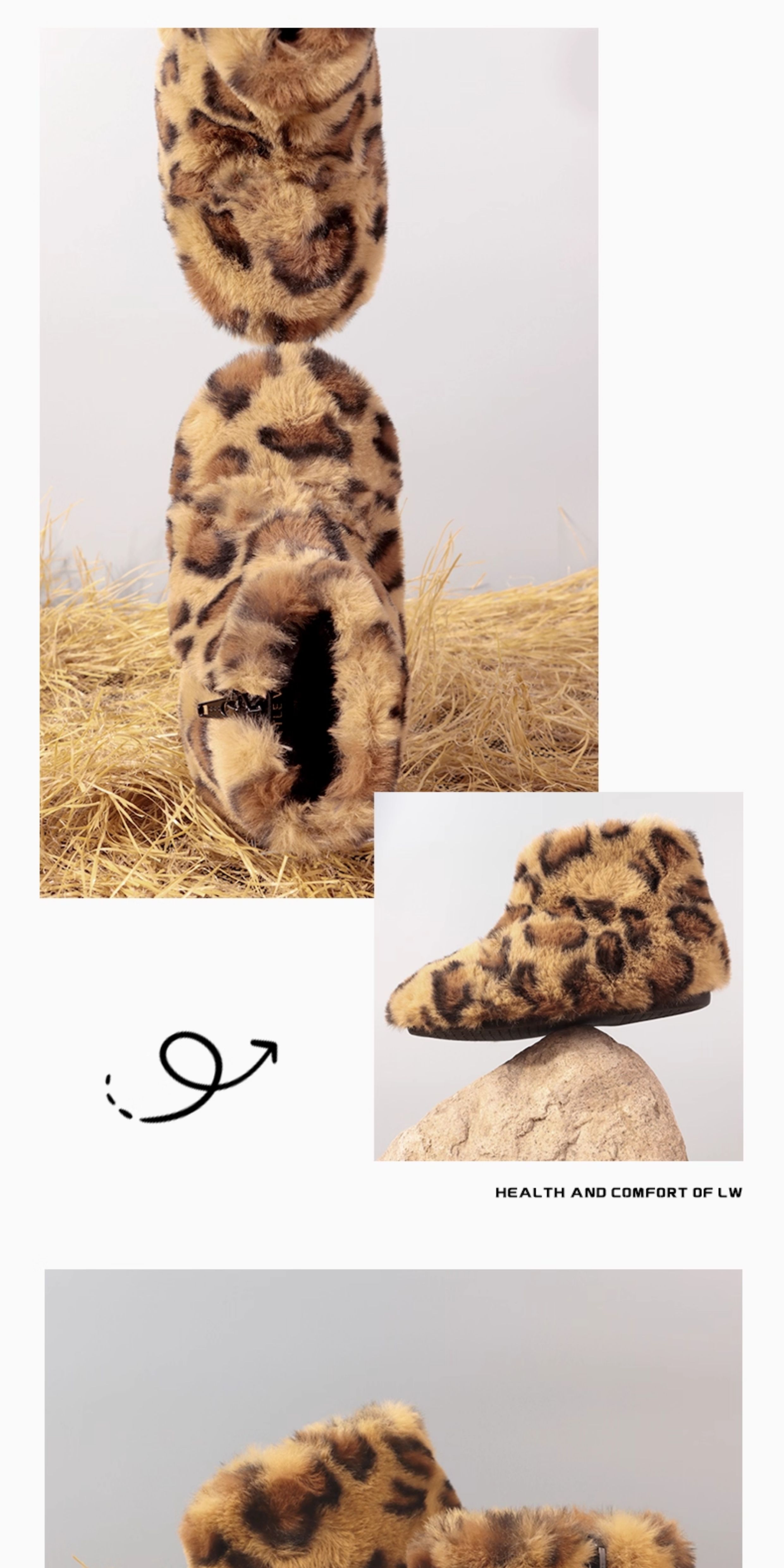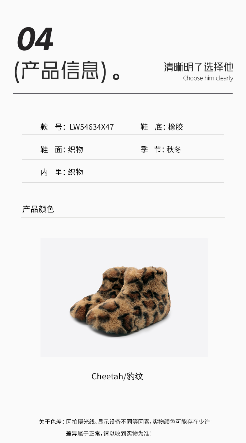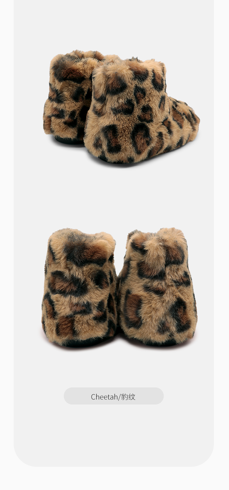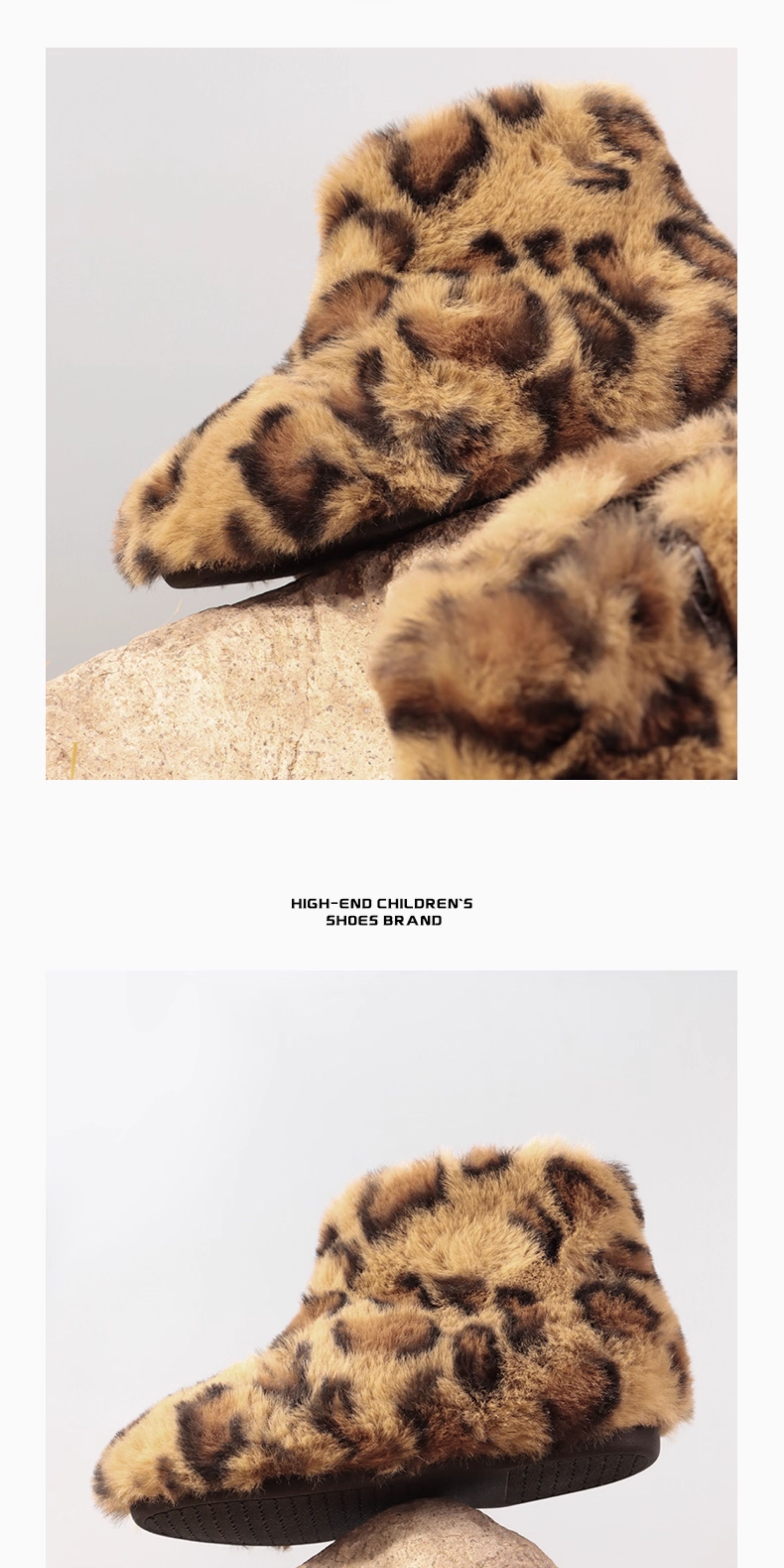 西班牙Littlewinkaa童鞋冬季新款萌趣豹纹垂耳兔毛绒儿童短靴加绒保暖靴