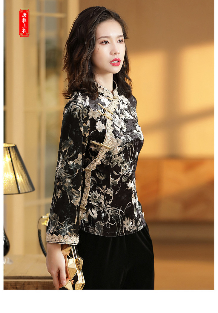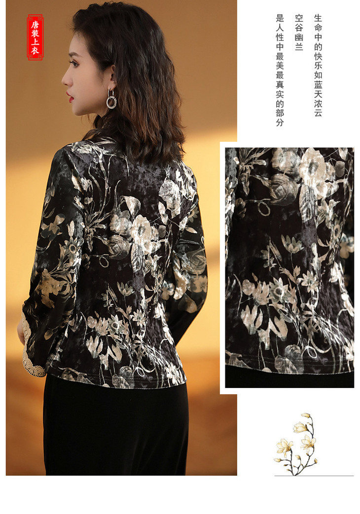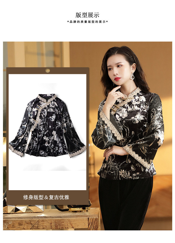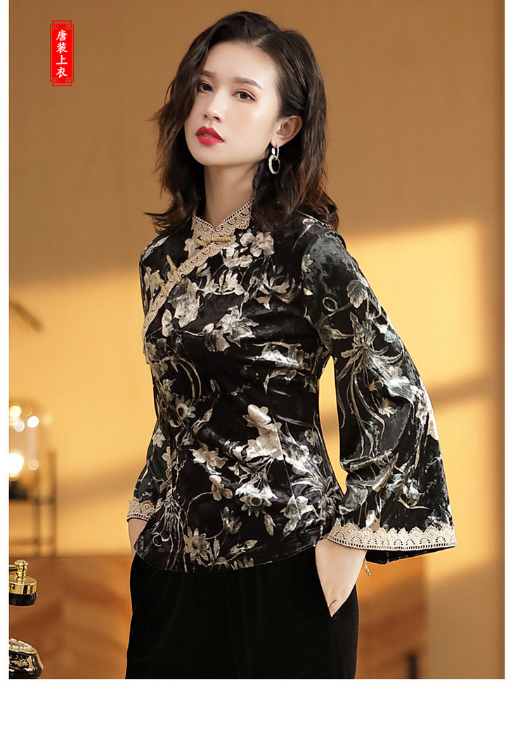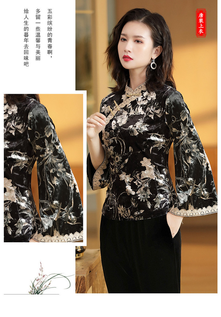 QF-190926 古风女装夏中式上衣女夏唐装女夏民国女装中国风金丝绒旗袍上衣