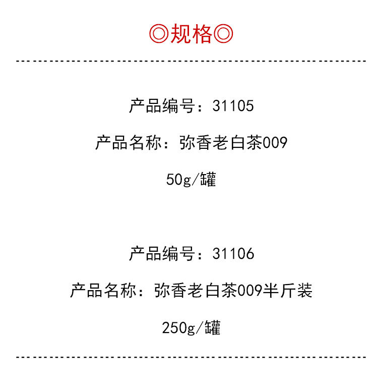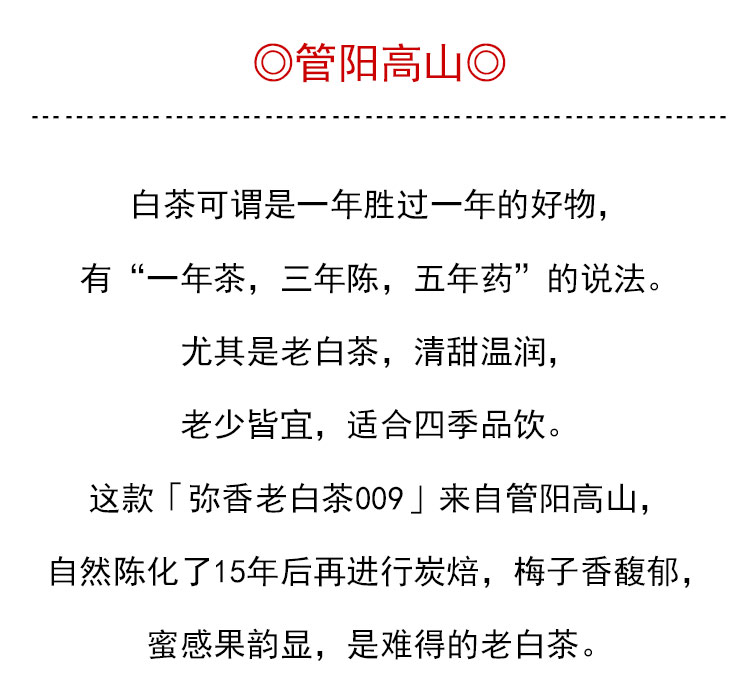 茶香记 弥香老白茶009 福鼎白茶 老寿眉 炭焙茶 梅子蜜香 柔润