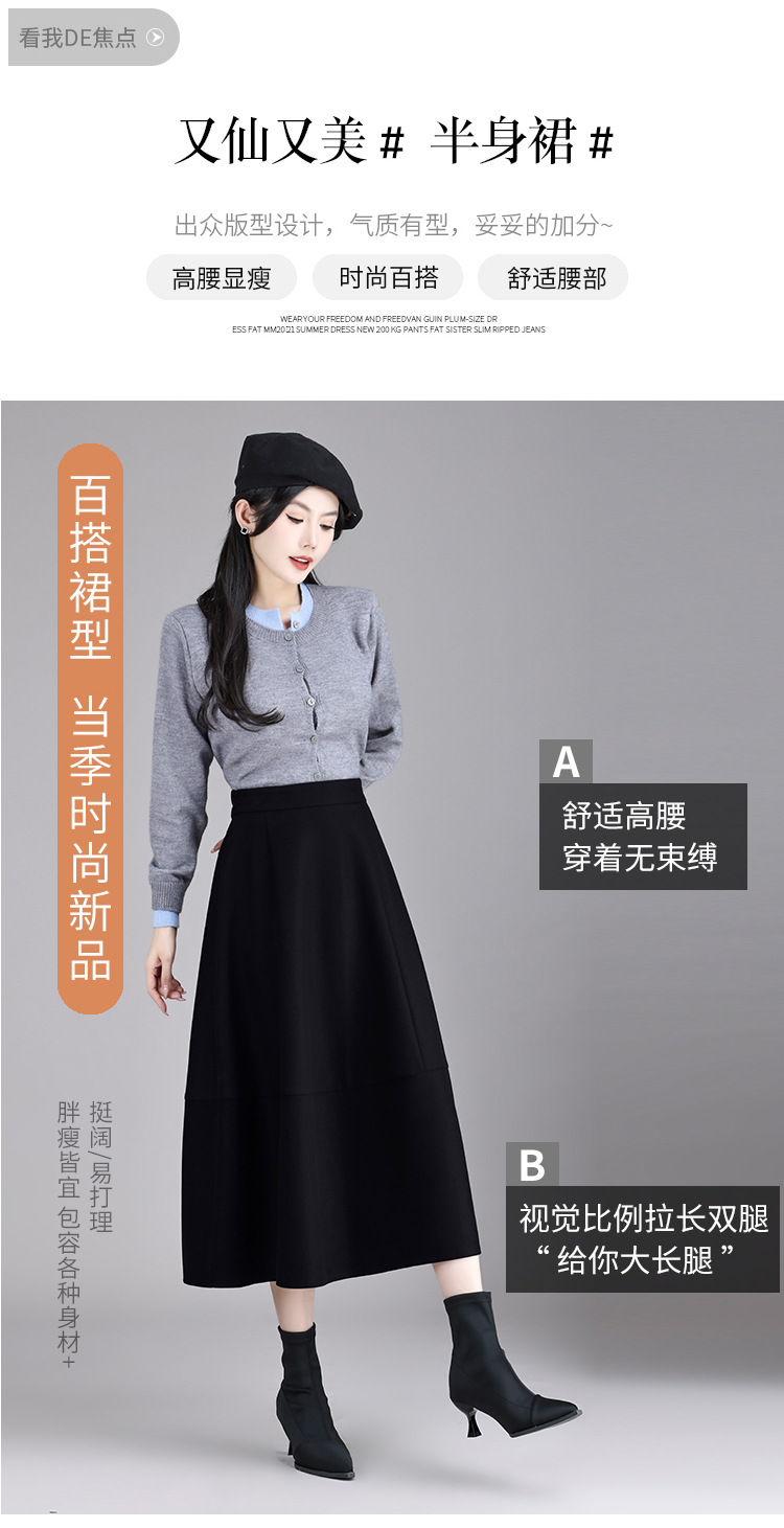 QYM 66921-Y毛呢半身裙厚款高腰A字裙 商品图3