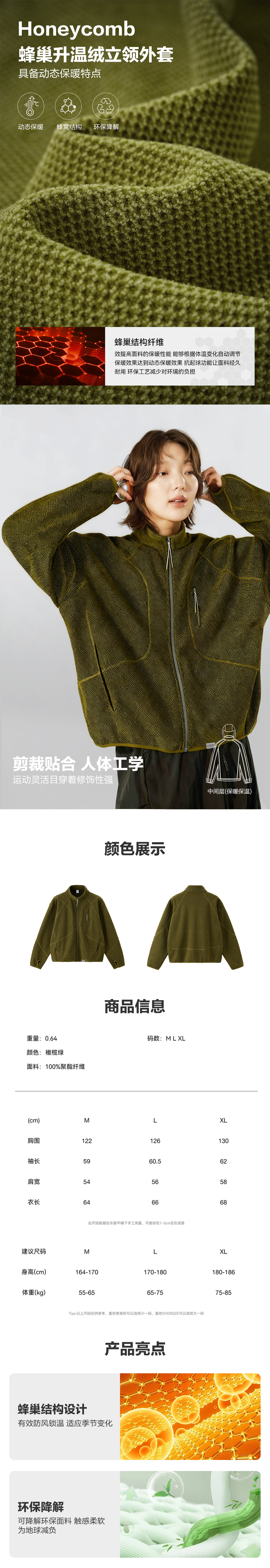 蜂窝升温立领外套