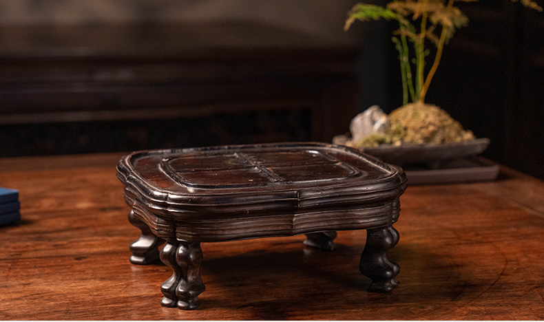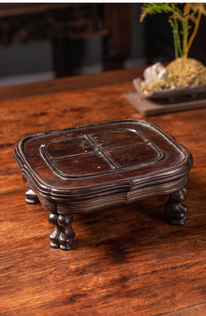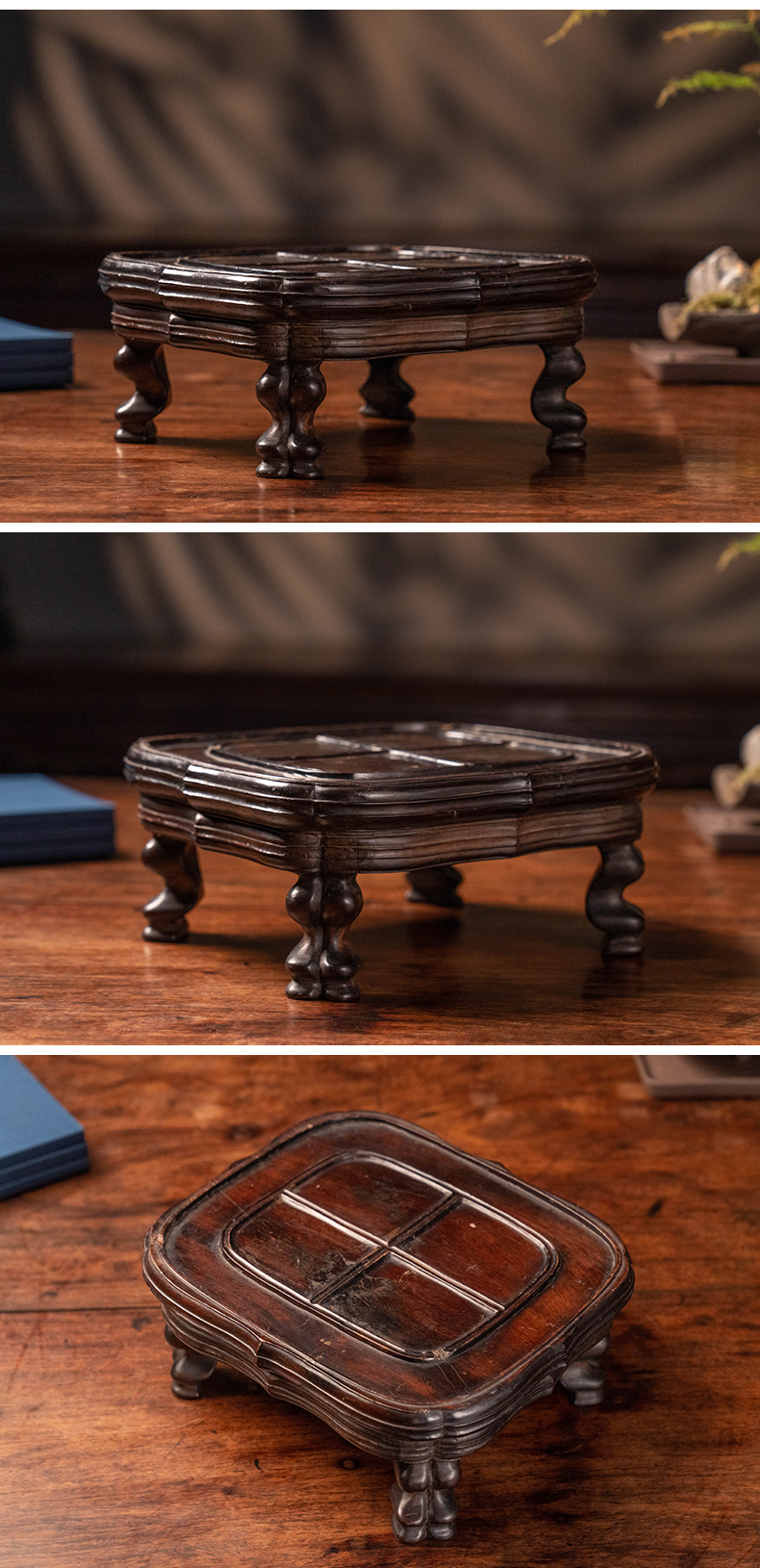 清 红木嵌瘿木百衲镶六角锦地画桌