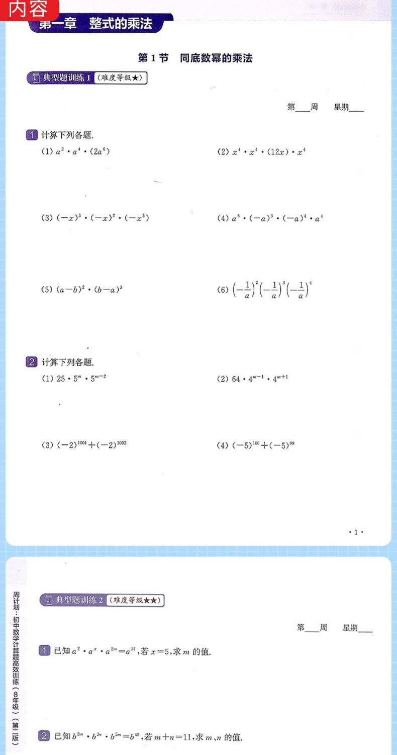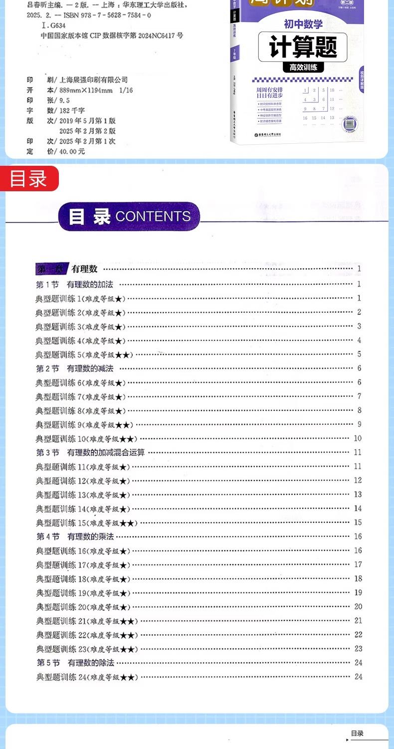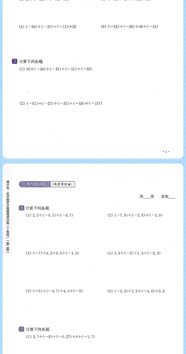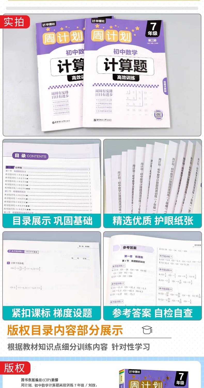 周计划初中数学计算题高效训练7年级8年级第二版赠视频讲解