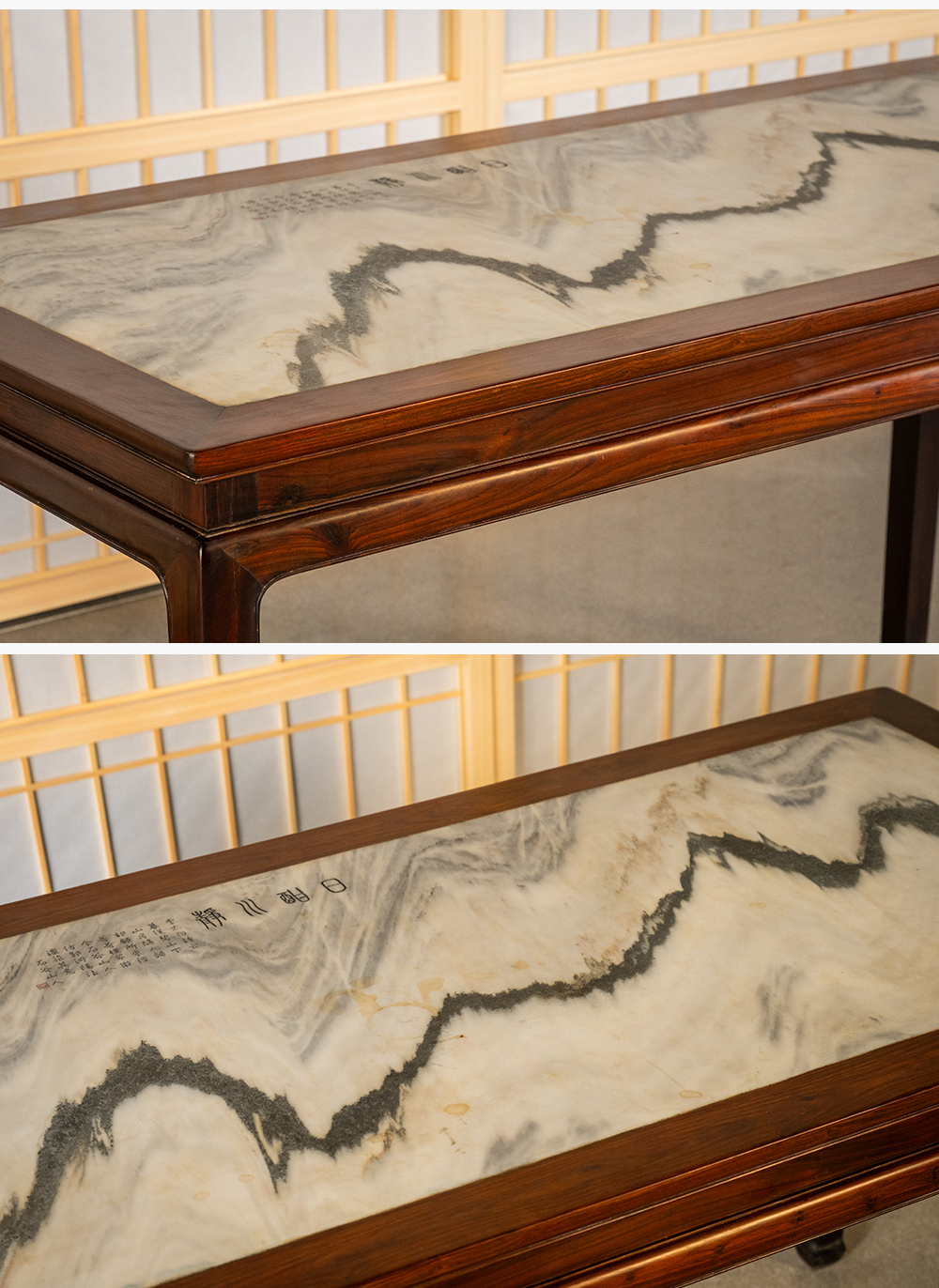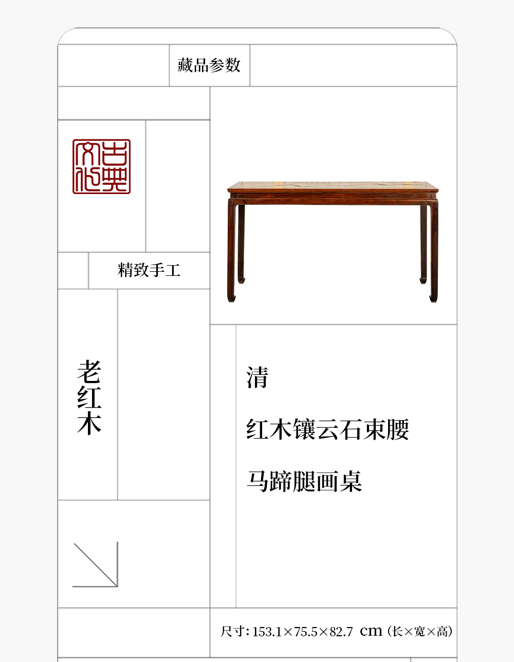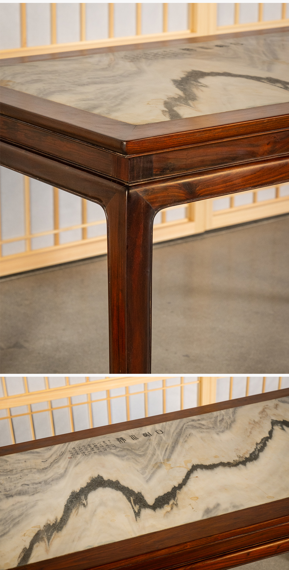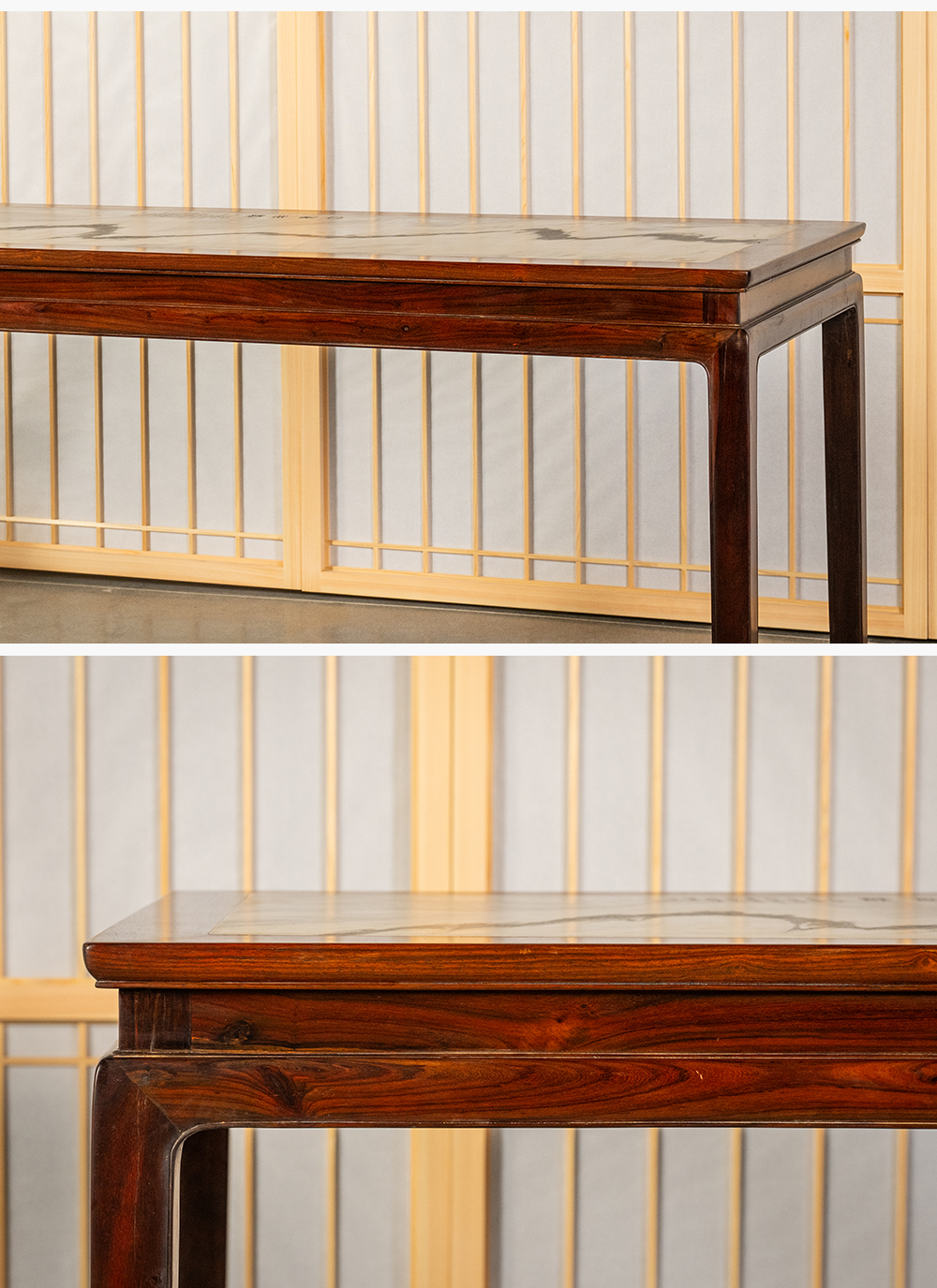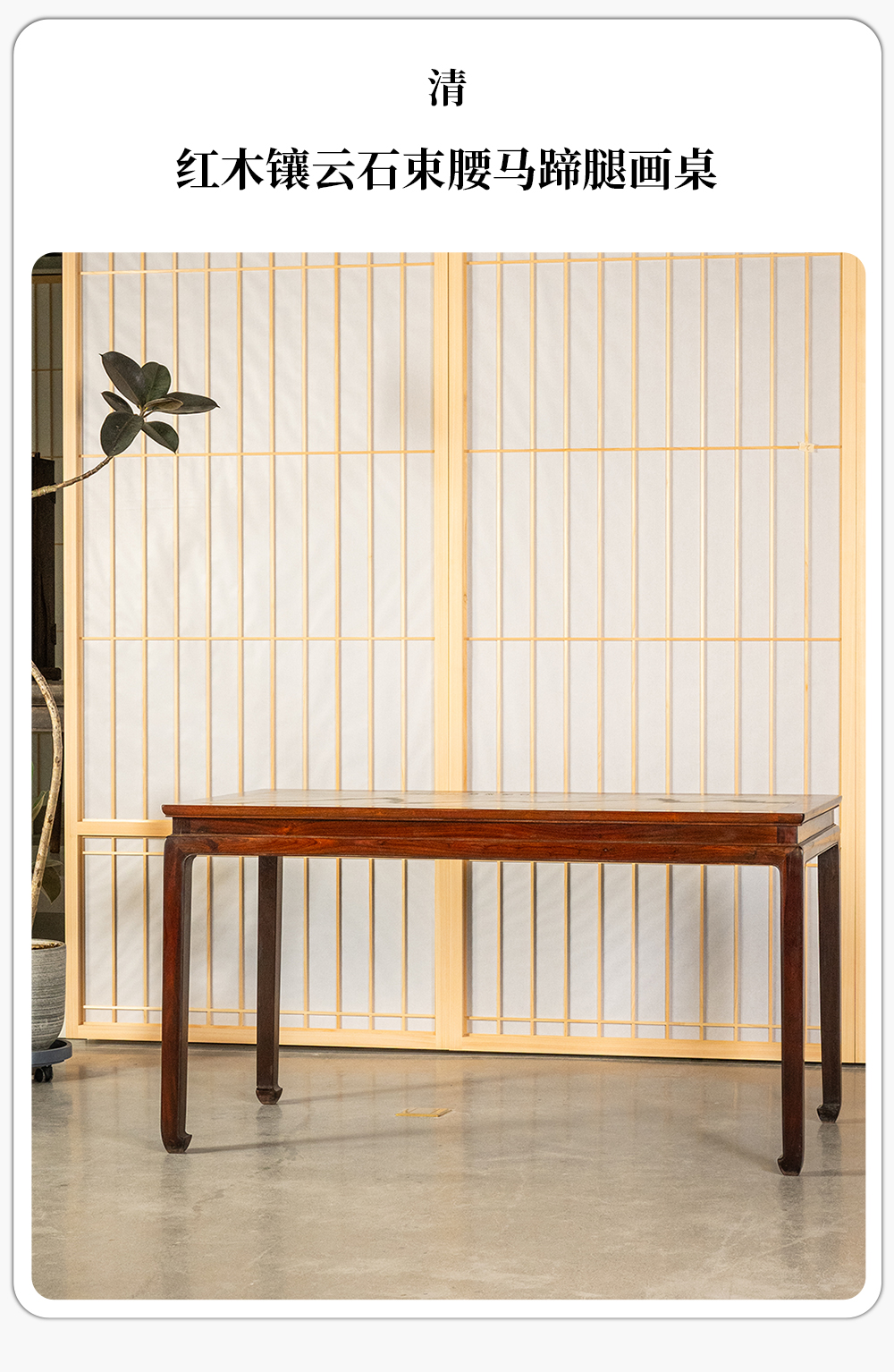 清 红木镶云石束腰马蹄腿画桌