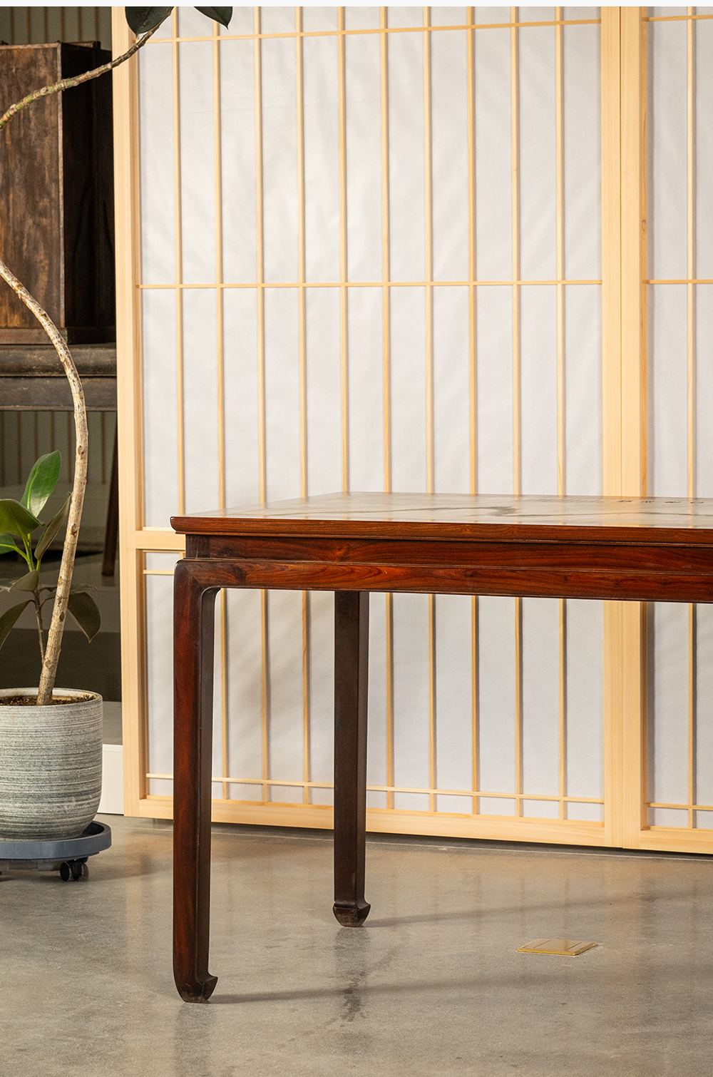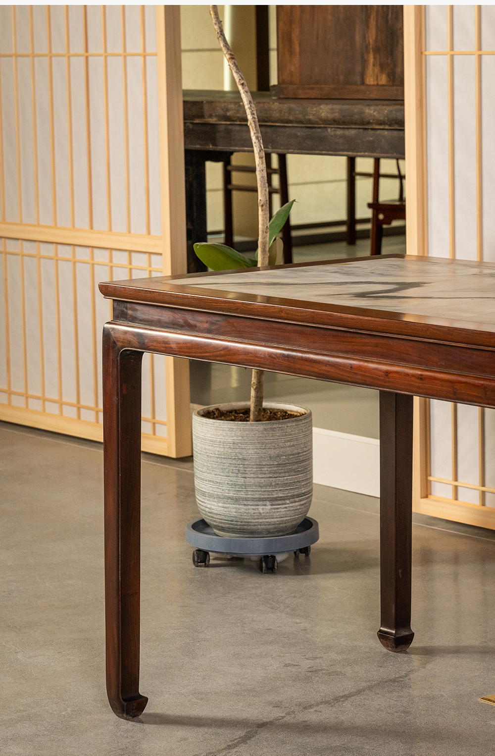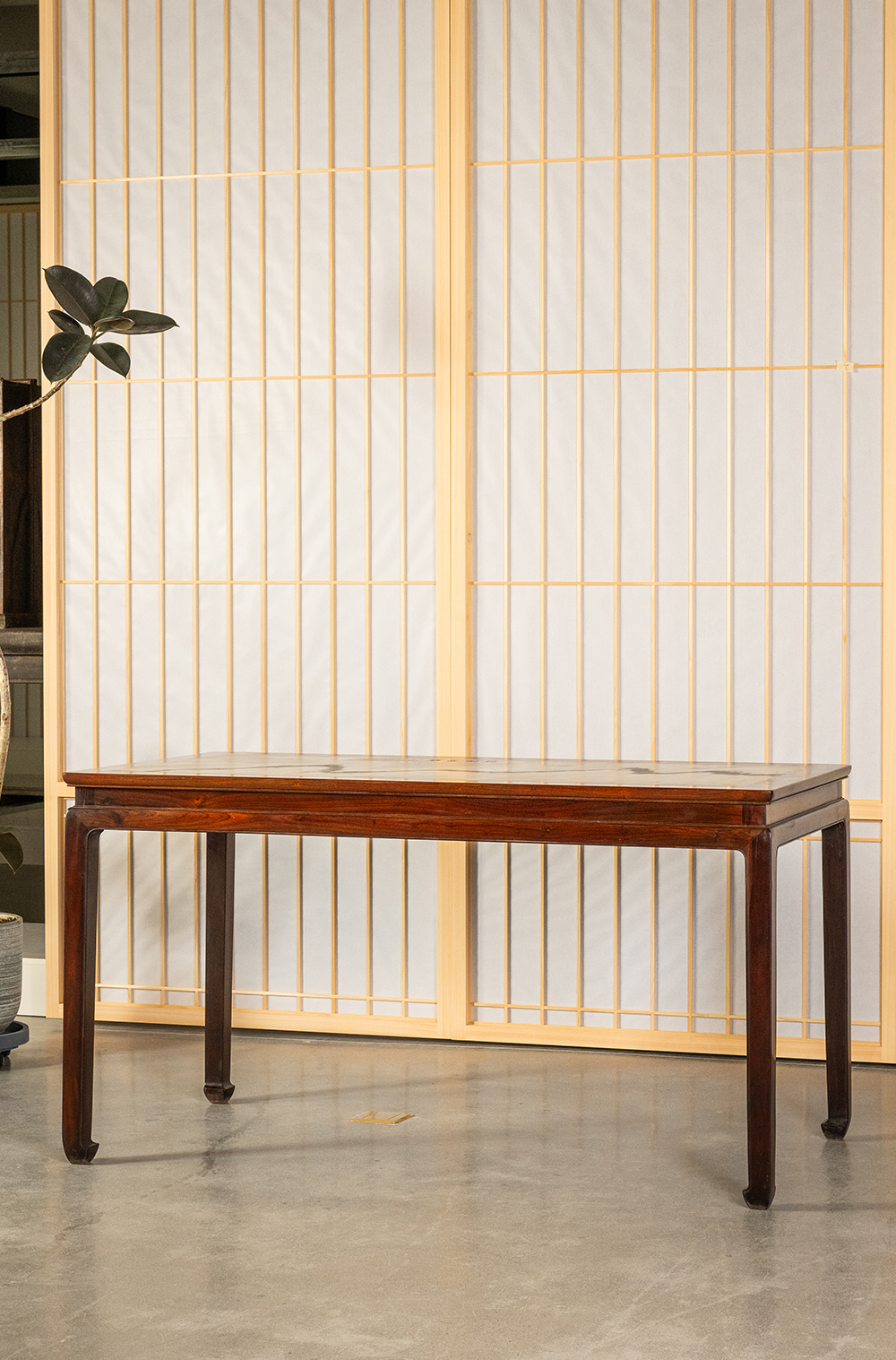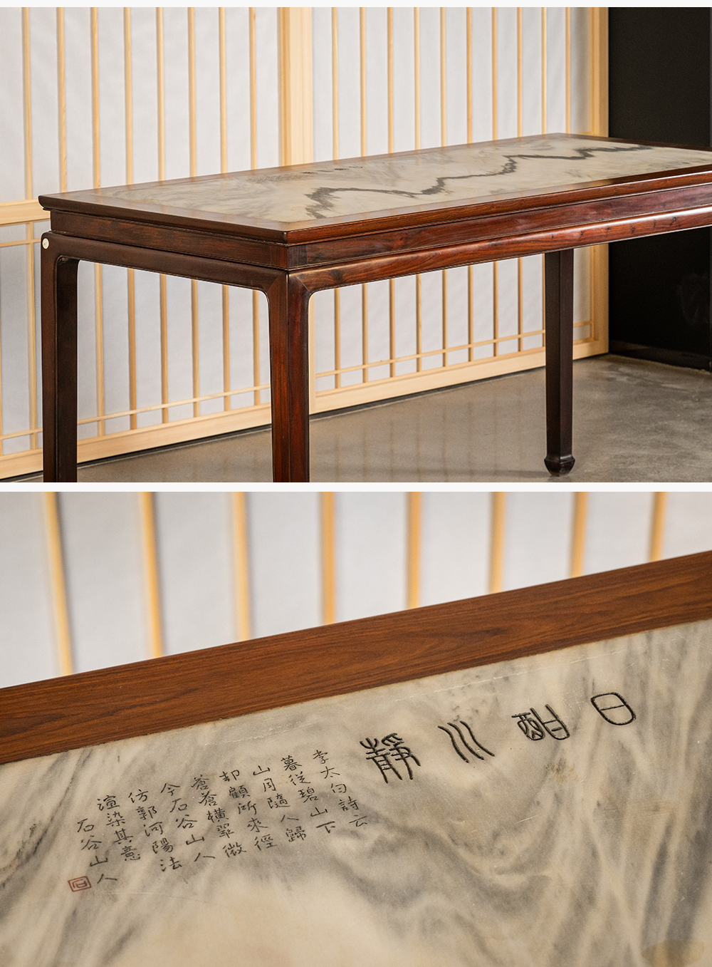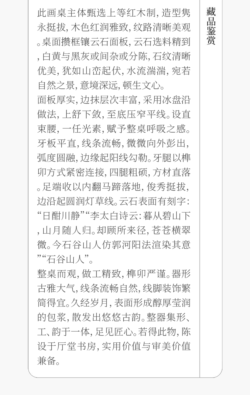 清 红木镶云石束腰马蹄腿画桌