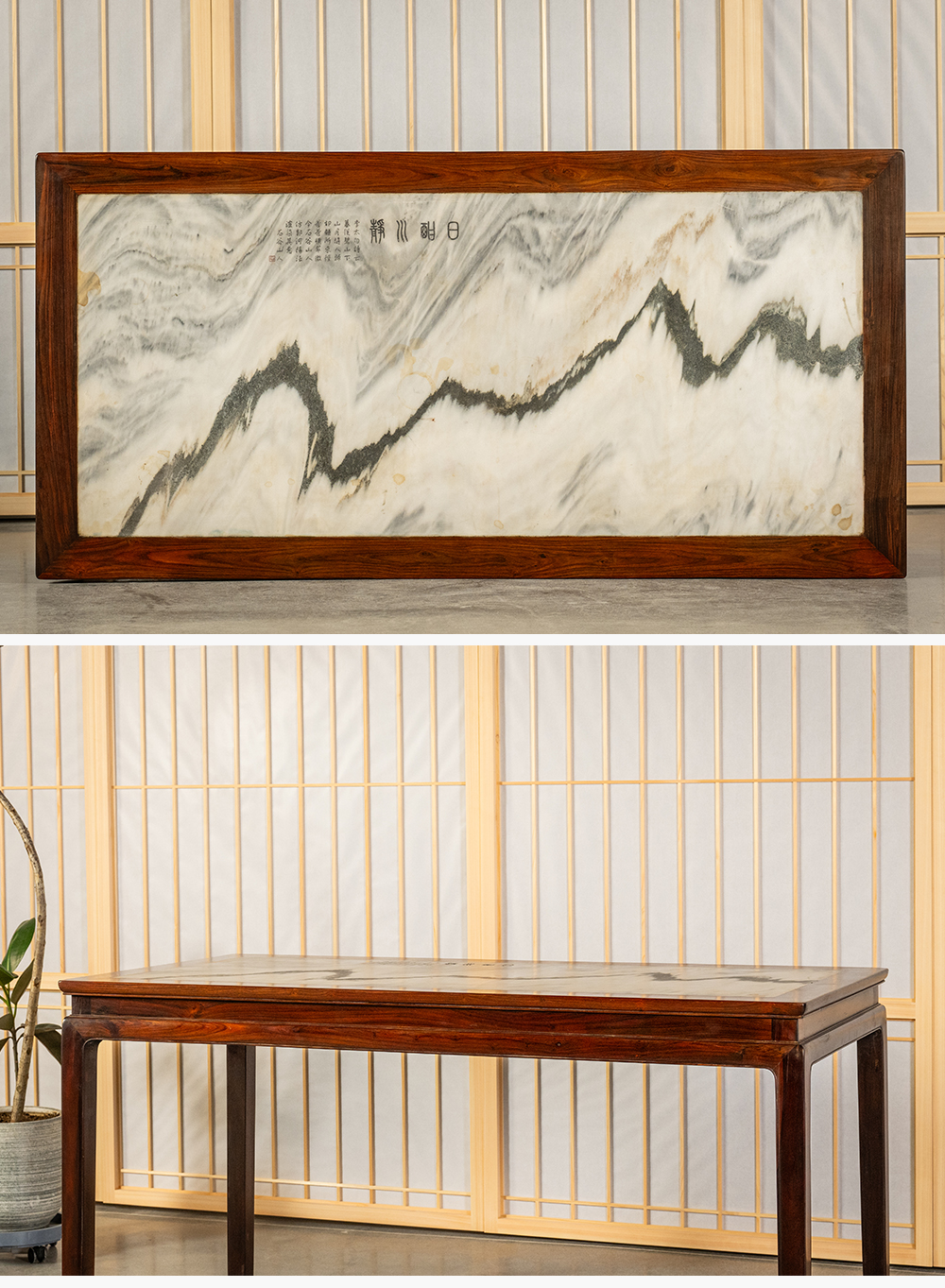 清 红木嵌螺钿镶云石大案屏