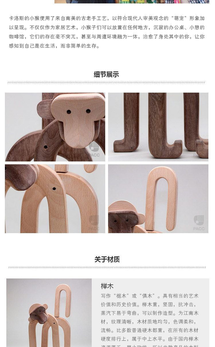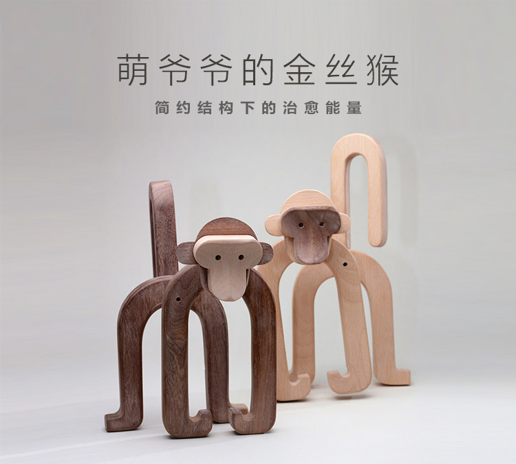 卡洛斯猴子艺术创意木制玩具摆件软装陈列办公室家居桌面工艺品