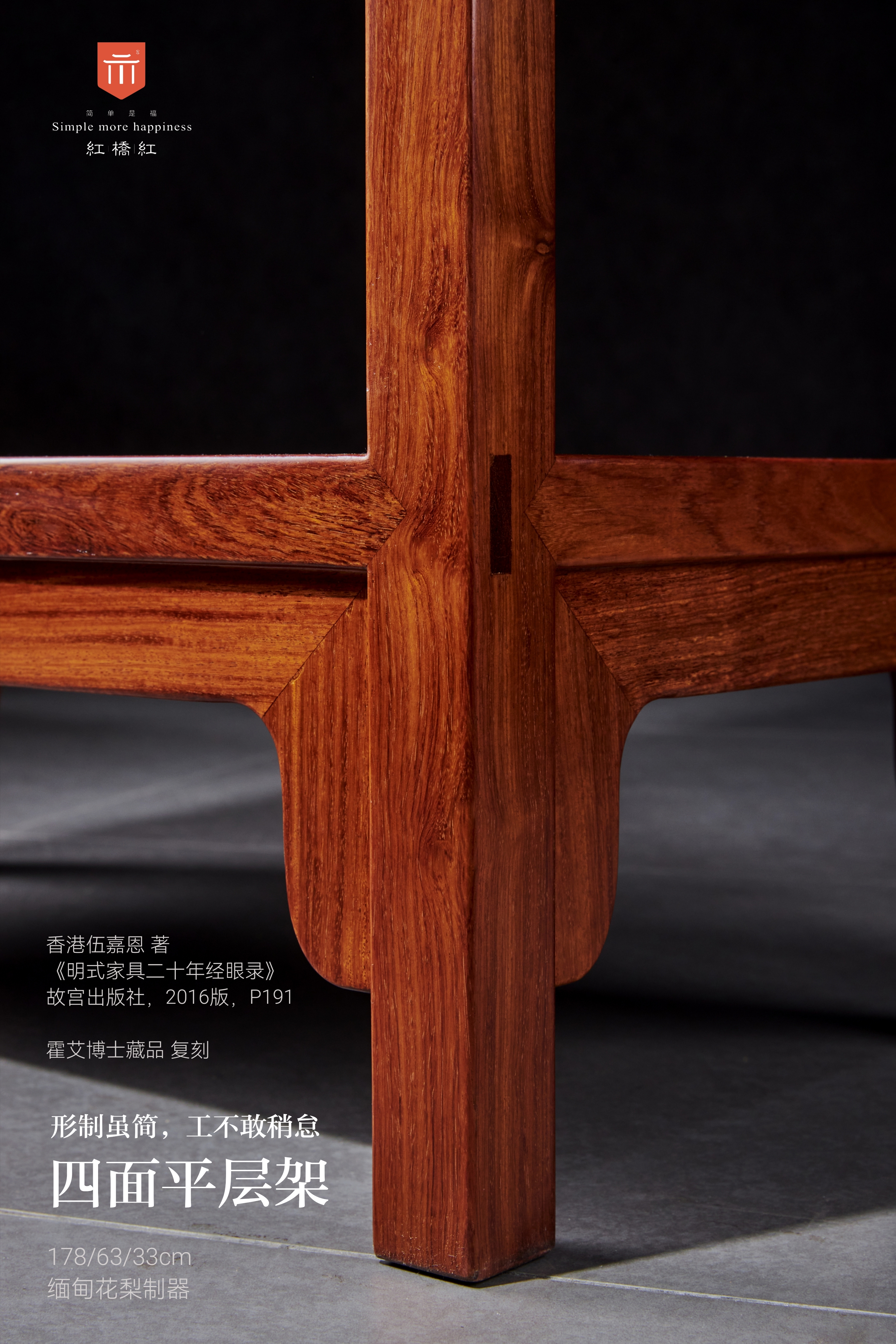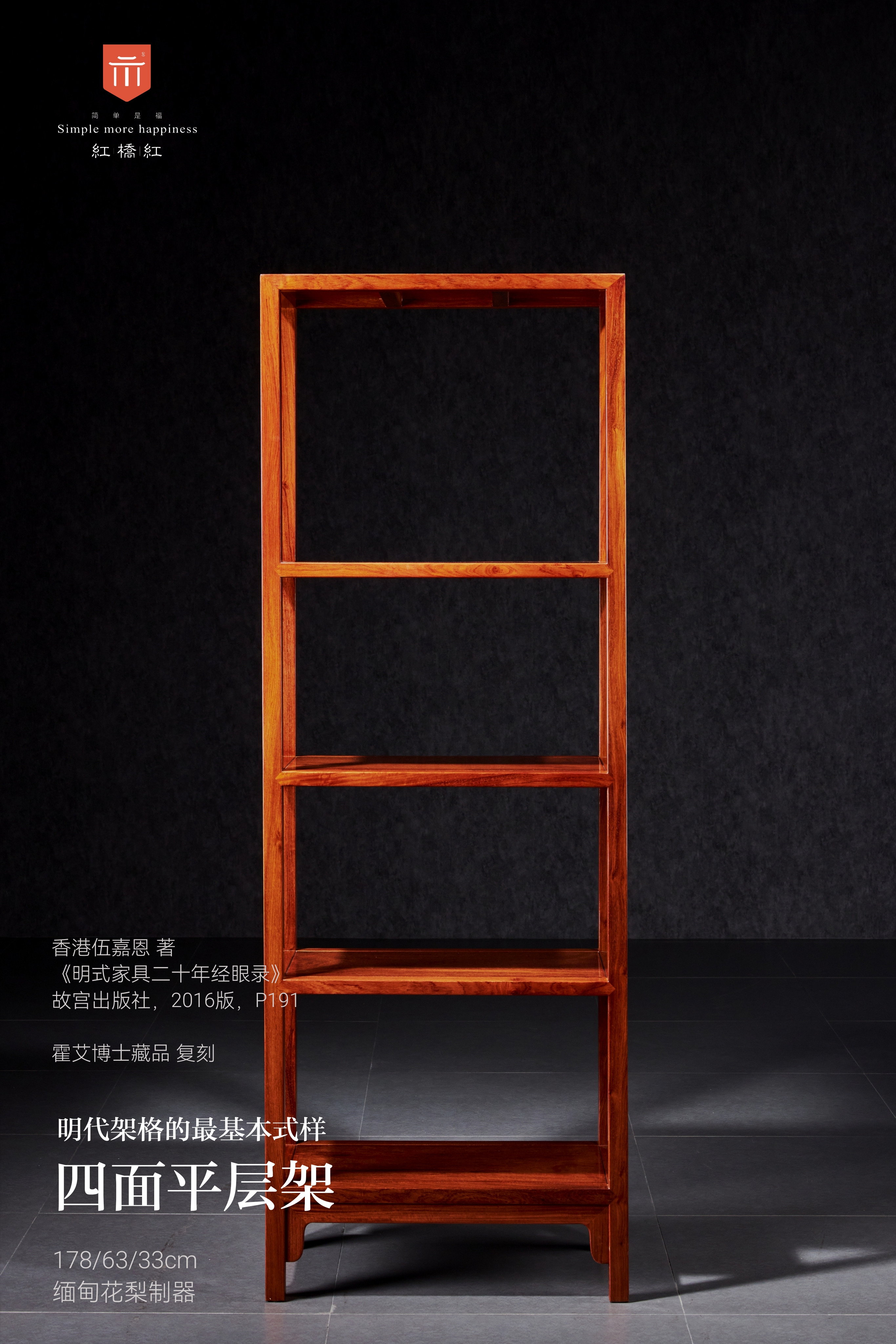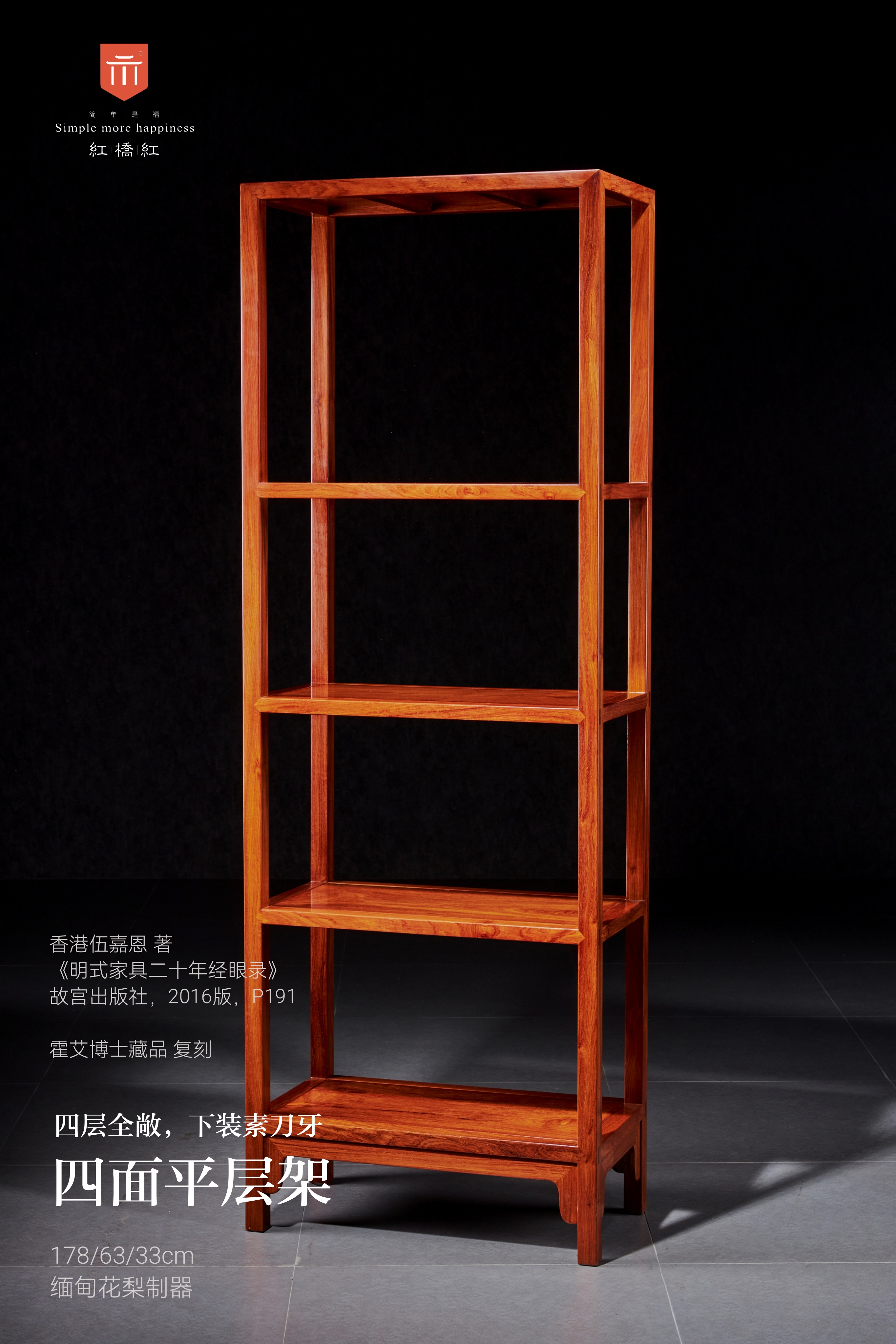 此款四面平层架原型来自意大利霍艾博士旧藏,收录于伍嘉恩的《明式家具二十年经眼录》。
