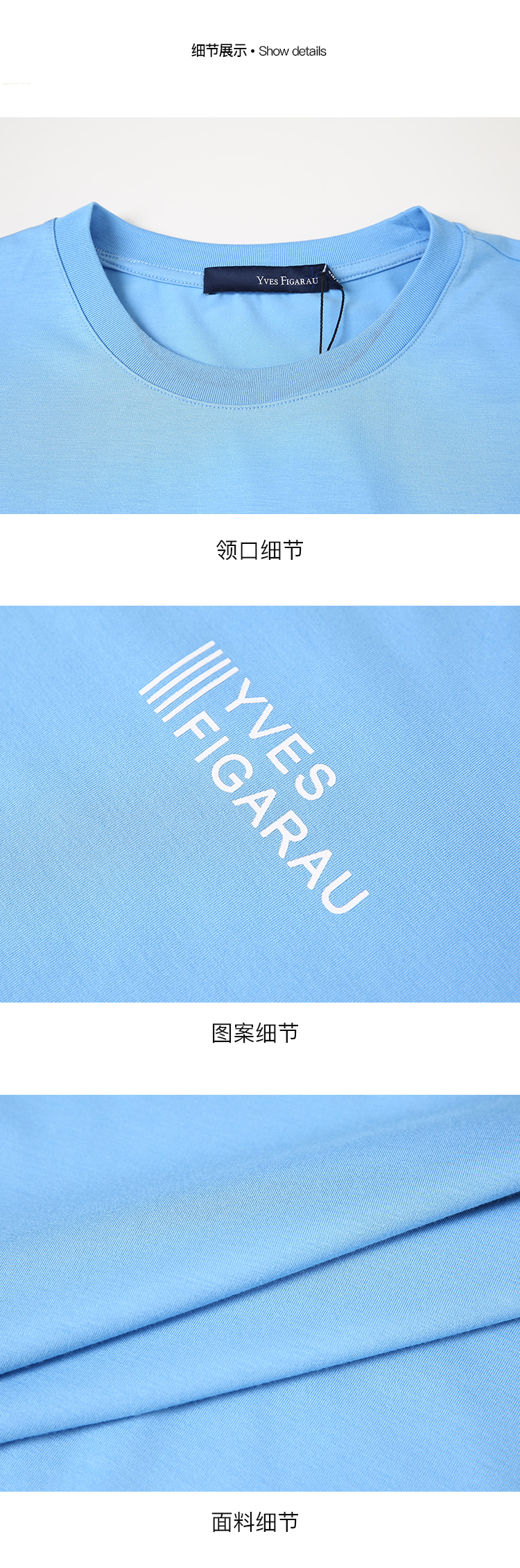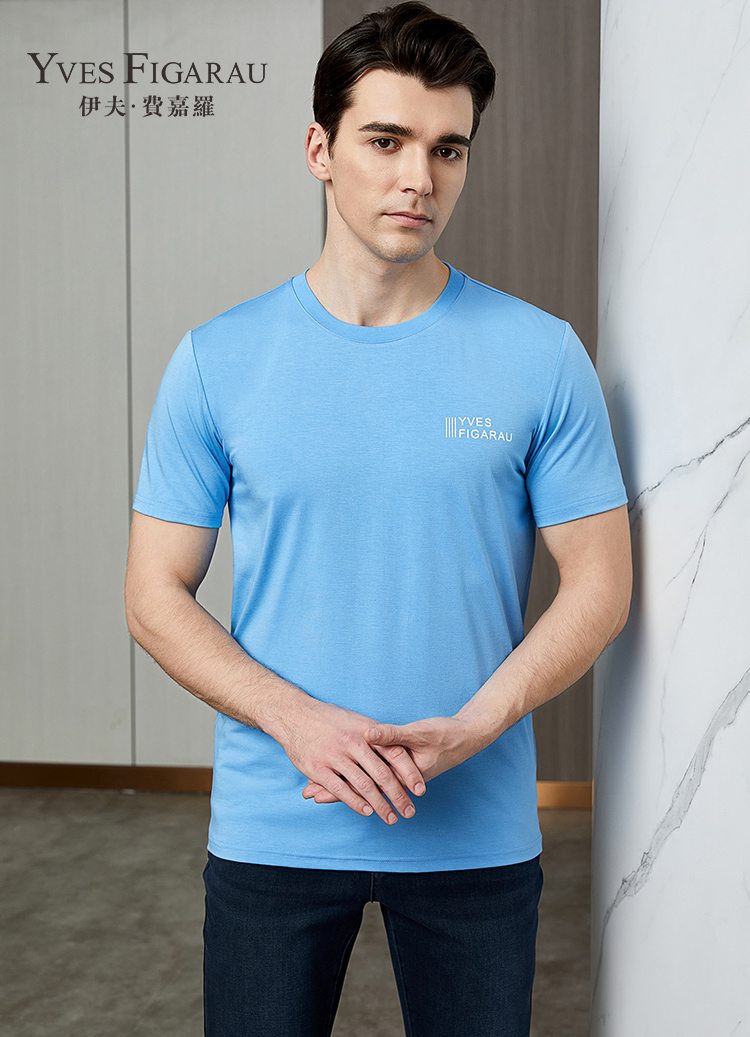 YvesFigarau伊夫·费嘉罗新款夏季男士简约印花舒适透气休闲圆领短袖T恤936855