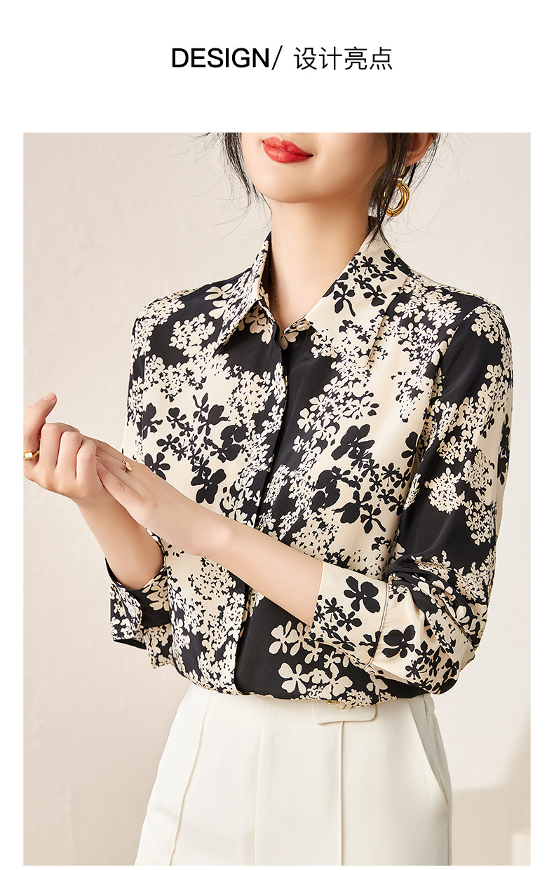 法式气质,秋季通勤干练遮肉显瘦碎花真丝衬衣上衣WLZD-2320107