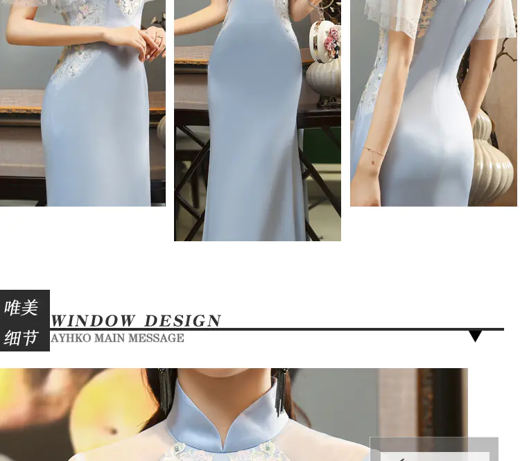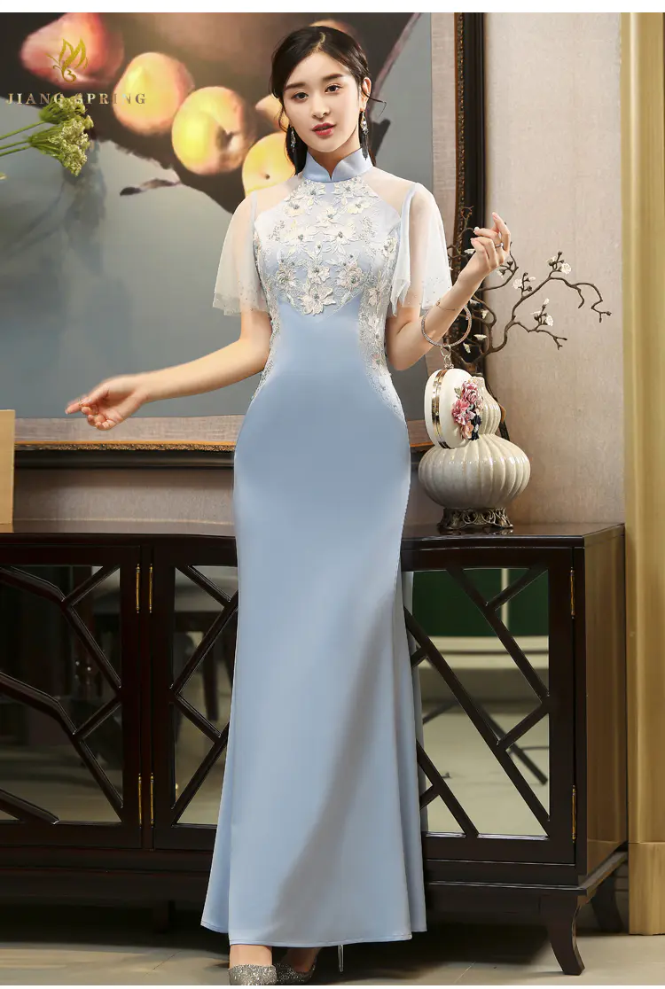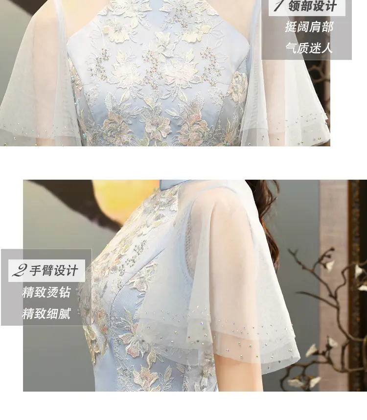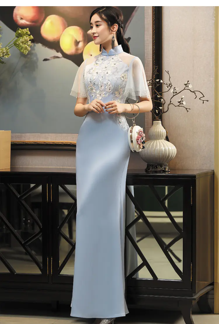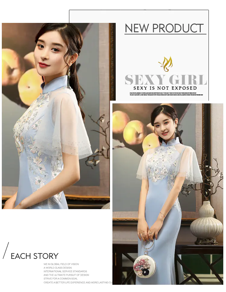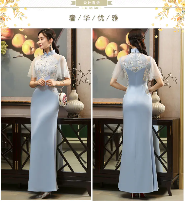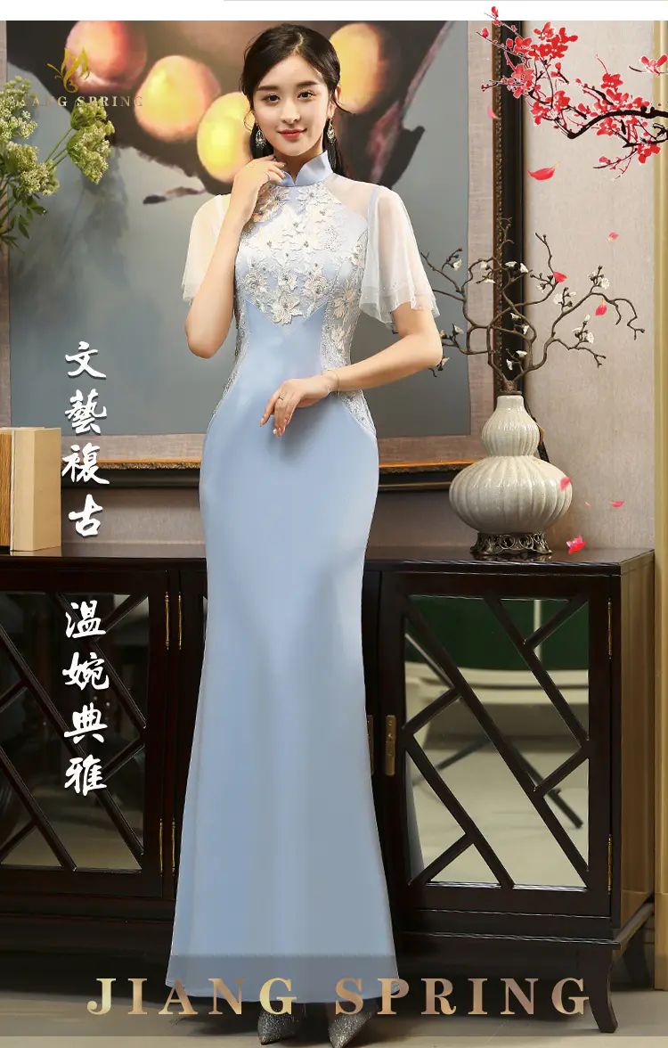 MB-天山雪莲优雅修身,优雅长款钉珠改良版旗袍礼服