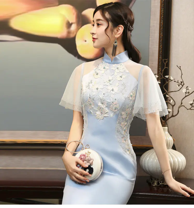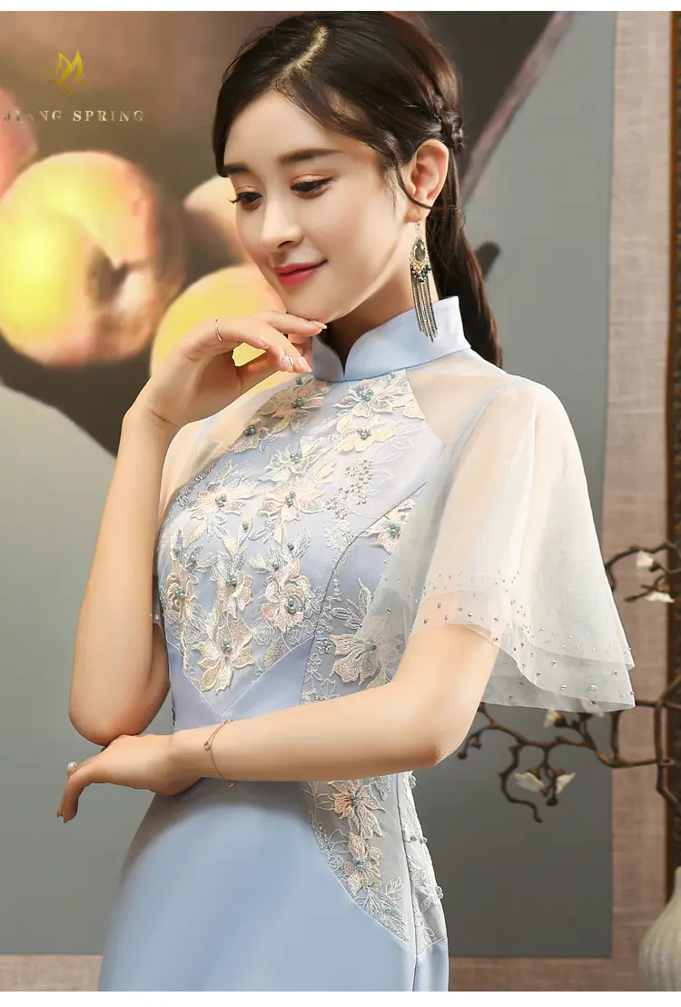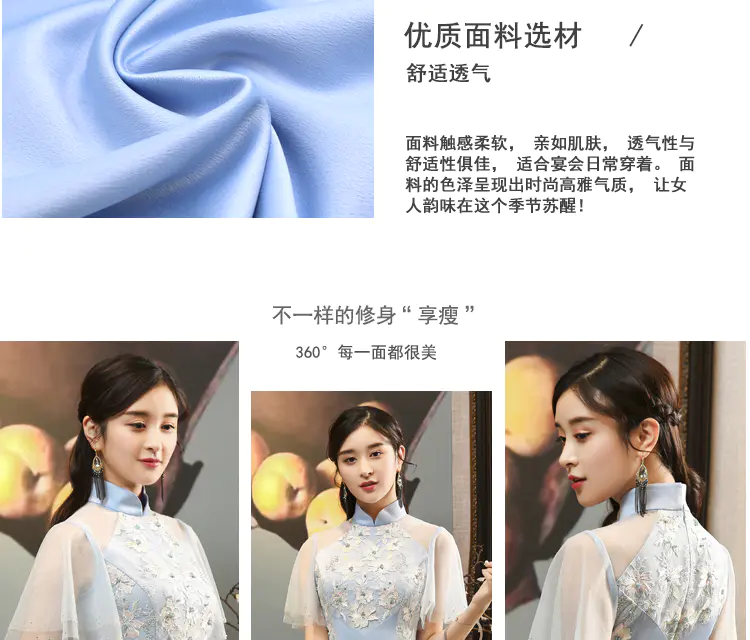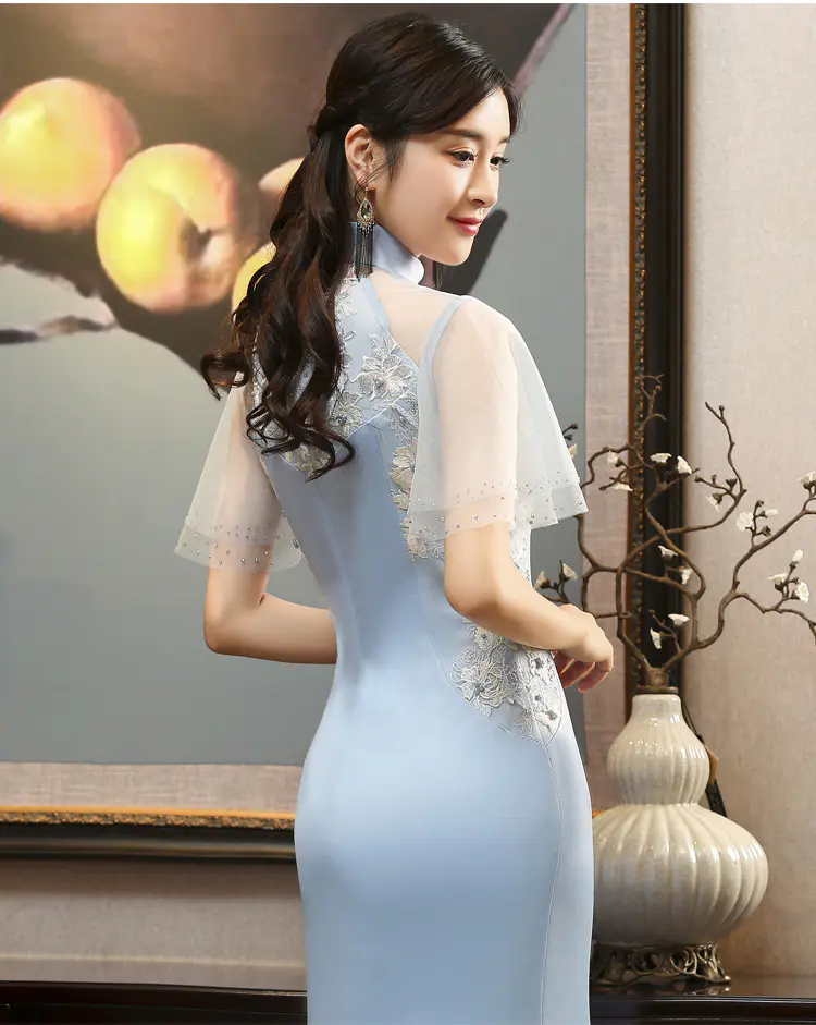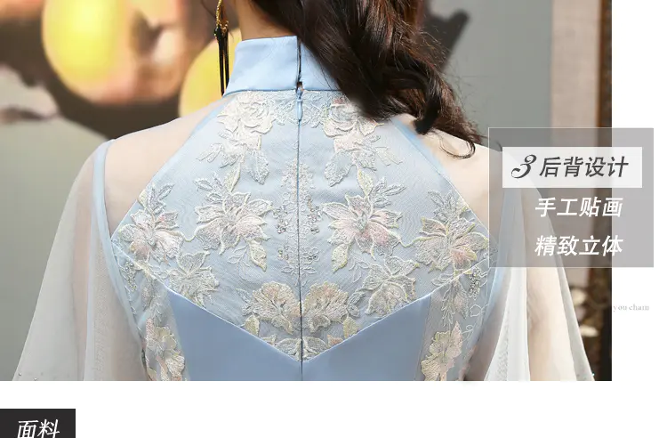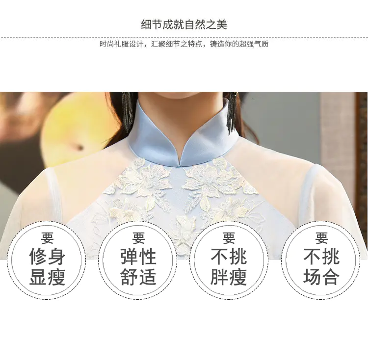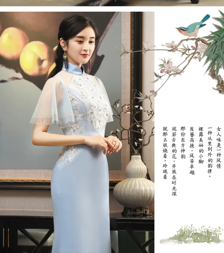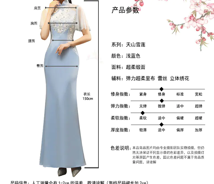 MB-天山雪莲优雅修身,优雅长款钉珠改良版旗袍礼服