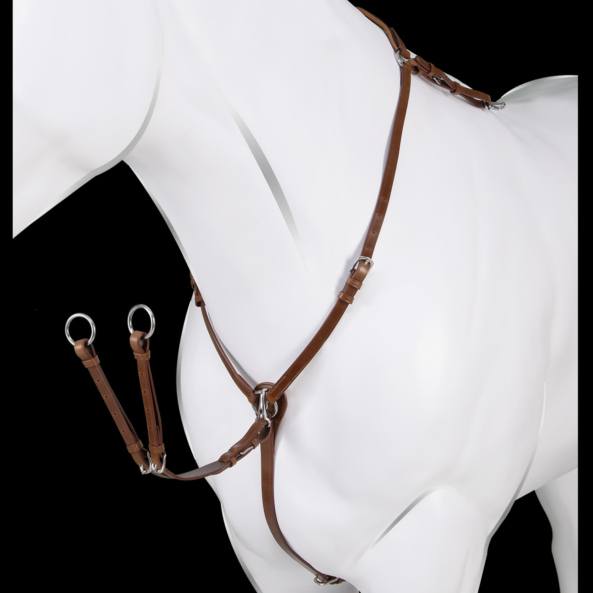 材质:采用顶级纯皮材质,触感柔软且耐磨,具有良好的透气性和吸湿性,确保长时间佩戴的舒适度。纯皮材质还赋予胸带优雅的外观和质感,符合马术运动的优雅气质。