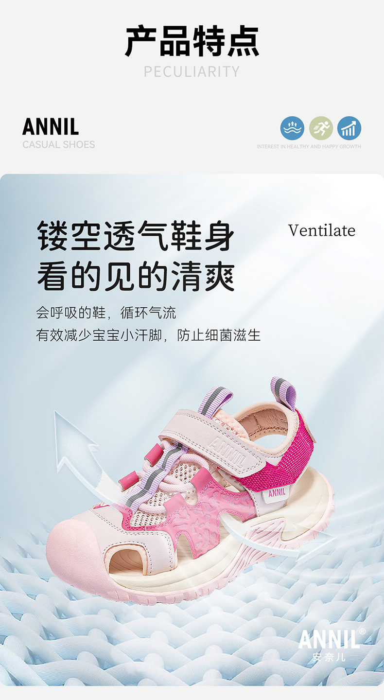ANNIL/安奈儿软底男女童包头沙滩运动鞋2025夏季新款HM5206306