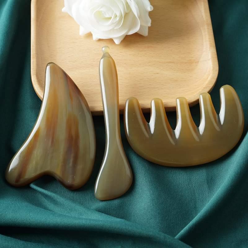 白牦牛角梳子五齿经络梳刮痧板面部美容眼部拔筋棒