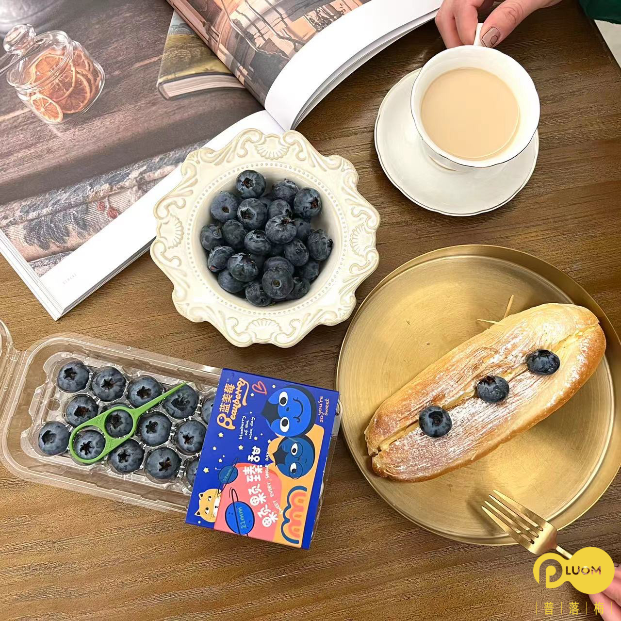 【产品包装】:独家专利PE防雾材质包装盒,每颗蓝莓单独坑位,全透明包装保证蓝莓新鲜度可视化。新增出水口和注水口,自带餐具,随时随地享用蓝莓。