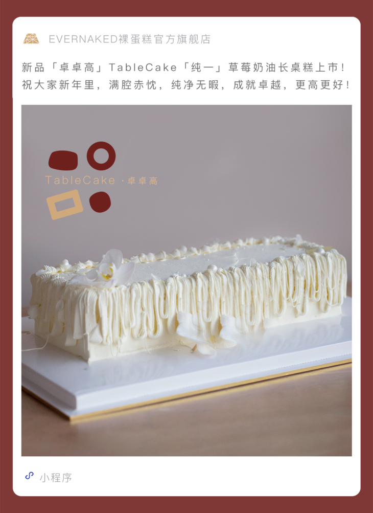 - 裸蛋糕,专注于甜点无添加的健康理念。生日蛋糕、婚礼甜品桌、茶歇宴会及私人定制。裸蛋糕的初念,源于对身边人的爱;简单,不失真诚;不乏奢华。